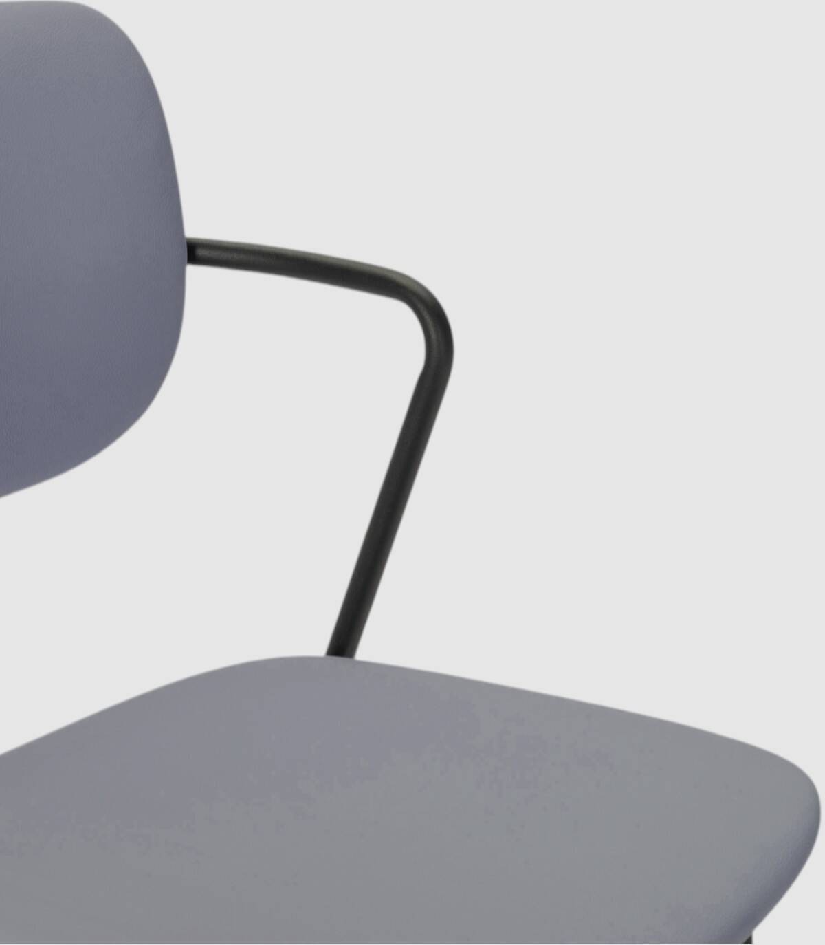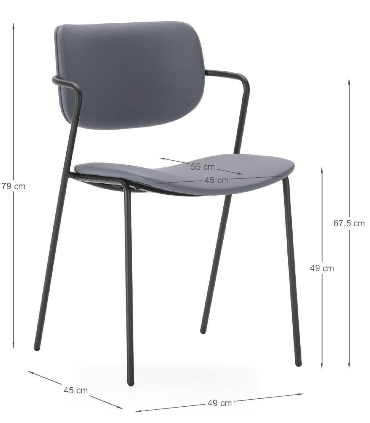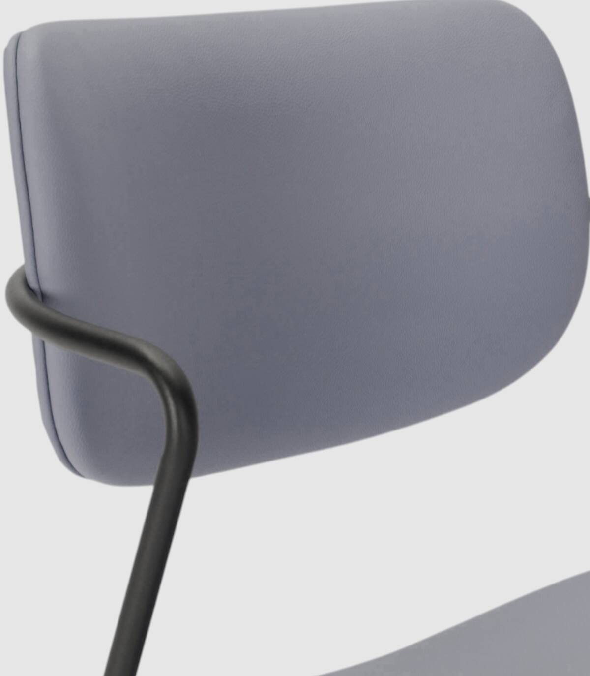 La silla Zeany se compone de asiento y respaldo tapizados de color gris sobre estructura de metal con cuatro patas de color negro.