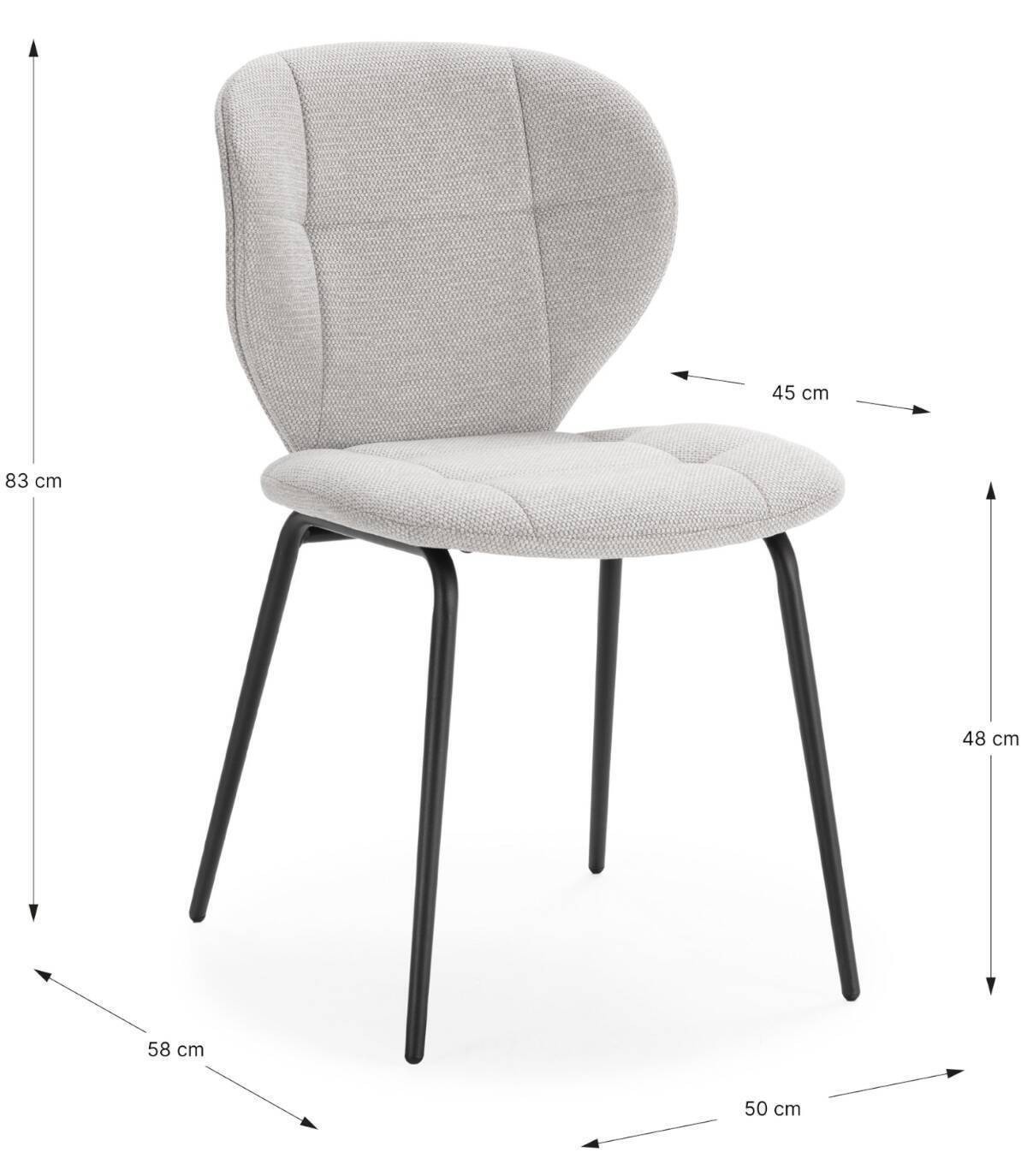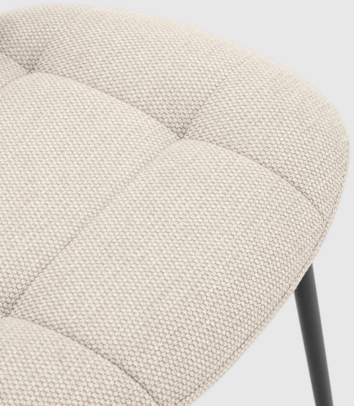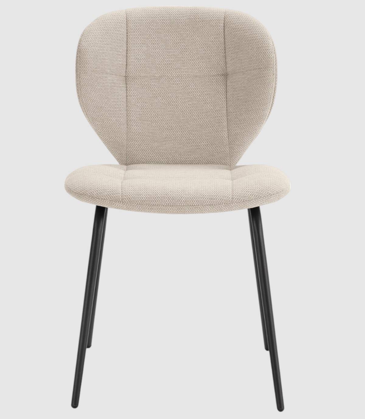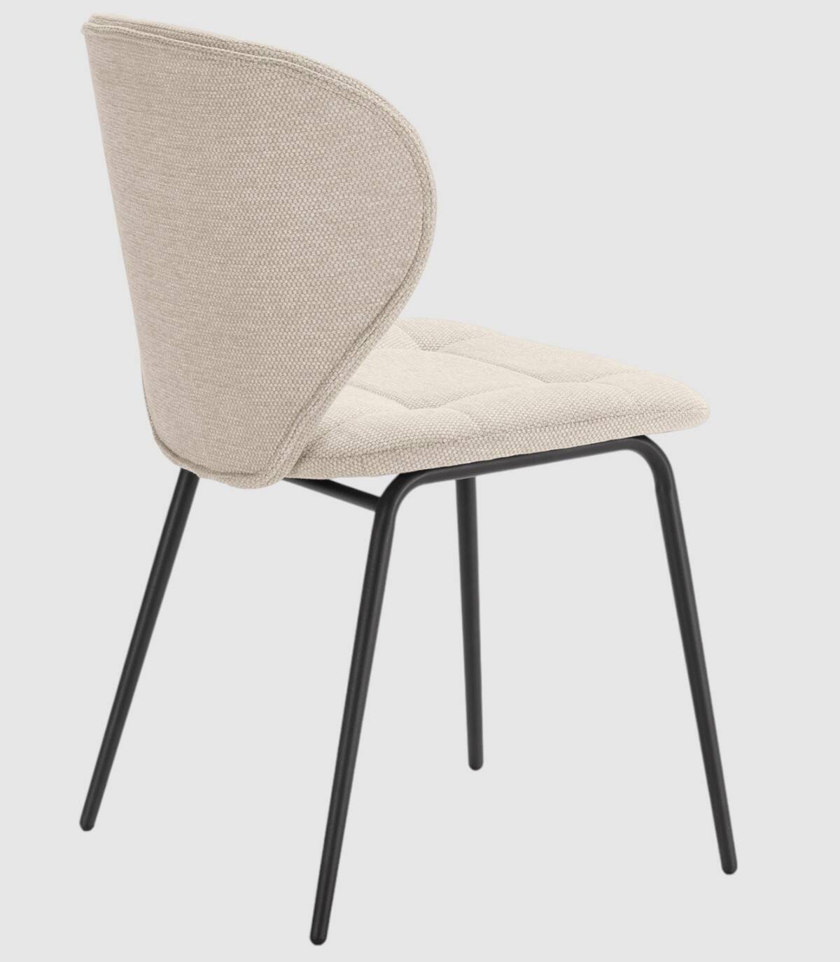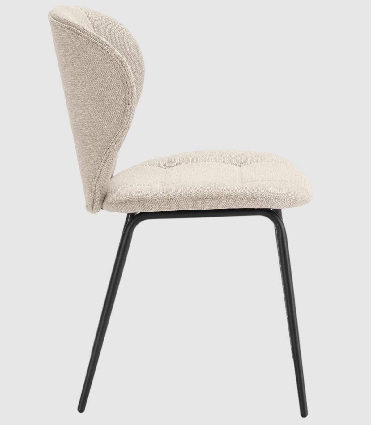 La silla Hasty se compone de asiento y respaldo tapizado de color beige sobre estructura de metal con cuatro patas de color negro.