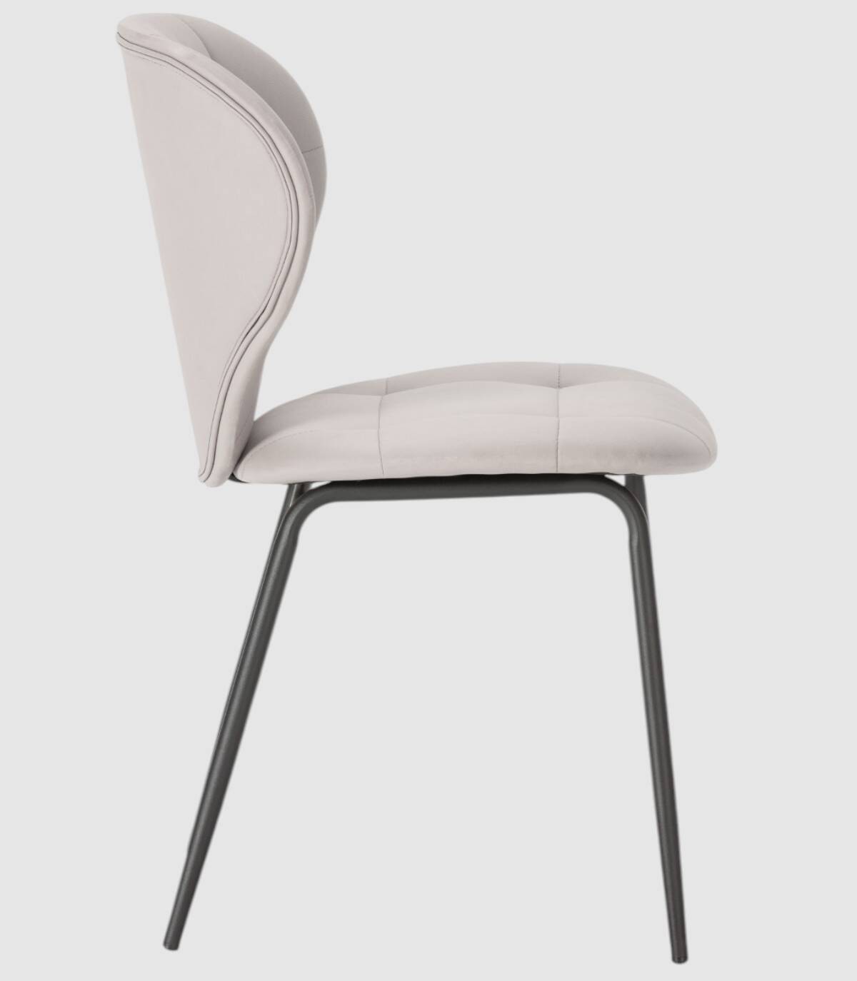 La silla Nipur se compone de asiento y respaldo tapizados de color beige sobre estructura de metal con cuatro patas de color negro.