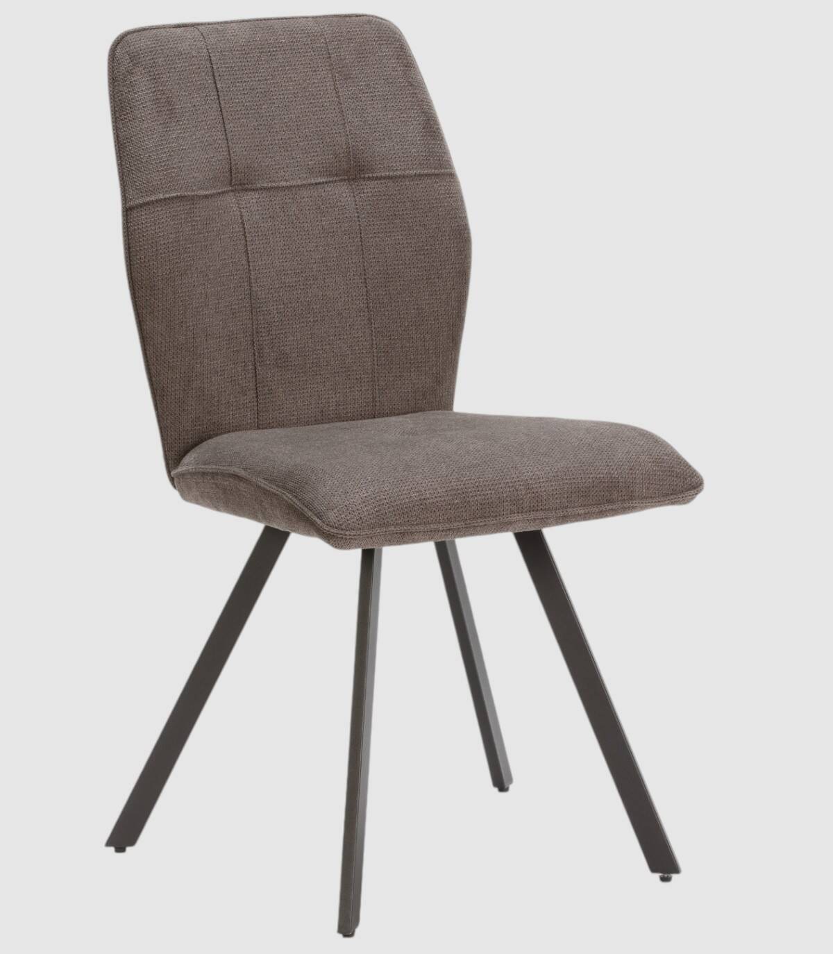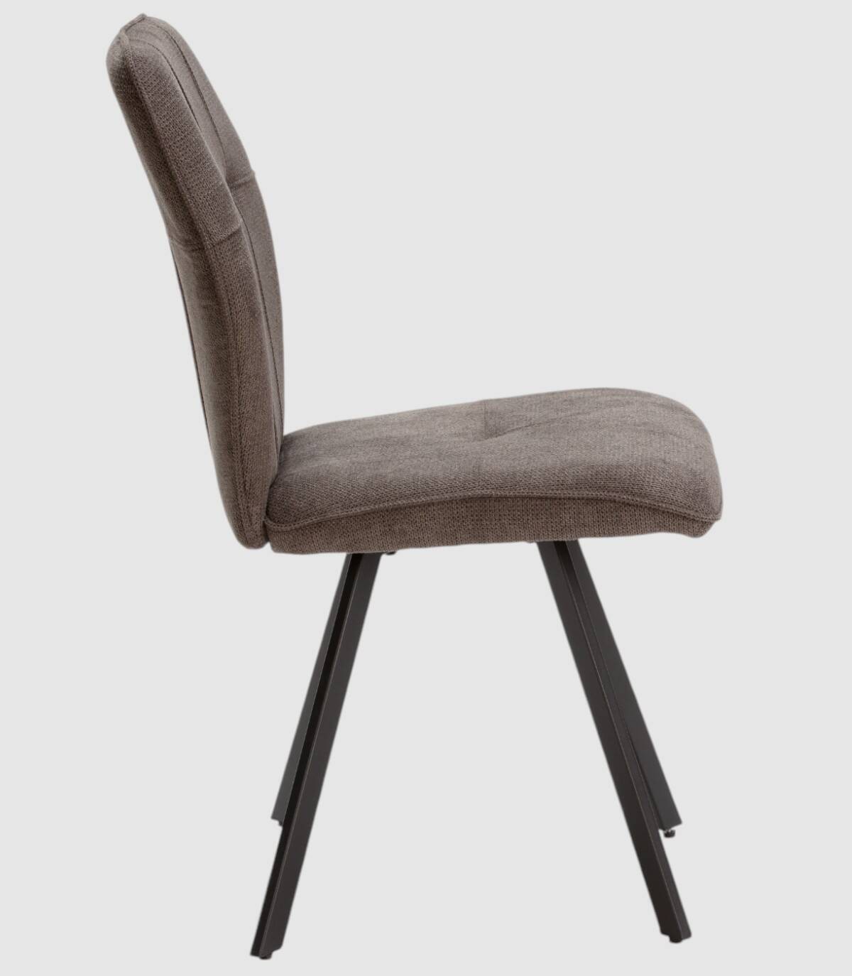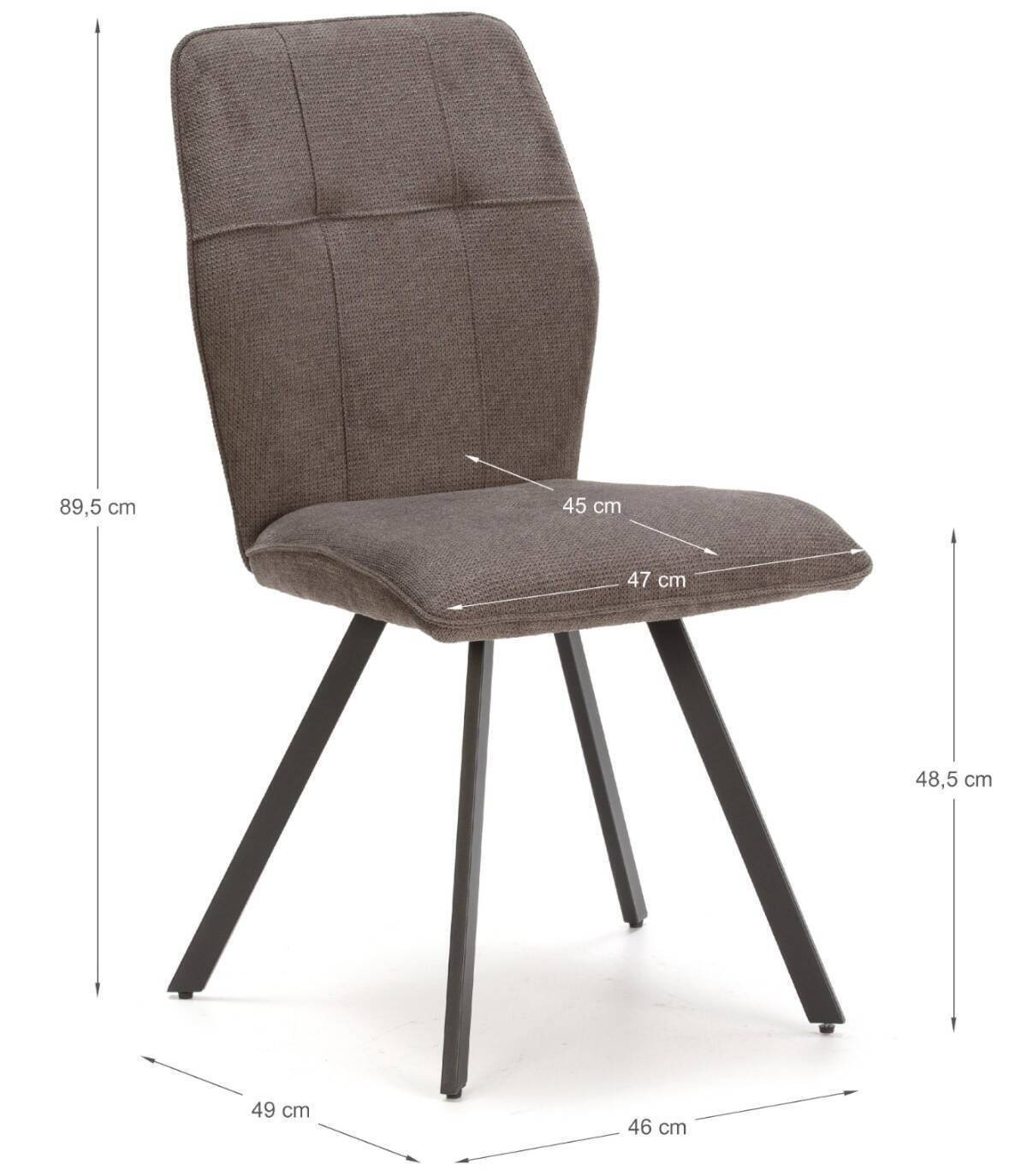 La silla Seine se compone de asiento y respaldo tapizado de color gris sobre estructura de metal con cuatro patas de color negro.
