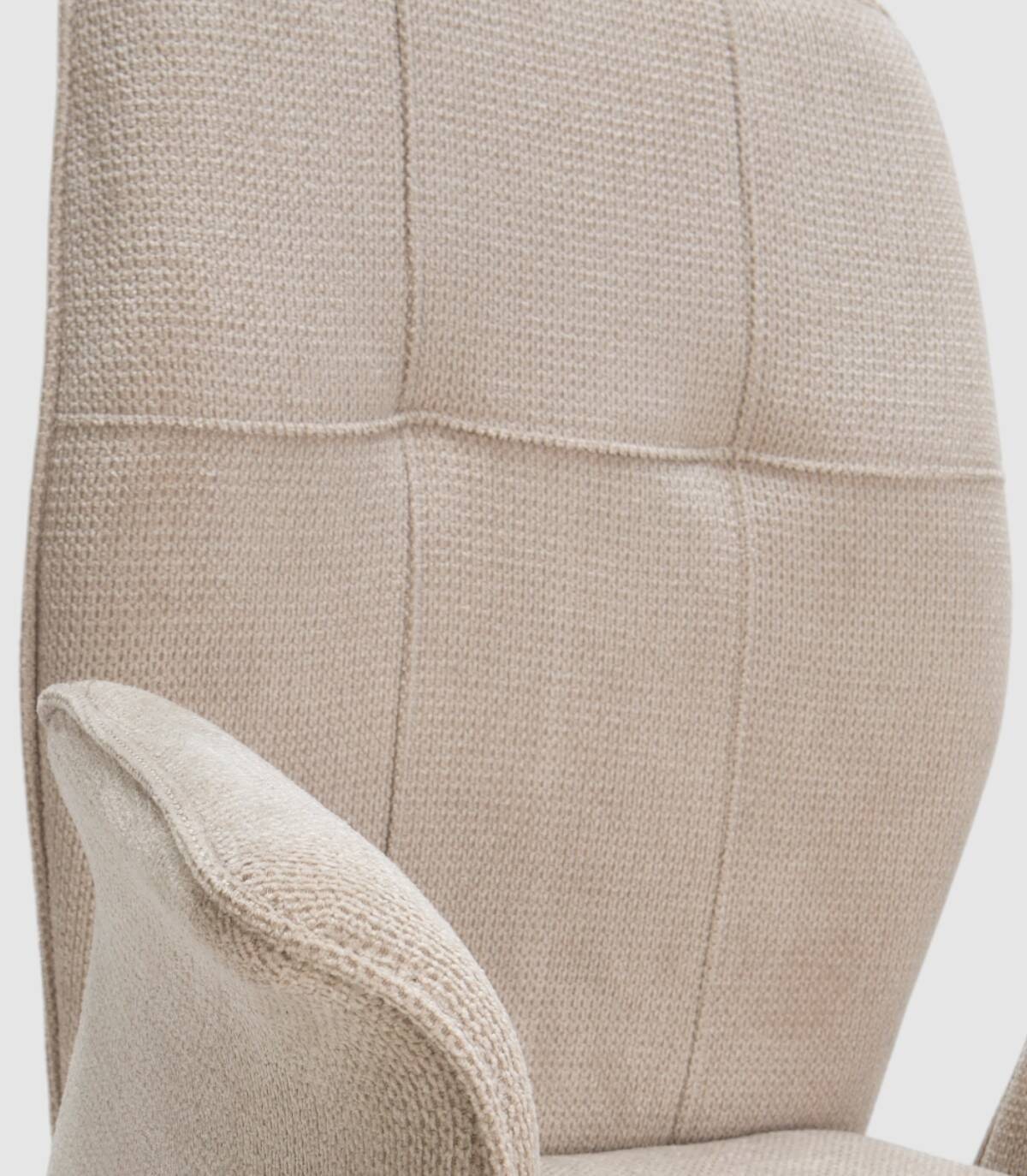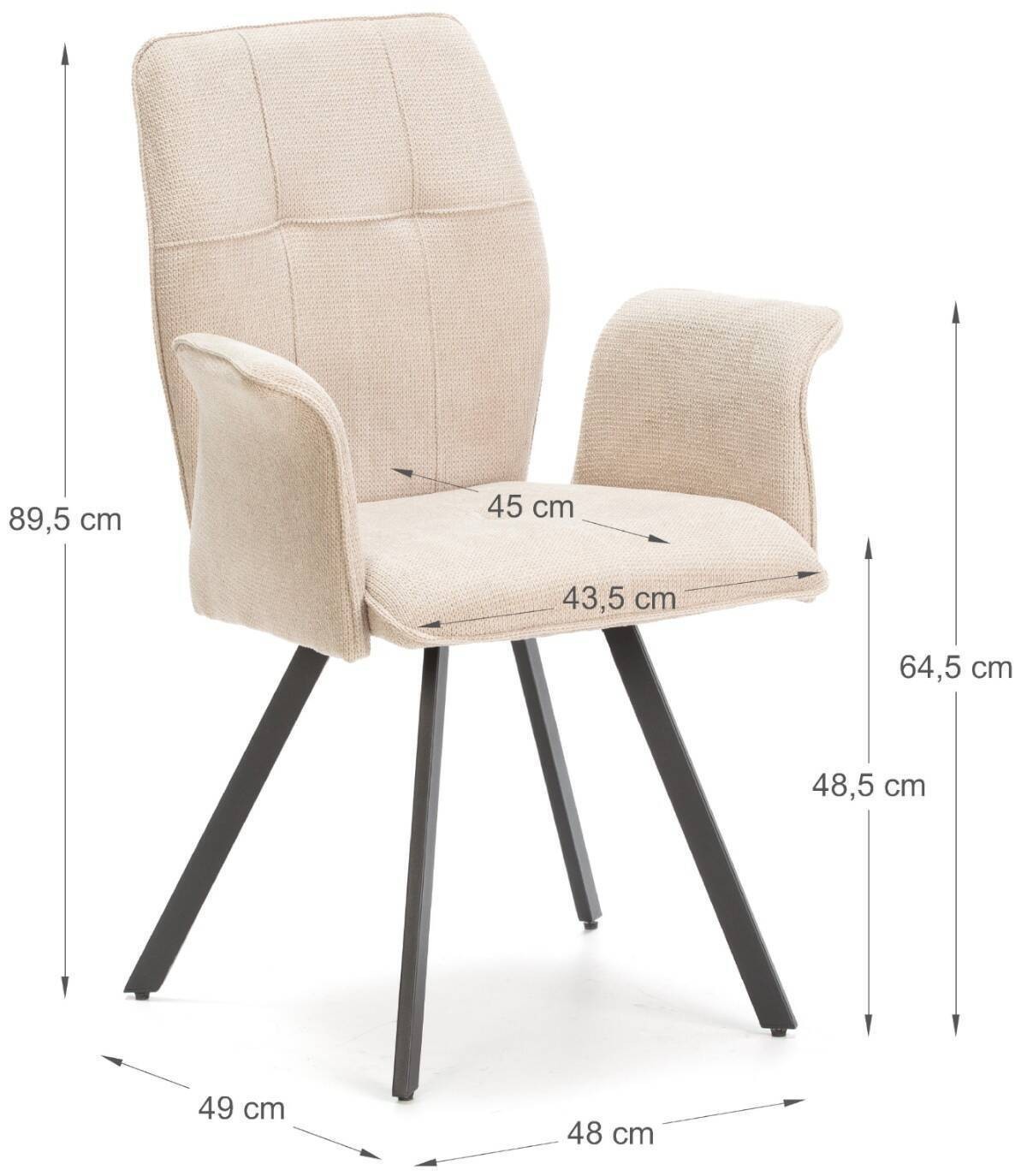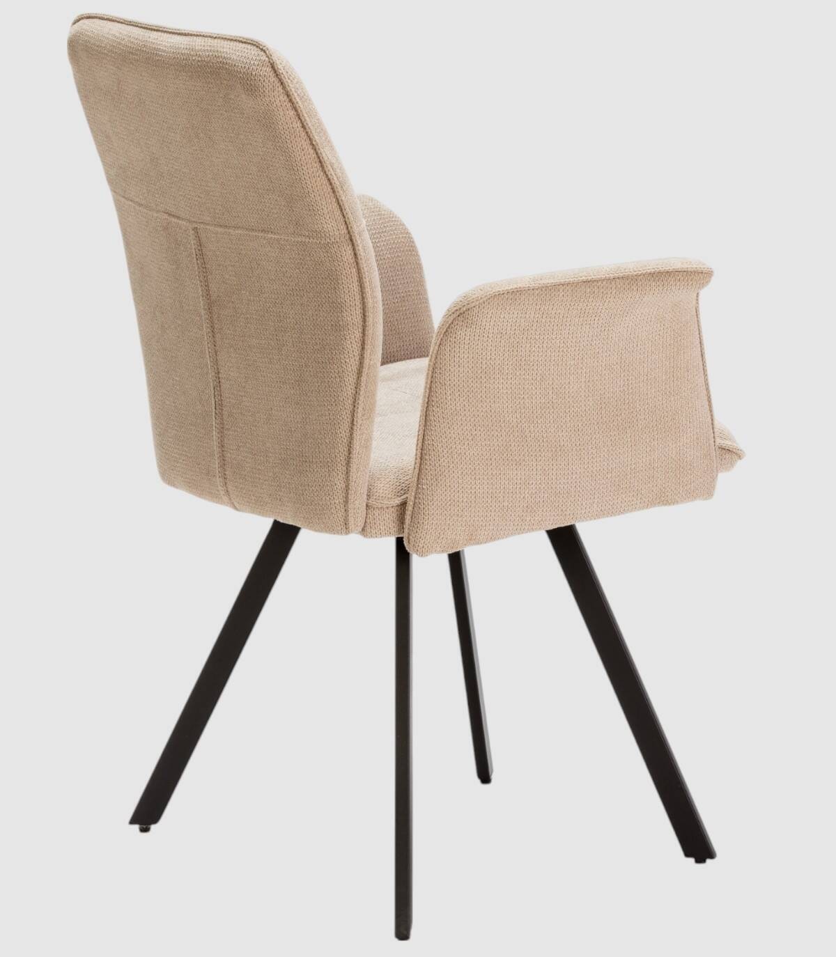 El sillón Seine se compone de asiento, respaldo y reposabrazos tapizados de color beige sobre estructura de metal con cuatro patas de color negro.