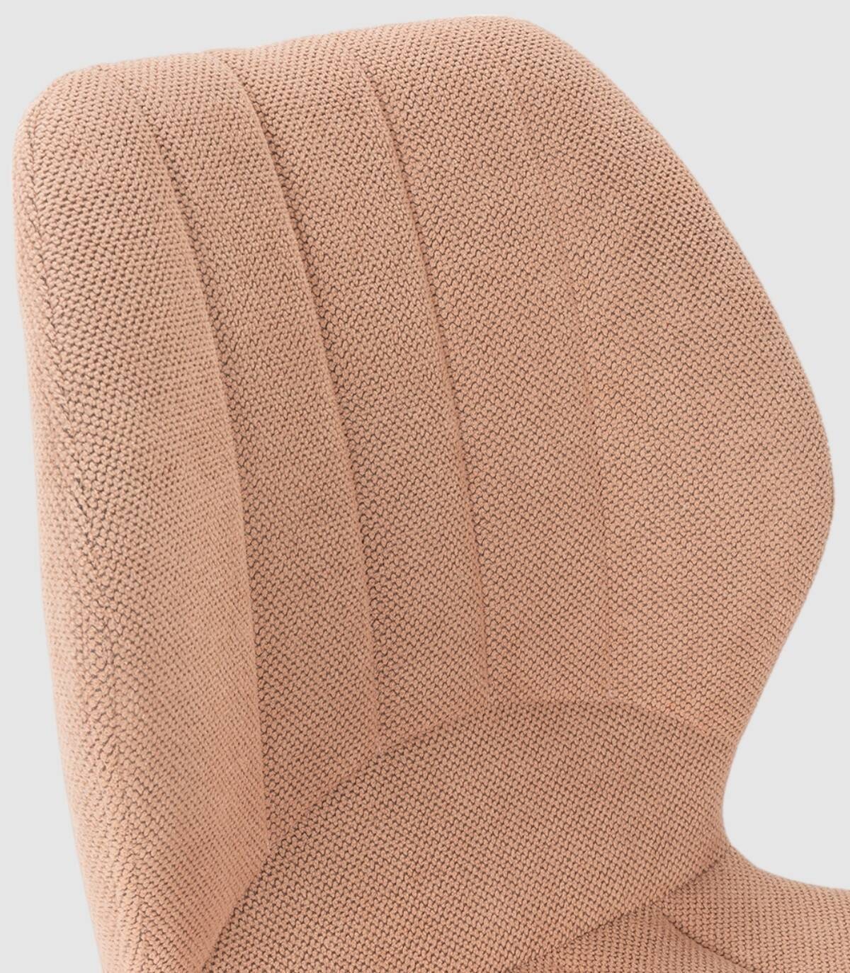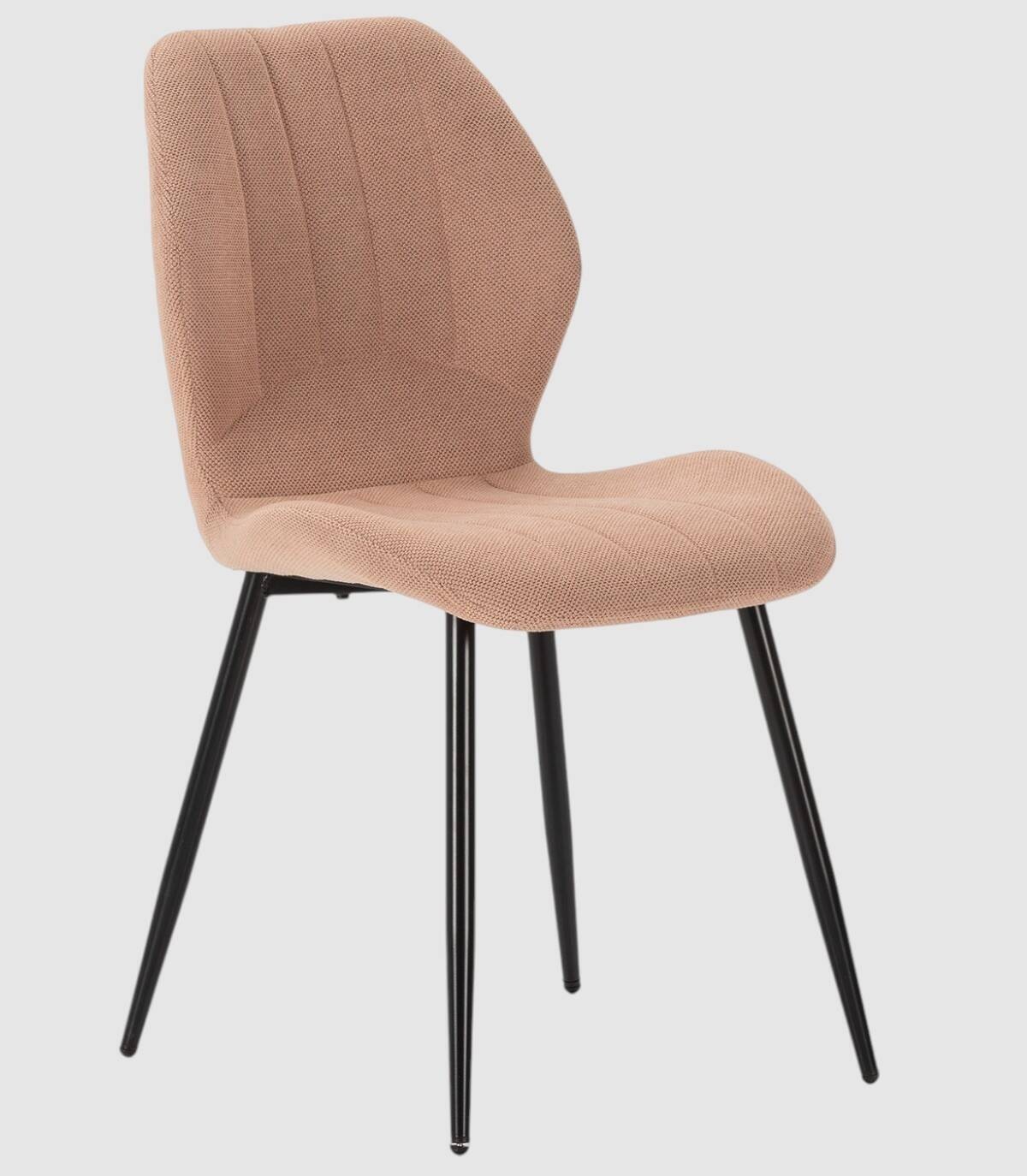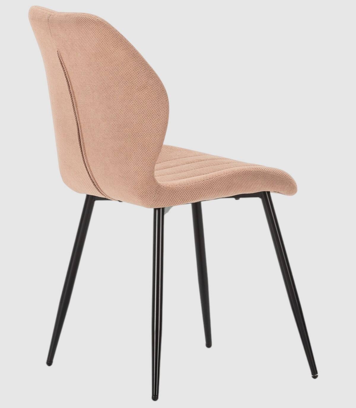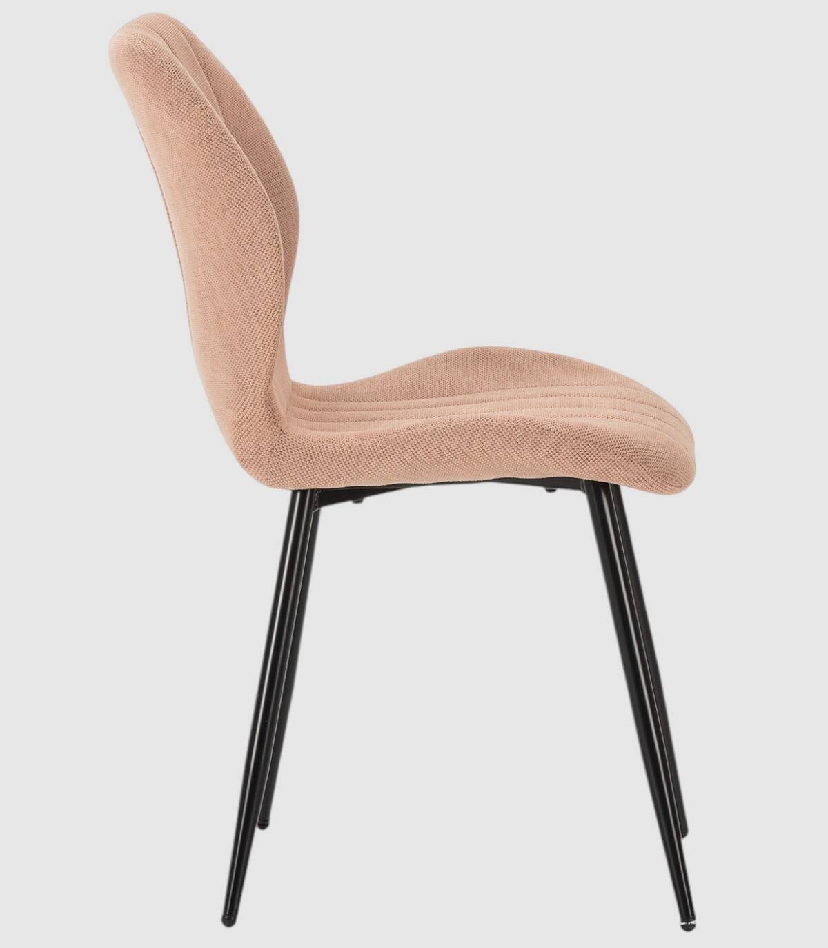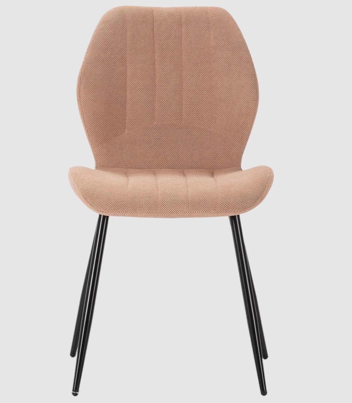 La silla Gerne se compone de asiento y respaldo tapizado de color salmon sobre estructura de metal con cuatro patas de color negro.