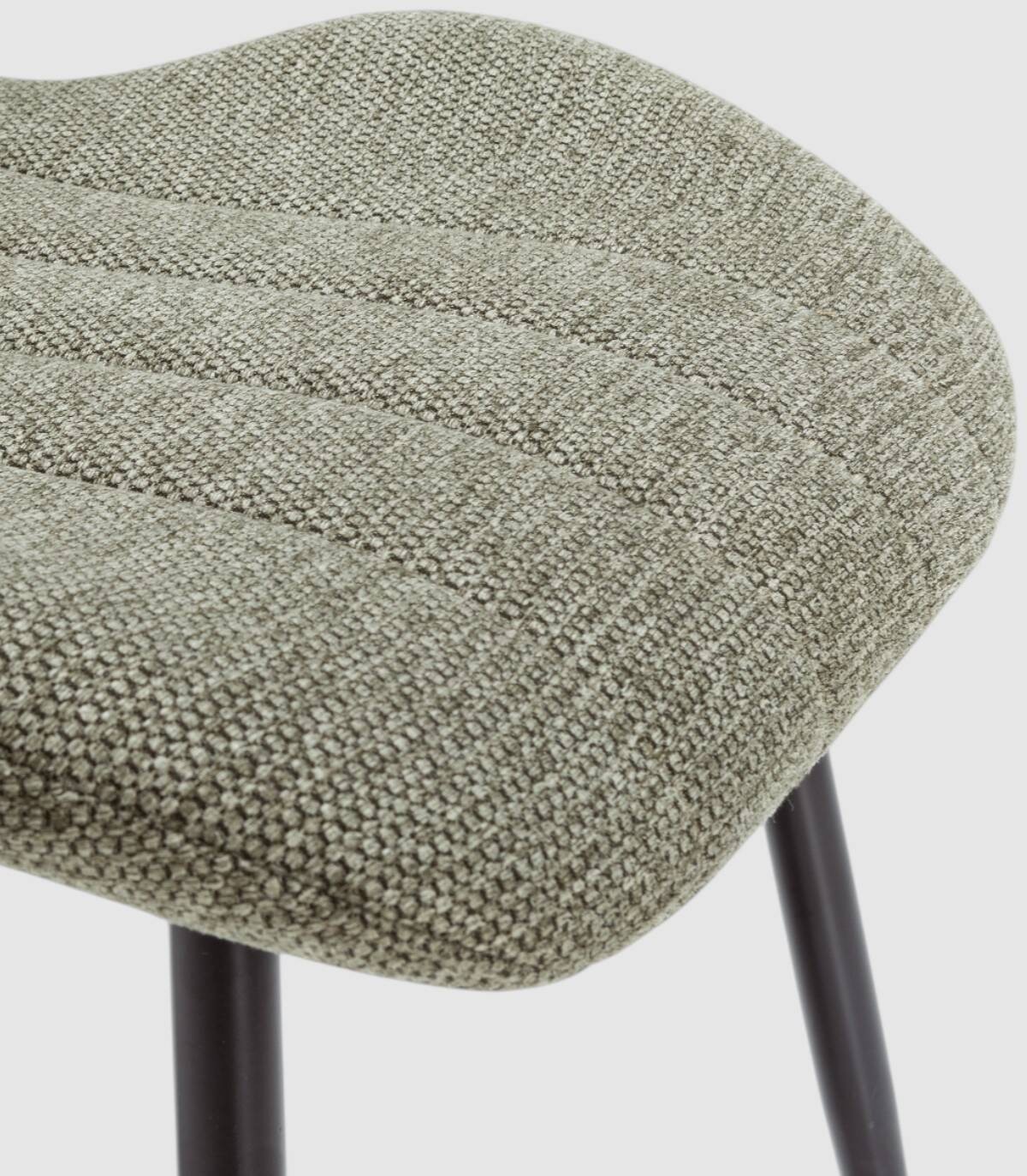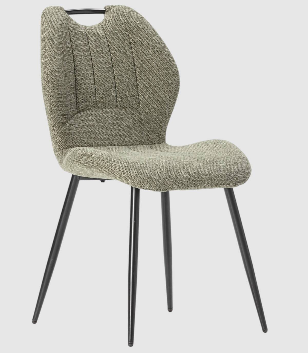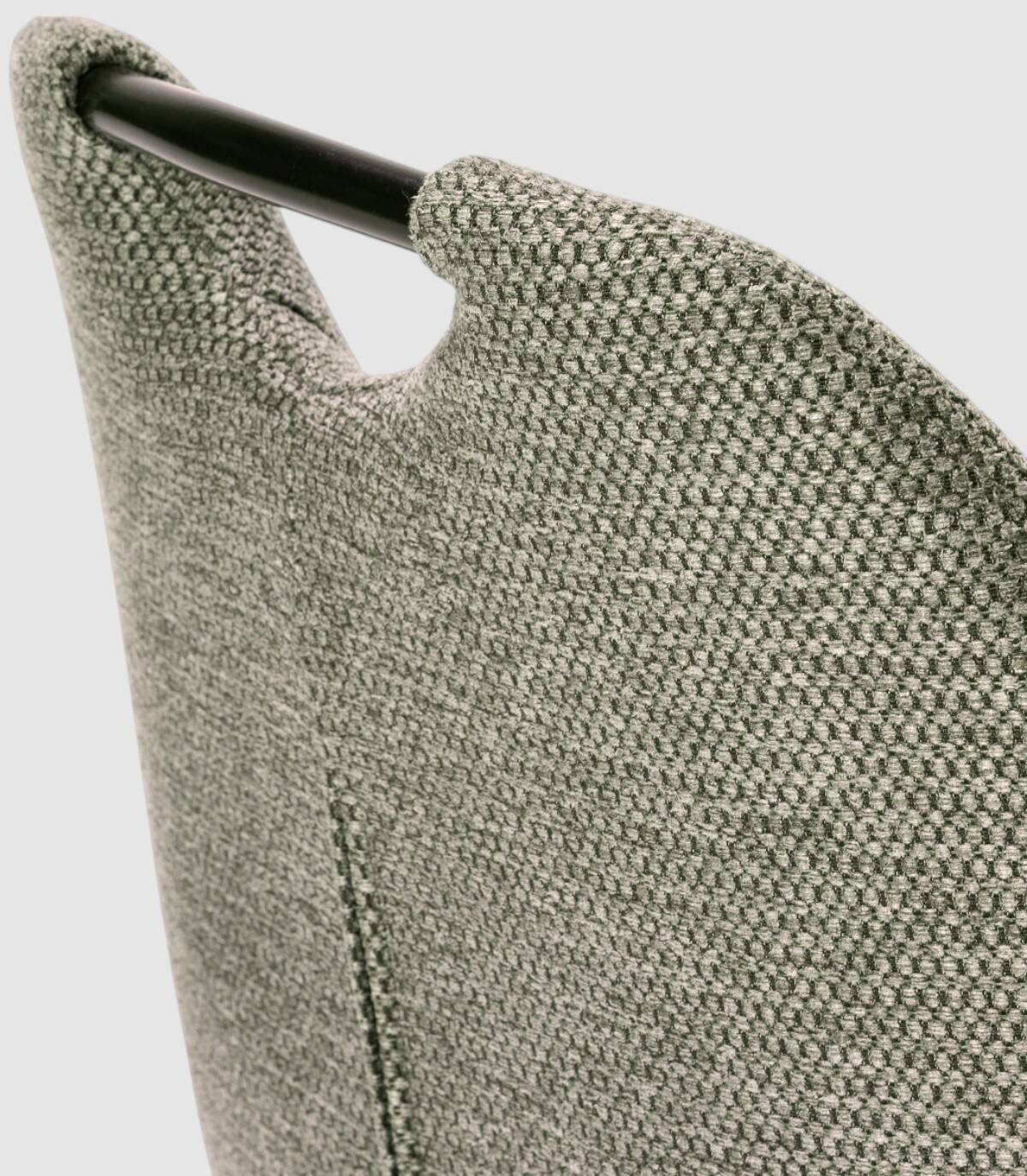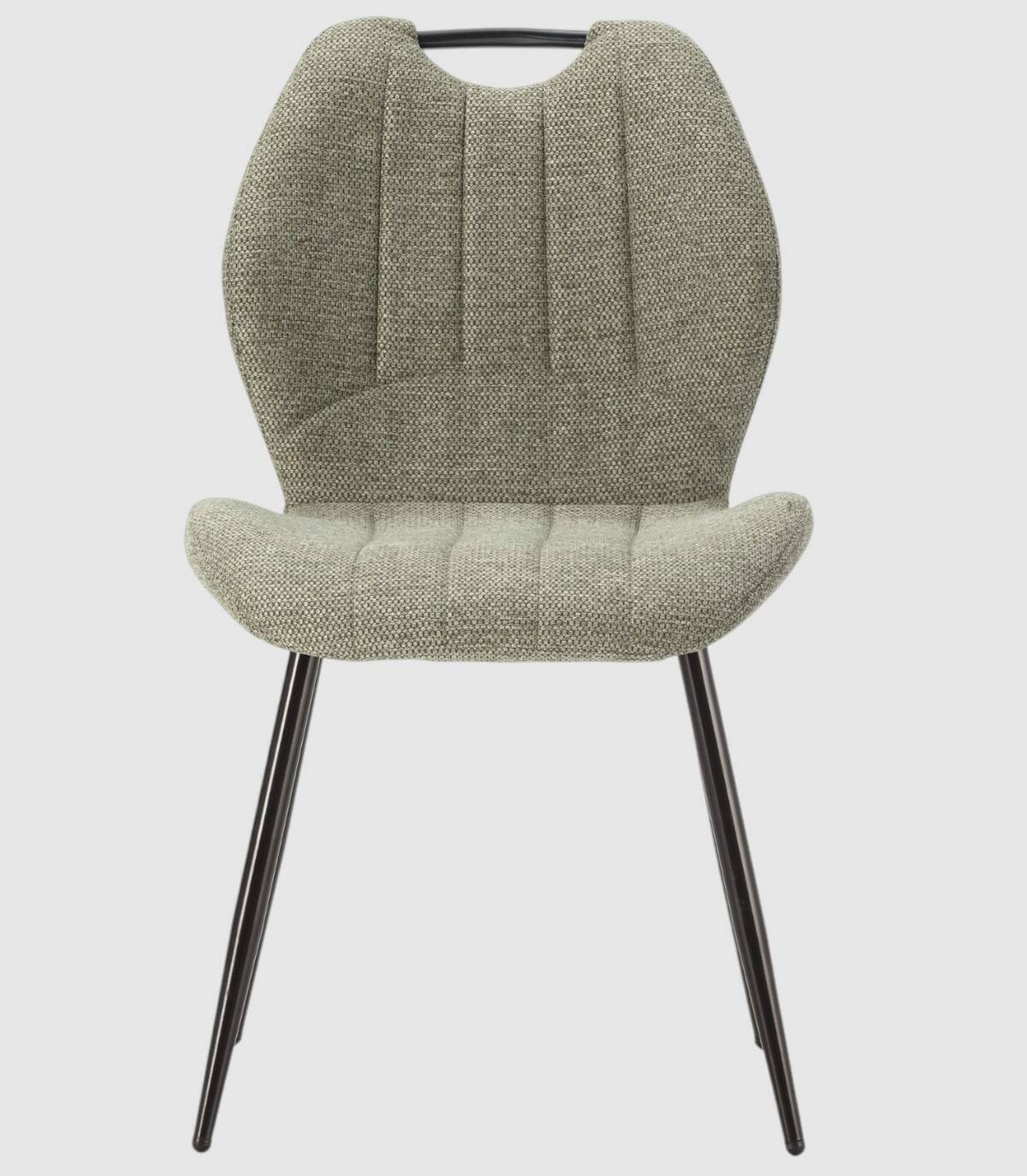 La silla Yara se compone de asiento y respaldo tapizado de color verde sobre estructura de metal con cuatro patas de color negro.