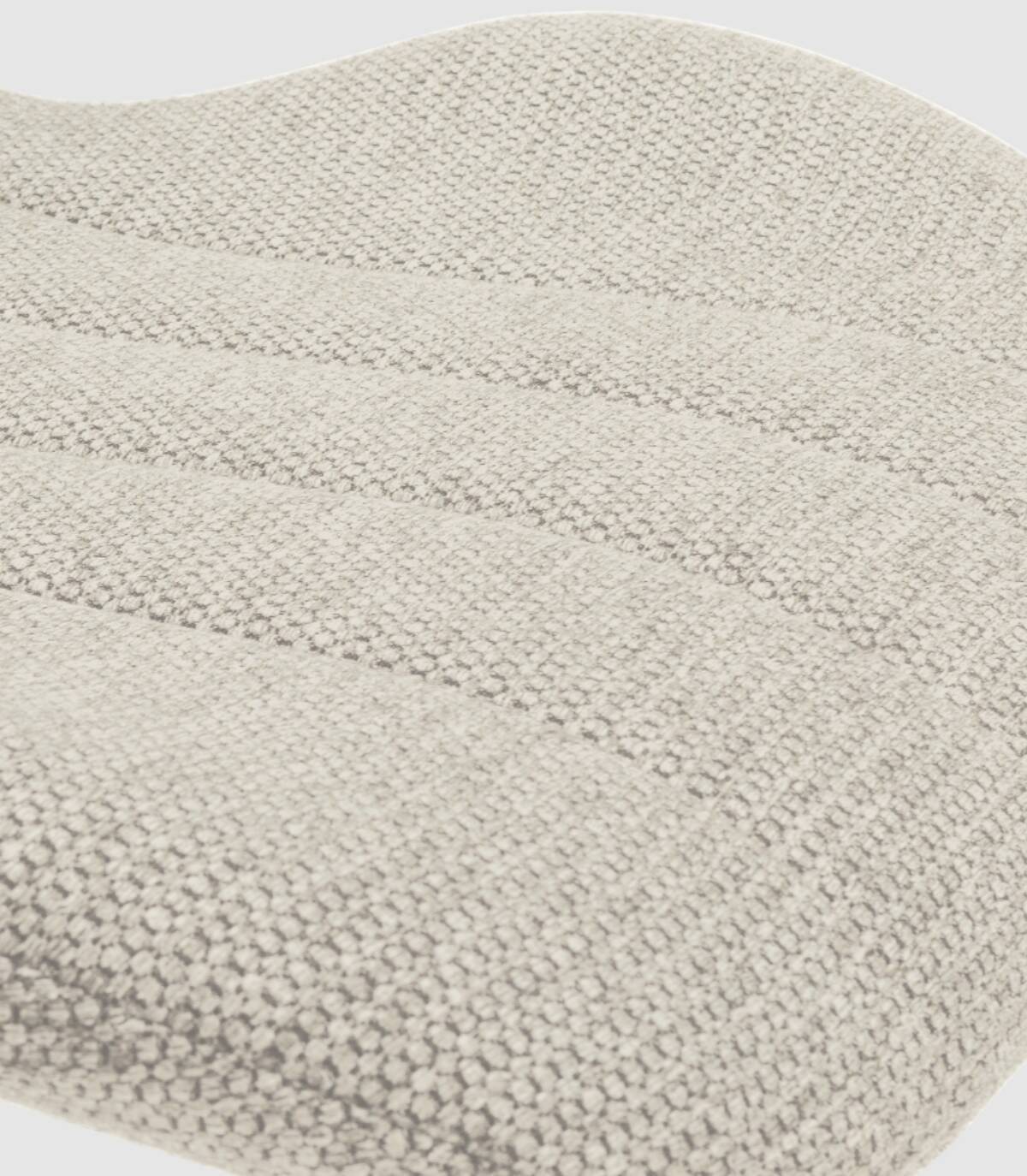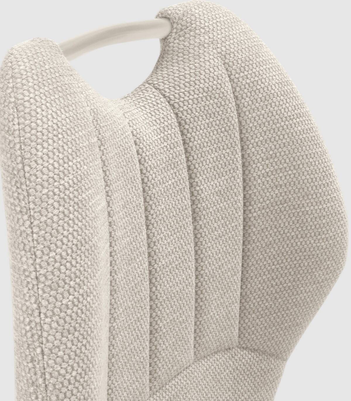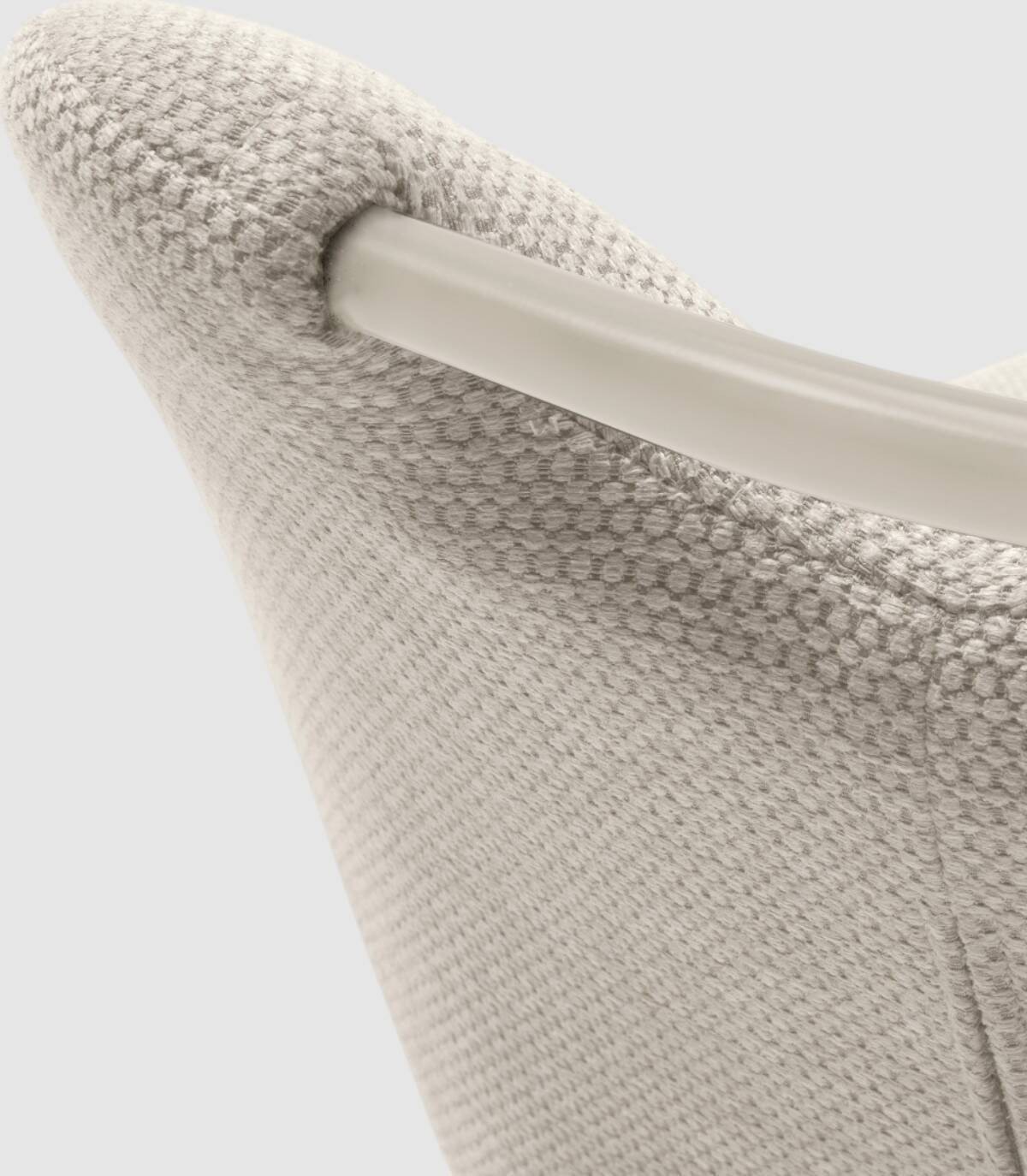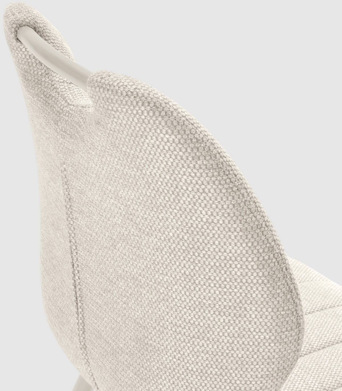 La silla Yara se compone de asiento y respaldo tapizado de color beige sobre estructura de metal con cuatro patas de color beige.