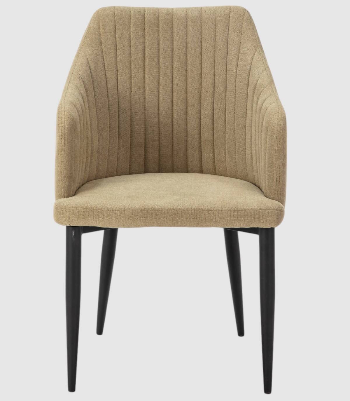 El sillón Guray se compone de asiento, respaldo y reposabrazos tapizados de color verde sobre estructura de metal con cuatro patas de color negro.
