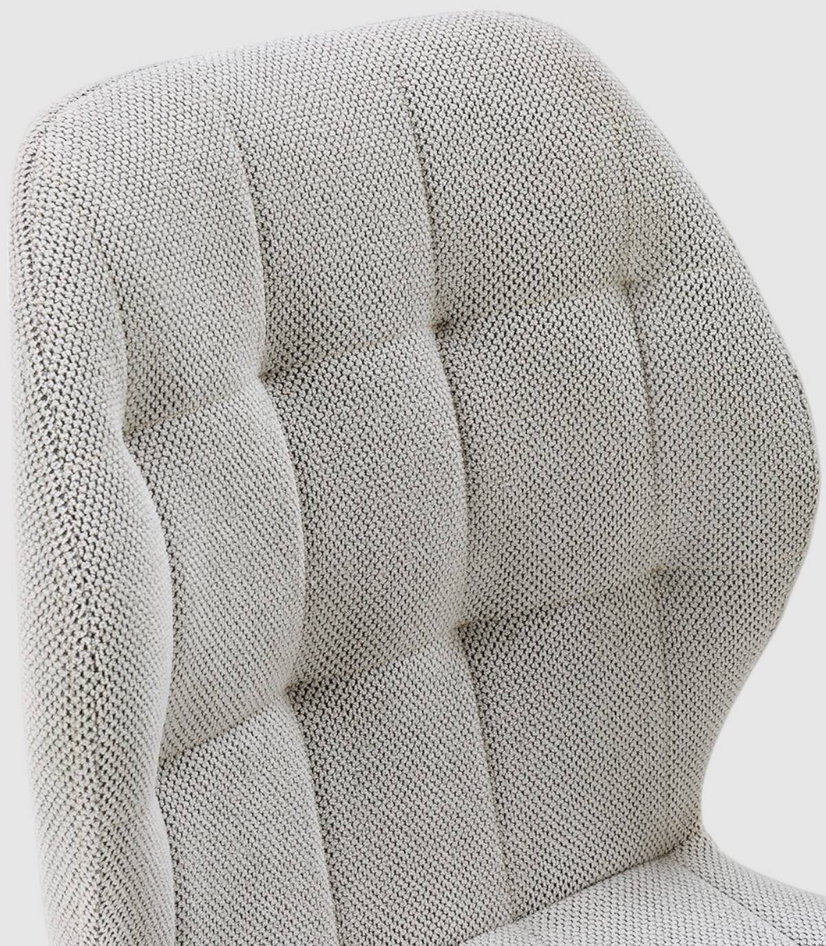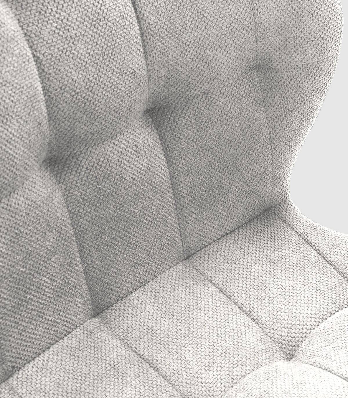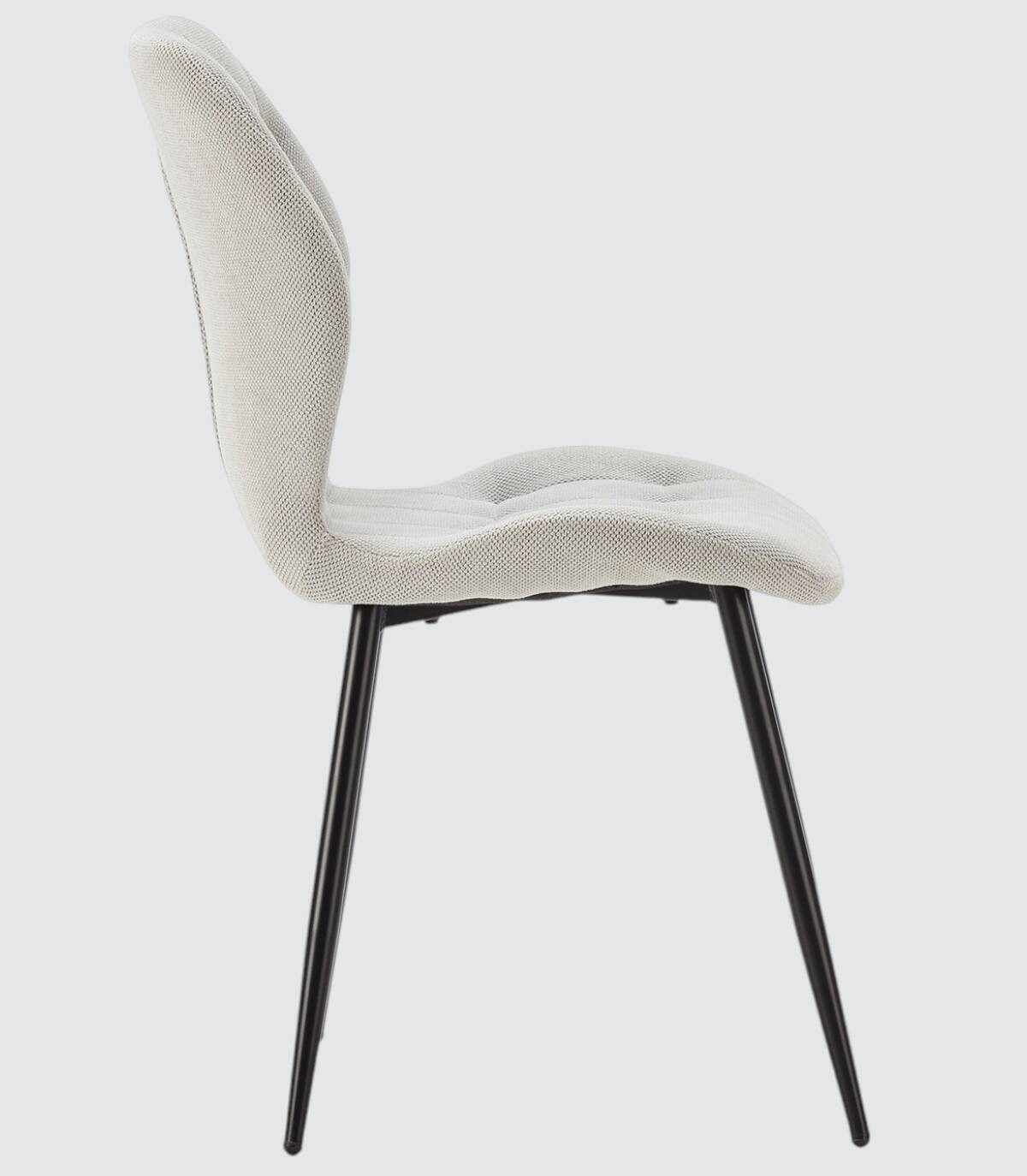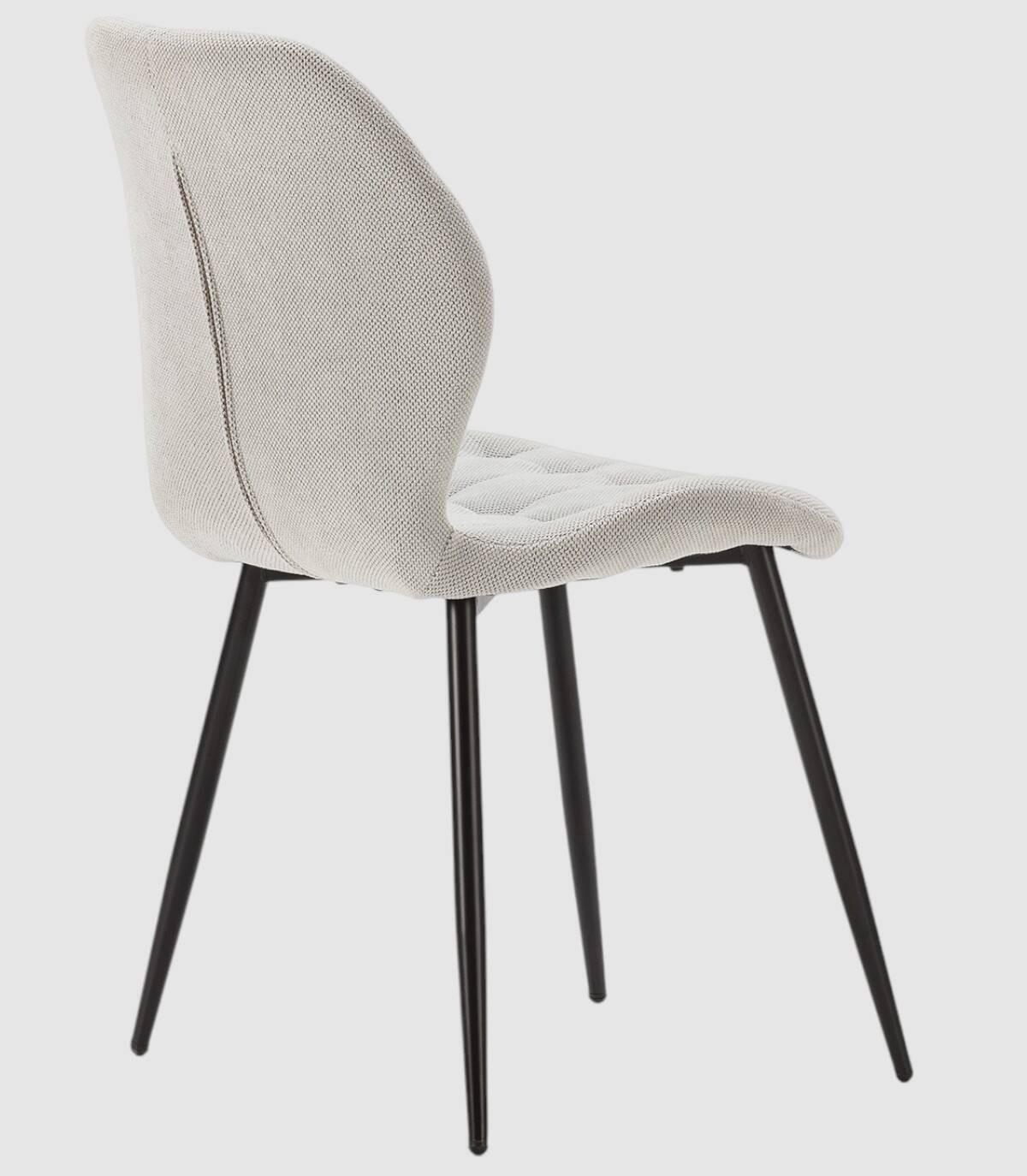 La silla Daine se compone de asiento y respaldo tapizado de color gris claro sobre estructura de metal con cuatro patas de color negro.