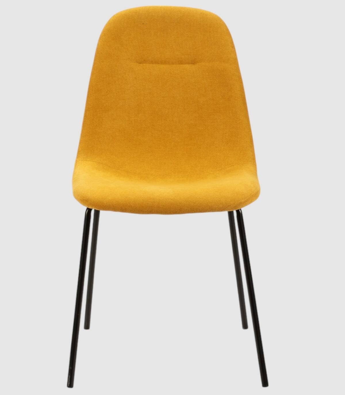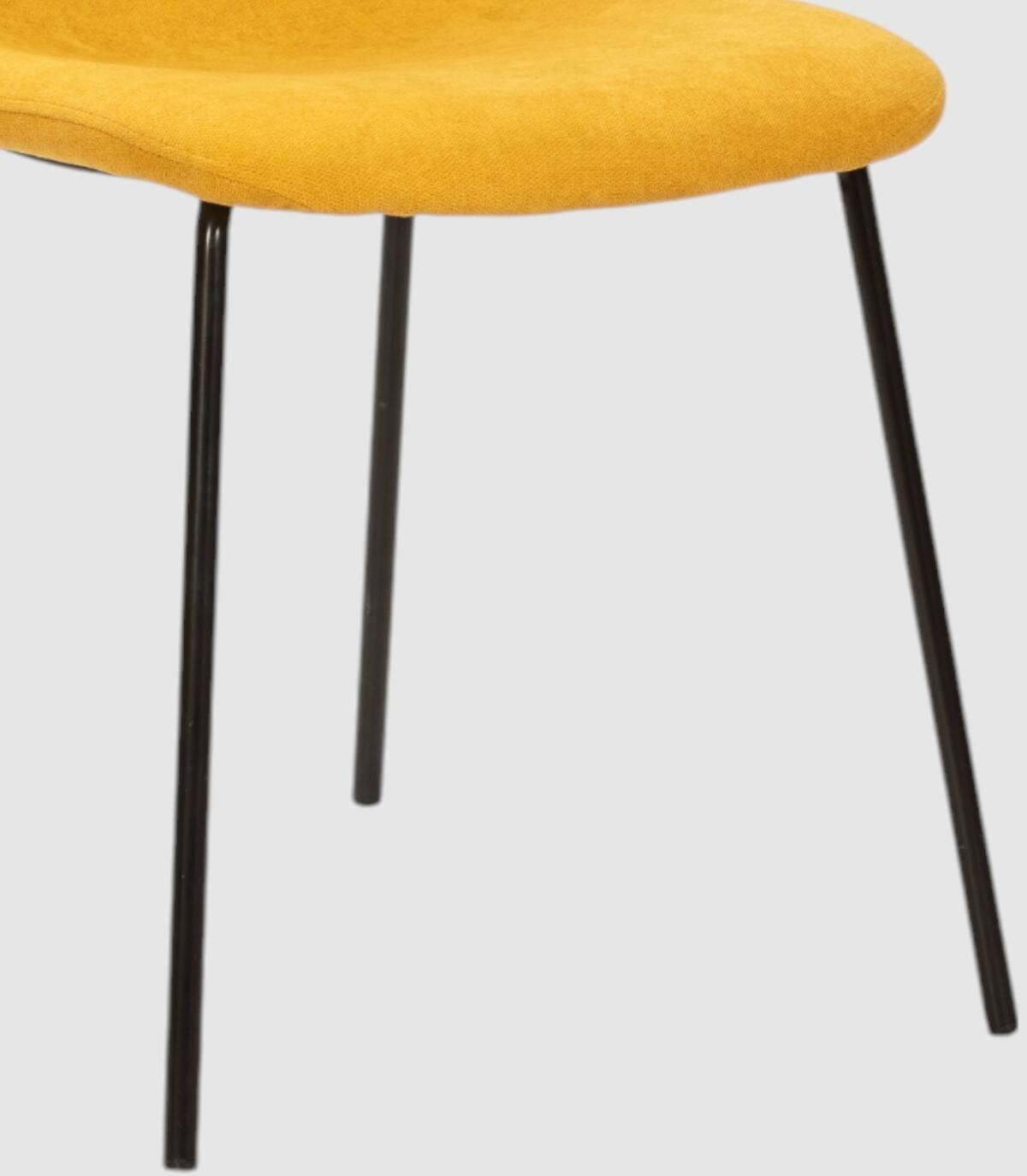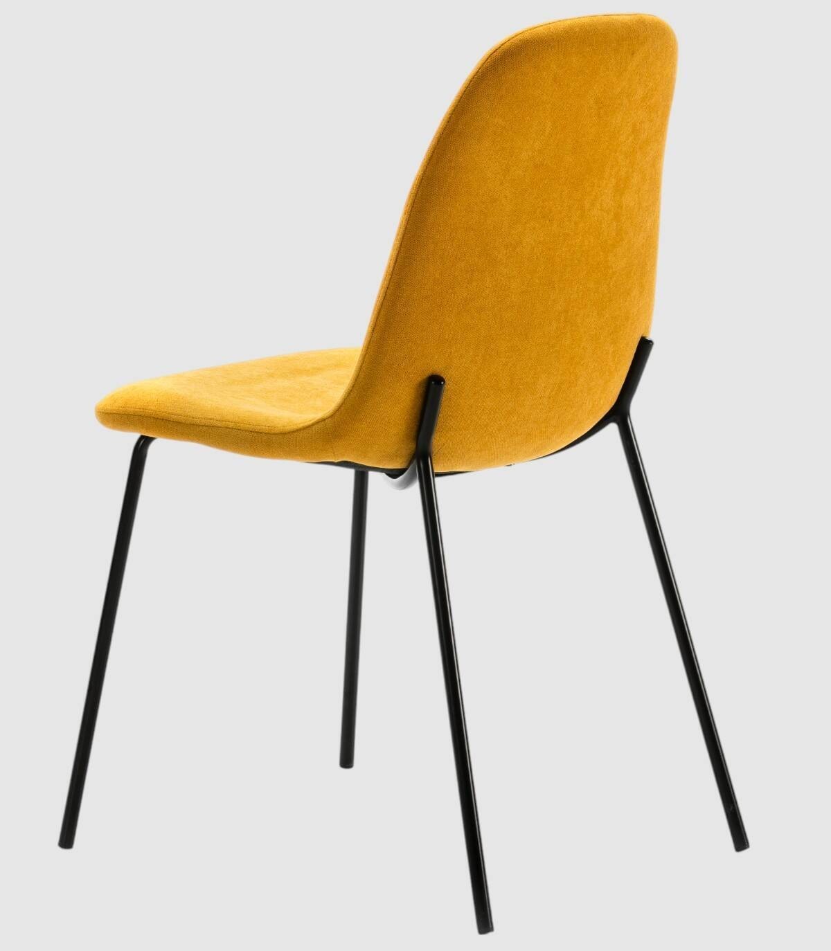La silla Nerod se compone de asiento y respaldo tapizado de color amarillo sobre estructura de metal con cuatro patas de color negro.