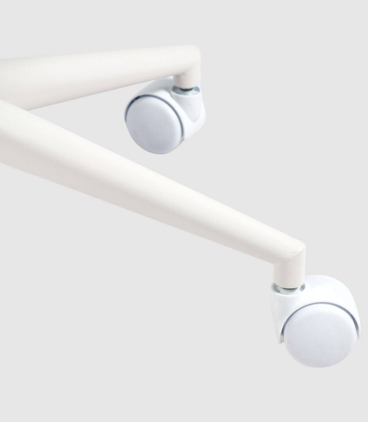 Read moreShow lessIt consists of a backrest, seat, upholstered armrest and five white metal legs with wheels.