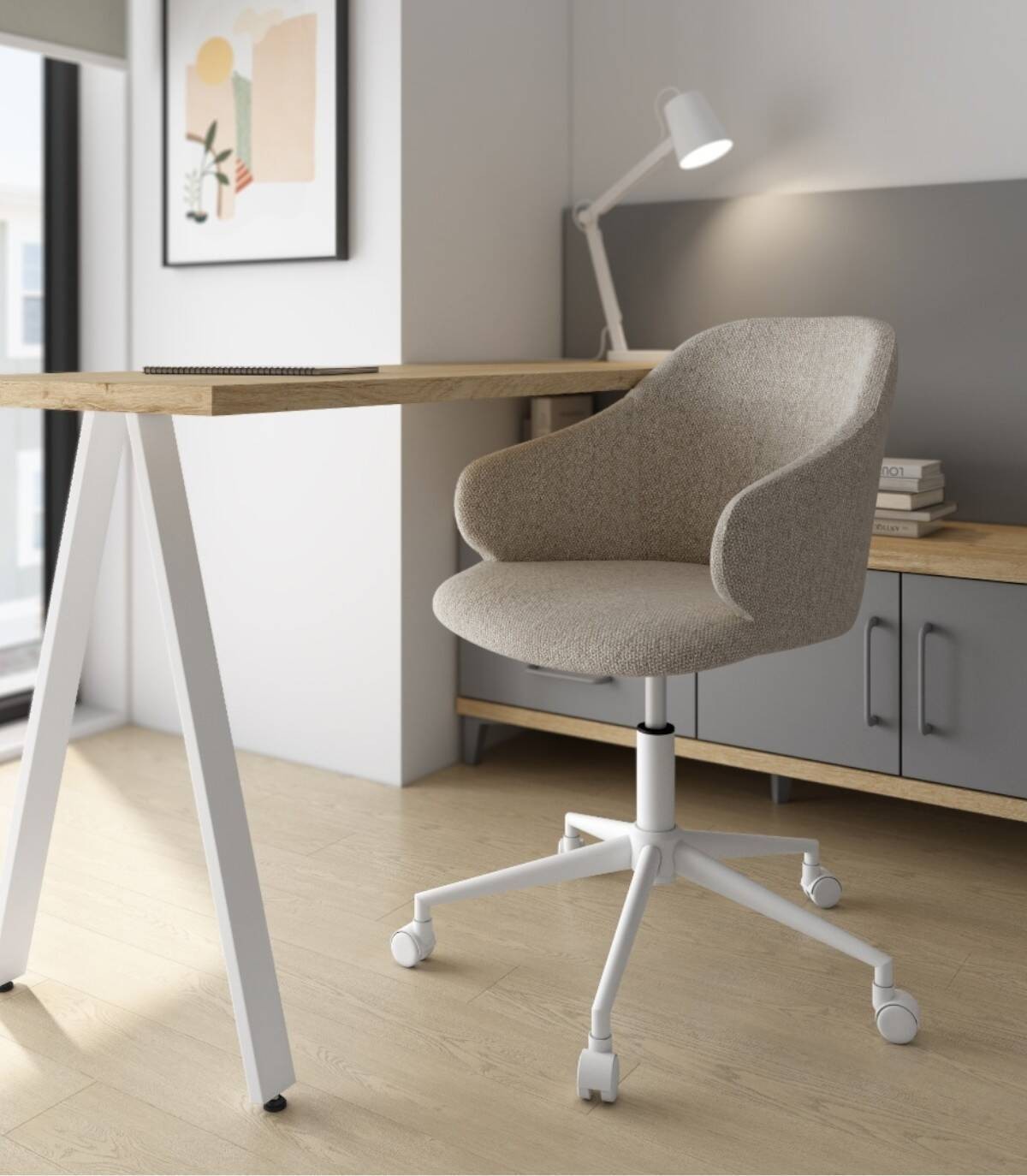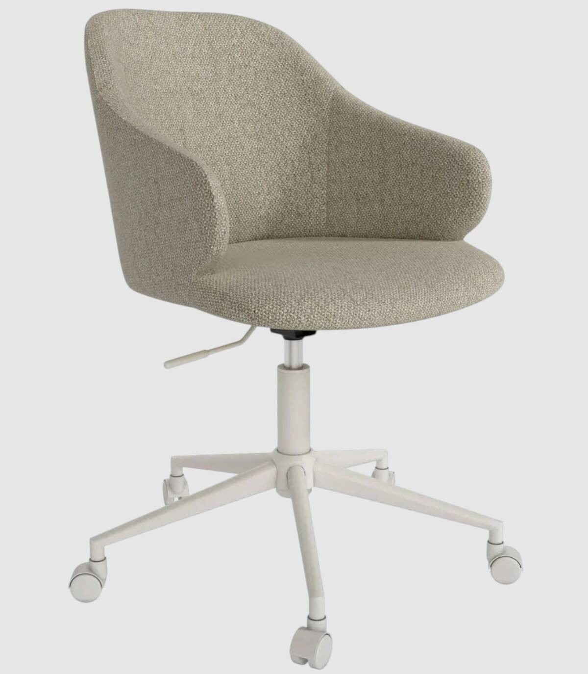 Read moreShow lessIt consists of a backrest, seat, upholstered armrest and five white metal legs with wheels.