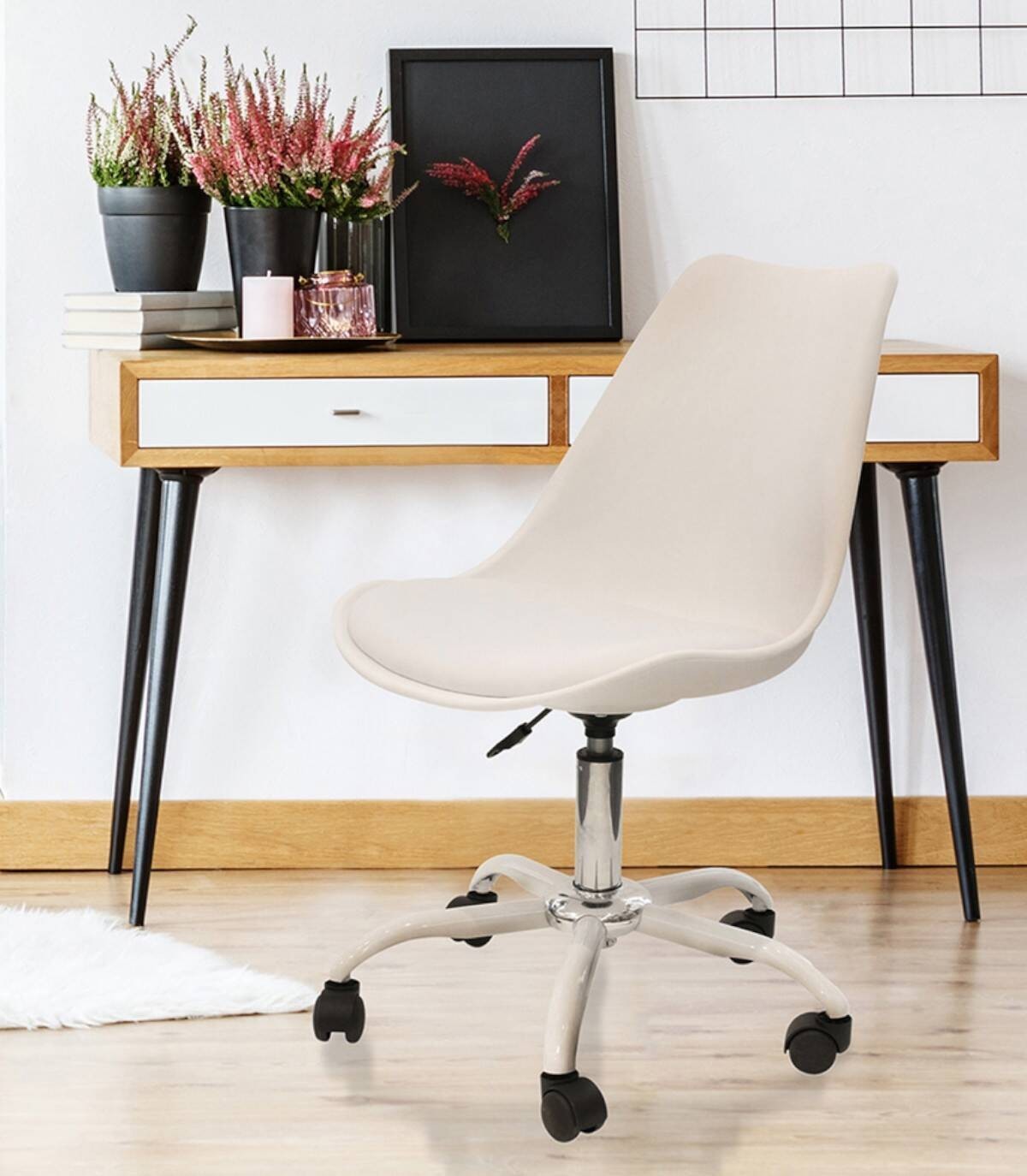 La silla de oficina Kiruna se compone de asiento acolchado con soporte de altura regulable y cinco patas con ruedas. Combina estilo y comodidad para ofrecerte buenas condiciones en el trabajo.