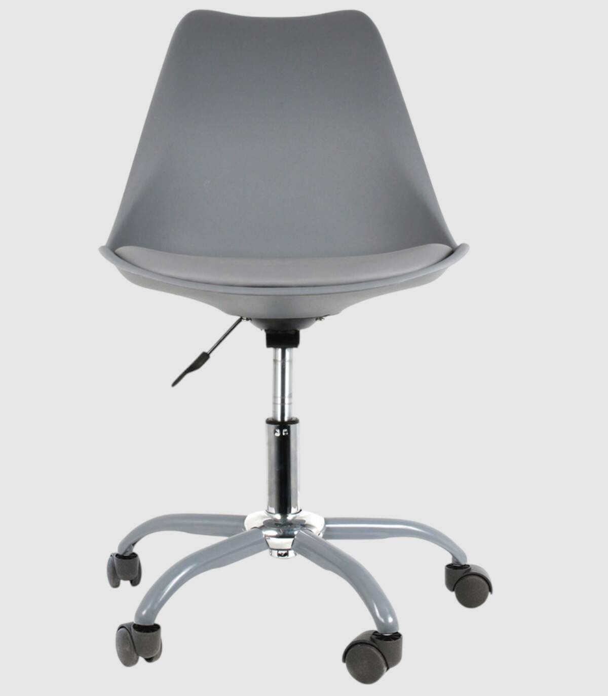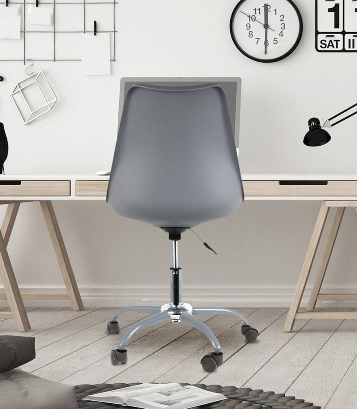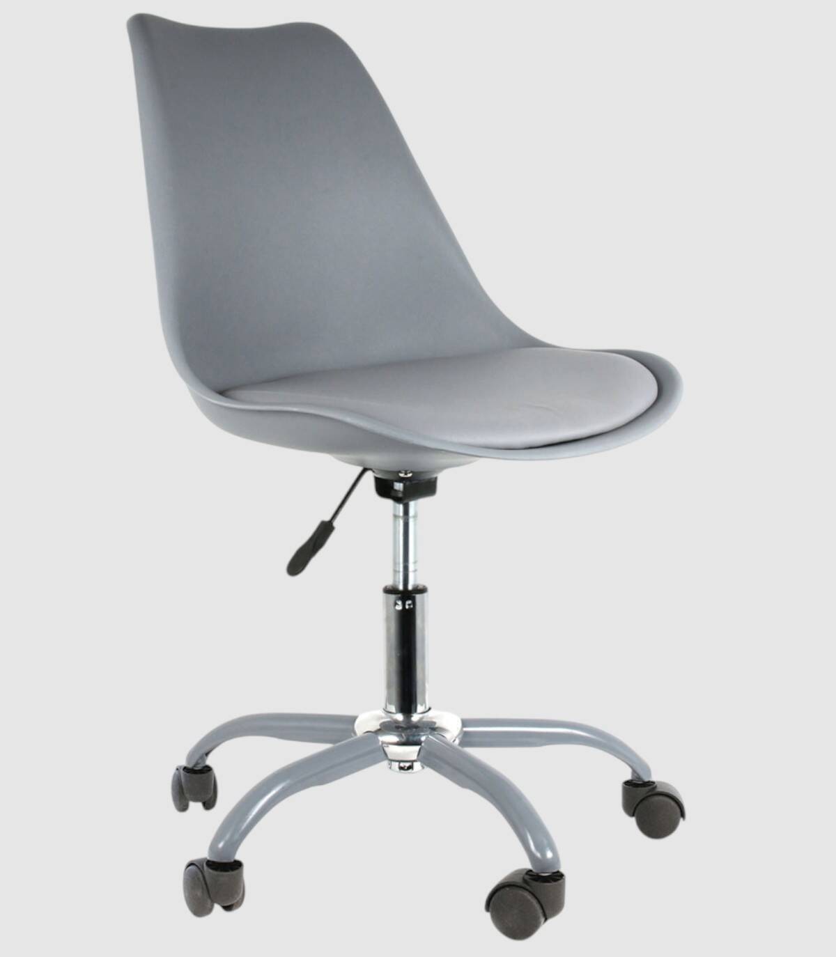 La silla de oficina Kiruna se compone de asiento acolchado con soporte de altura regulable y cinco patas con ruedas. Combina estilo y comodidad para ofrecerte buenas condiciones en el trabajo.