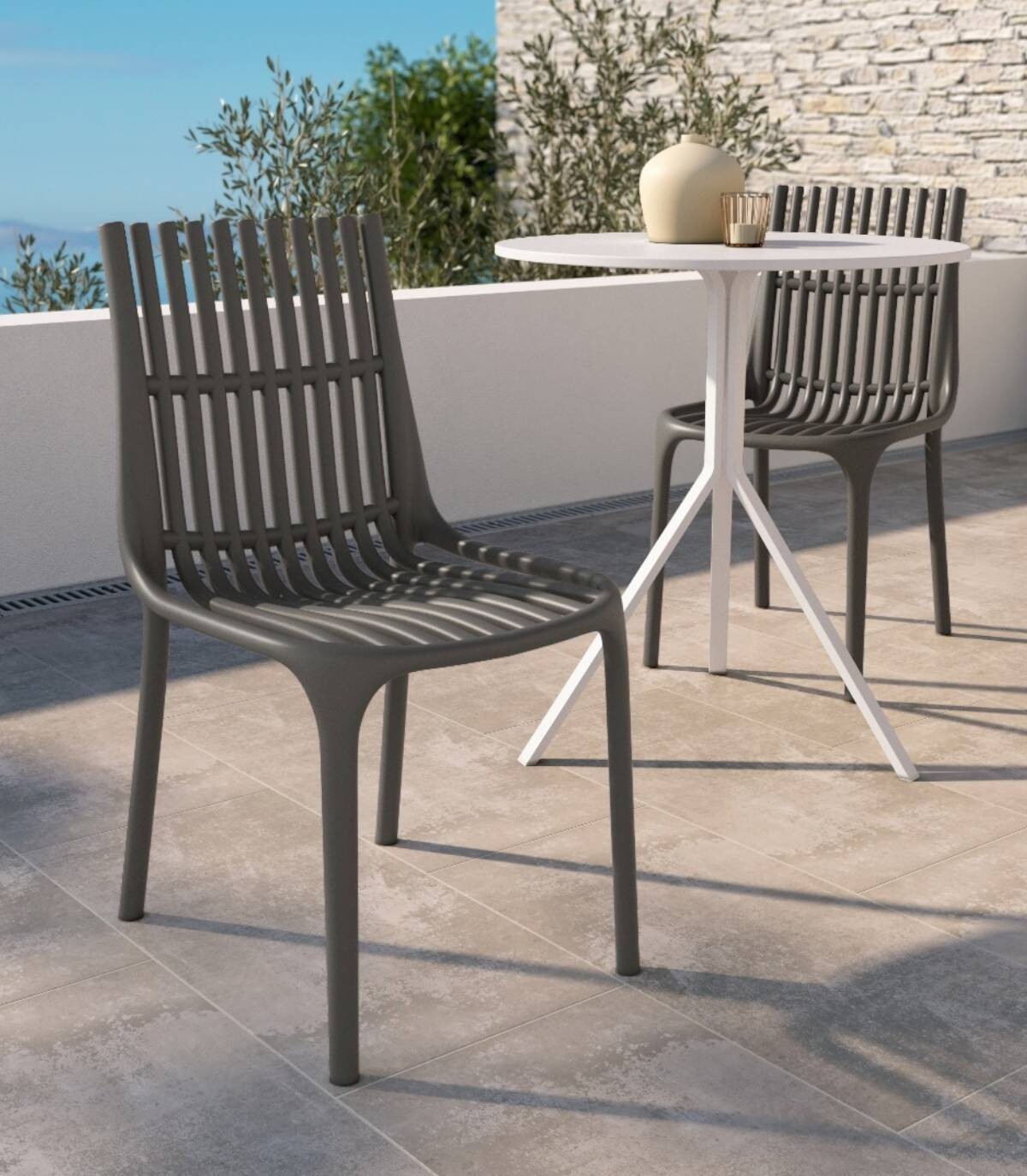 The Milan stackable monobloc style chair, With an elegant and modern design, it has a polypropylene structure with a finish all in the same color.