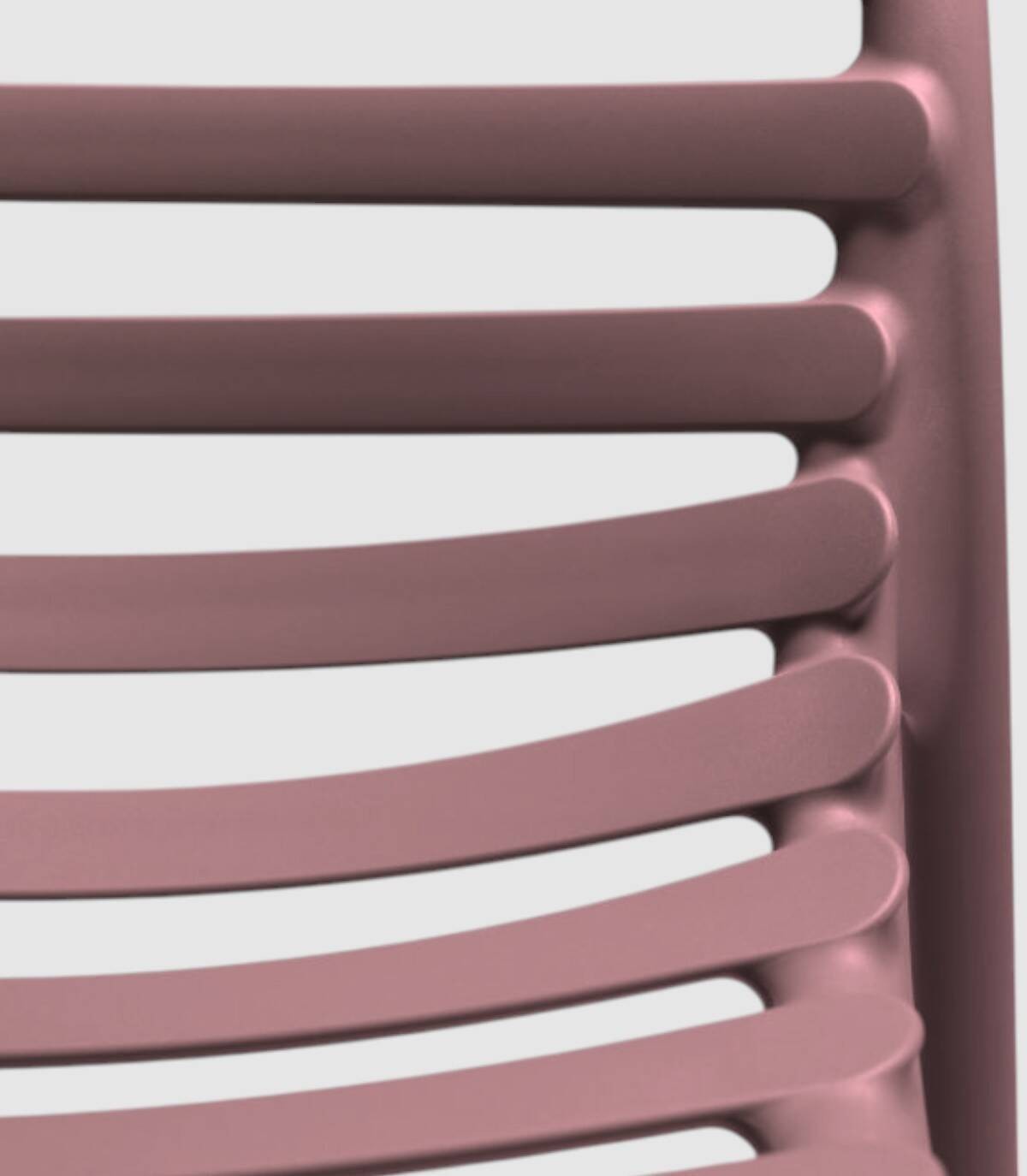 La silla apilable para exterior Doga se compone de asiento y respaldo fabricado en polipropileno fiberglass, tratado anti-UV, teñido en masa efecto mate, y cuatro patas con tapones antideslizantes.