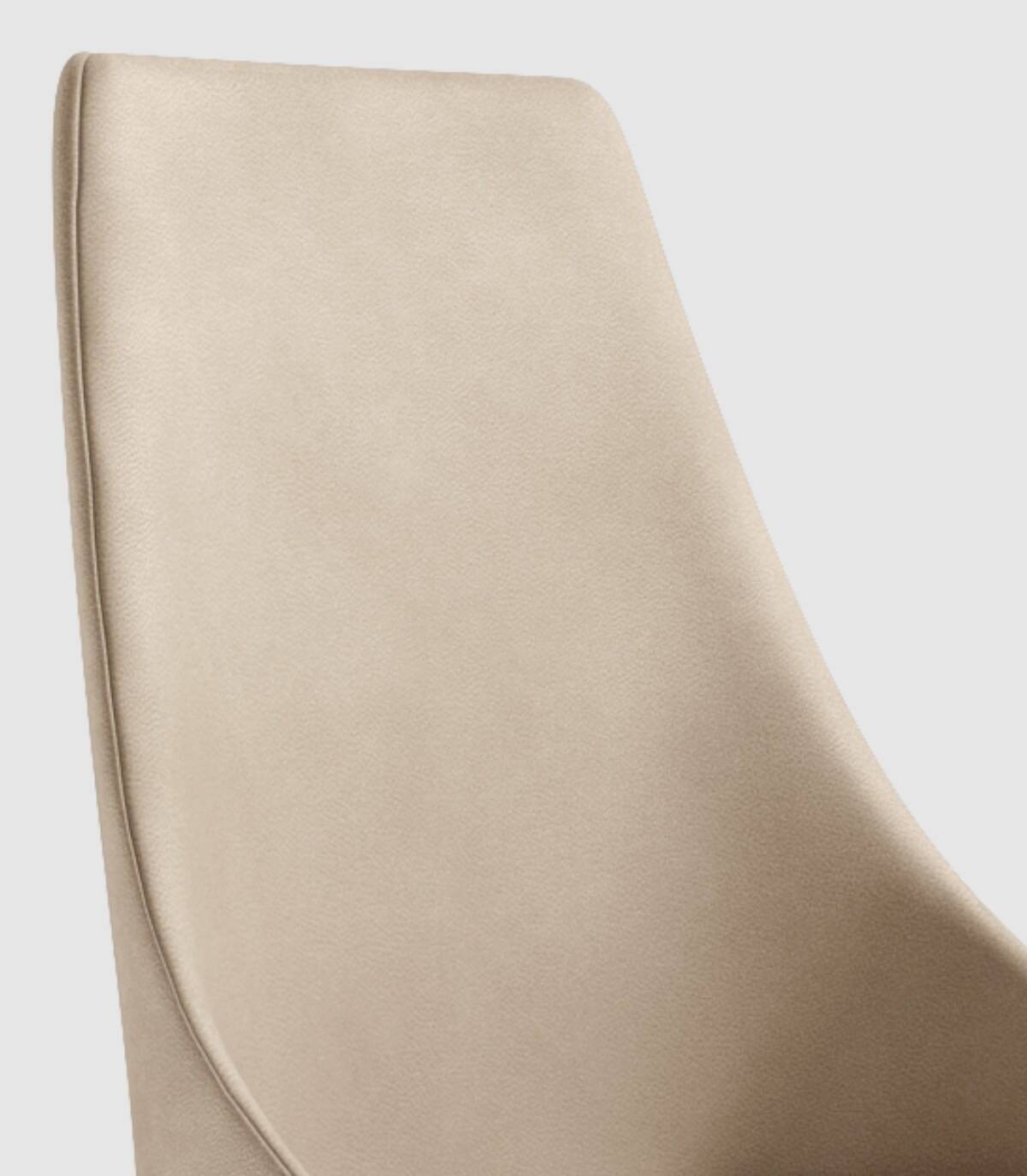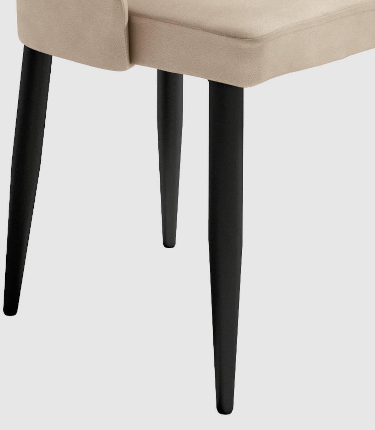 La silla París con asiento y respaldo tapizado, de diseño elegante y moderno, tiene una estructura metálica acabada en color negro.