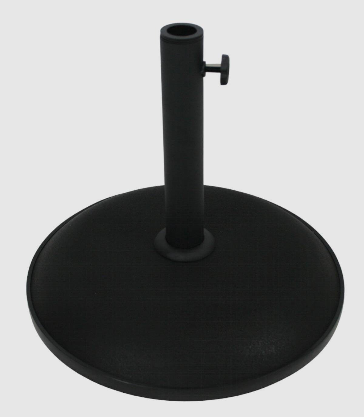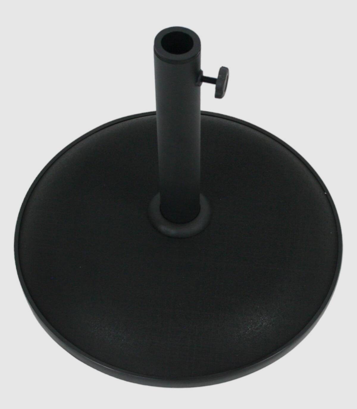 Base de cemento que sirve para mantener en pie un parasol con acoples para diferentes tamaños de palos.
