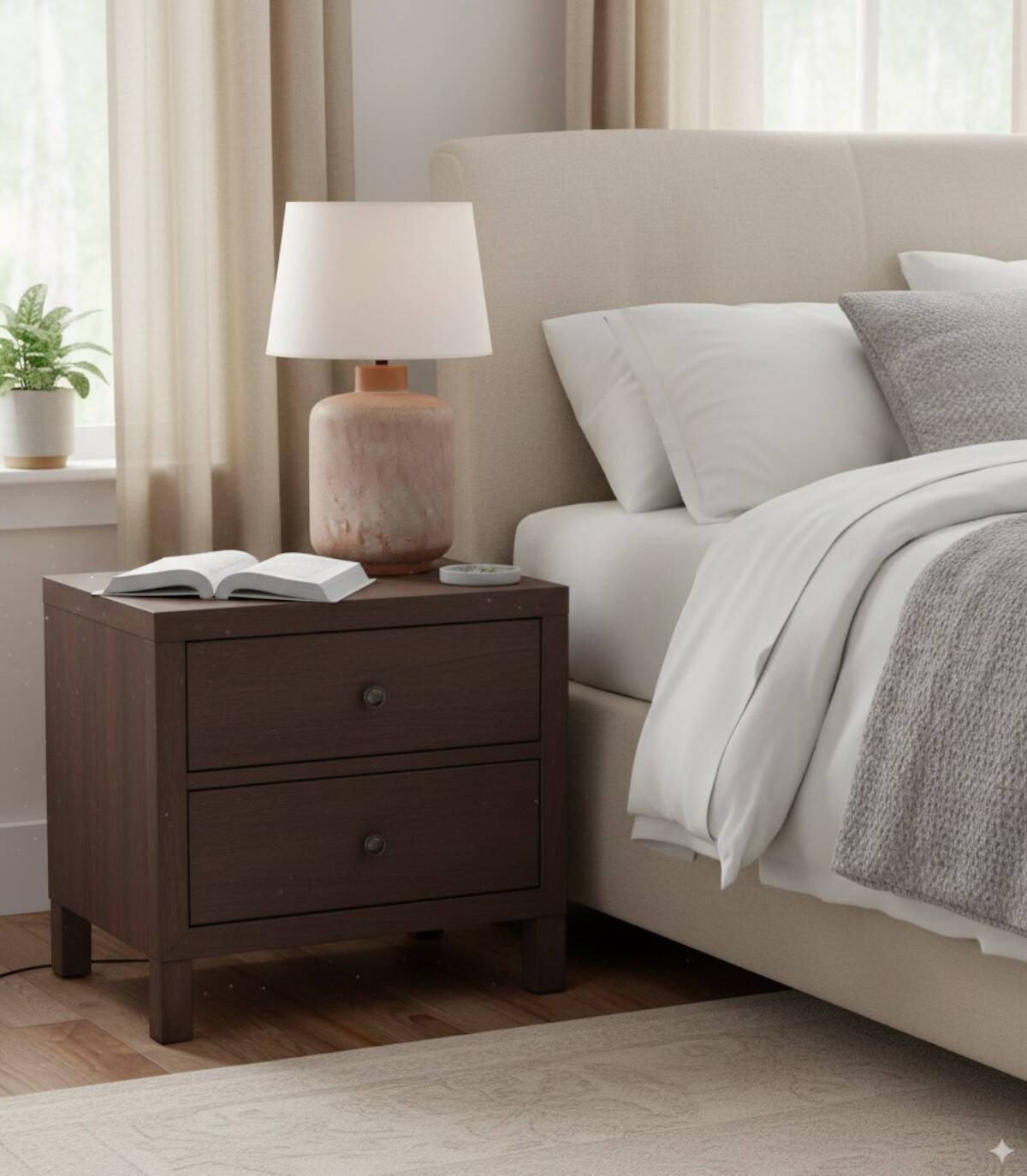 Lámpara marron y blanca pantalla beige