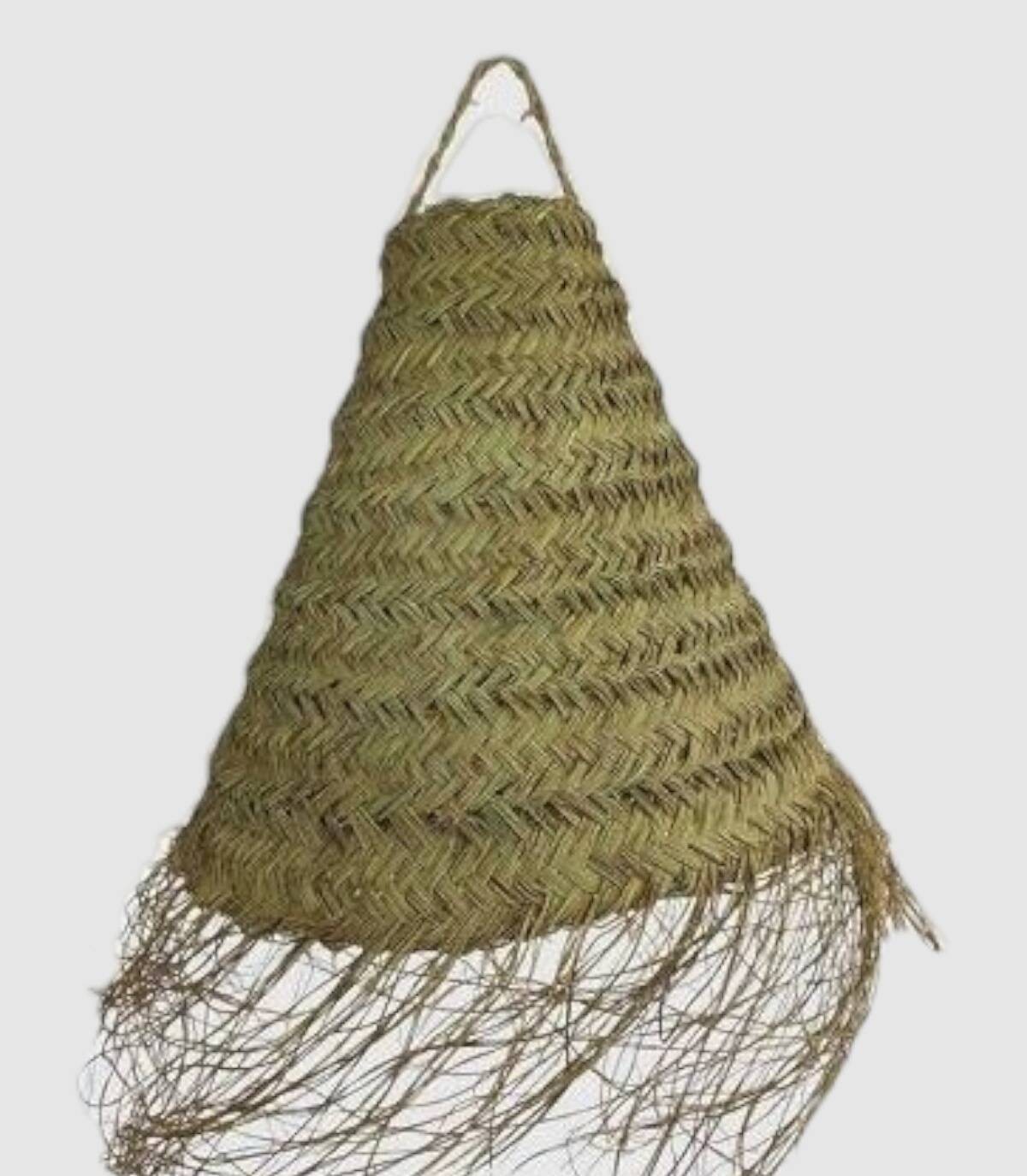 Esta lámpara cónica tupida hecha artesanalmente de esparto da un toque étnico en cualquier sitio donde se instale ,cambia de color según el uso si se usa en el exterior cambiando a un color mas amarillo.