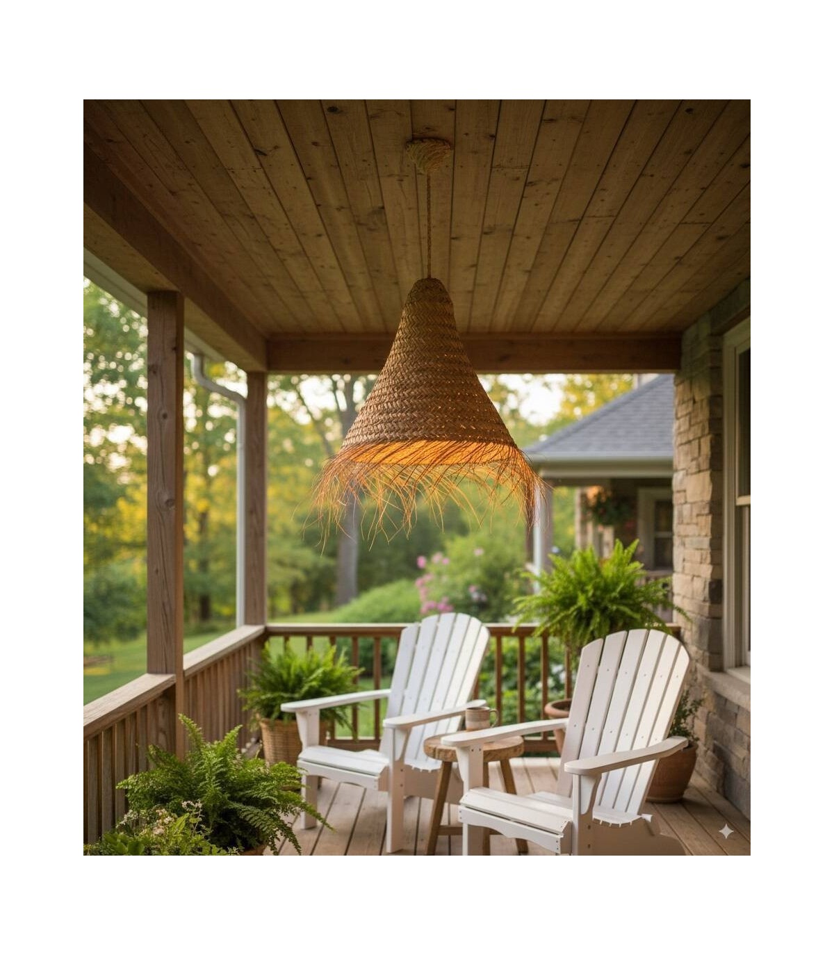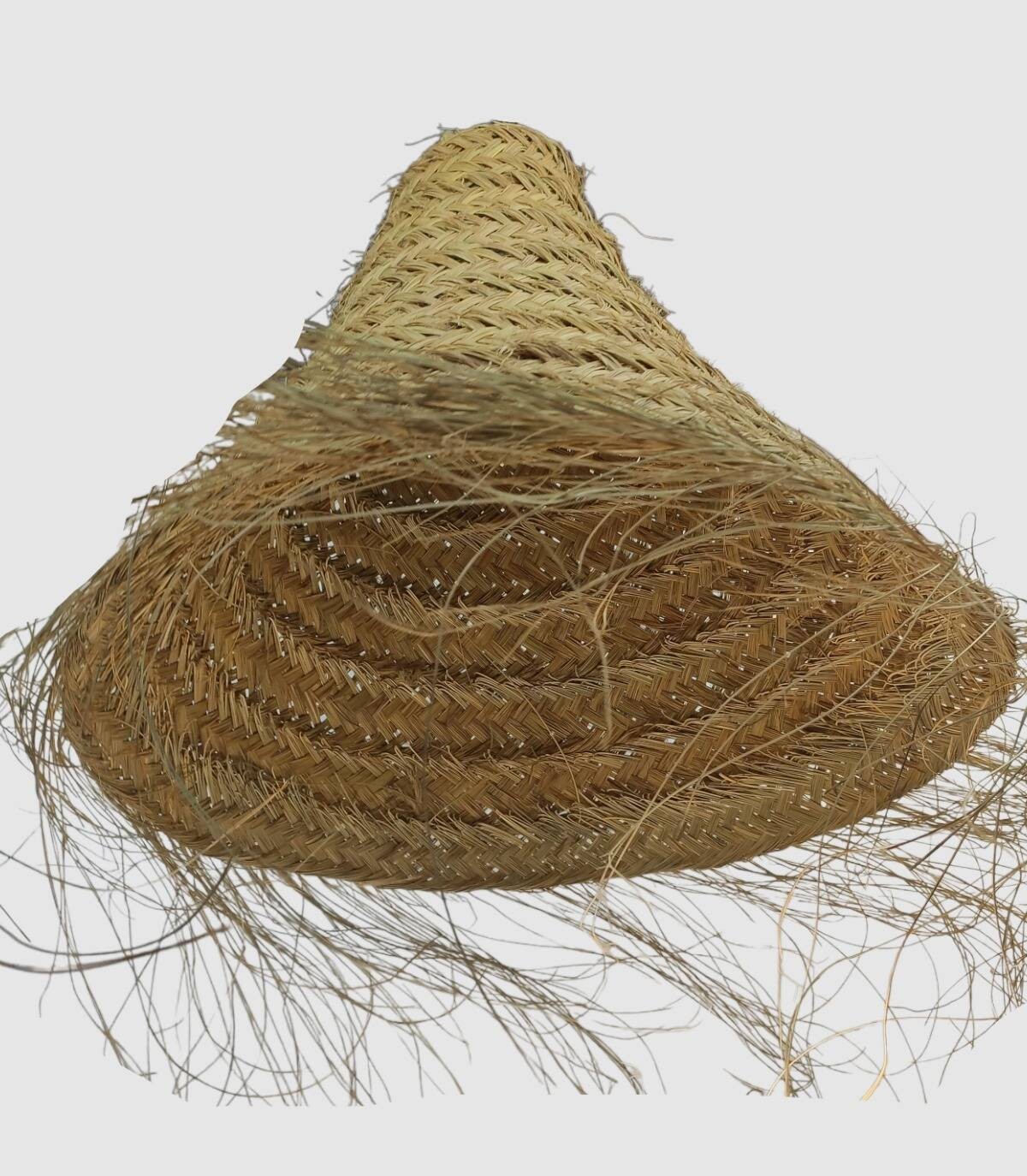 Esta lámpara cónica tupida hecha artesanalmente de esparto da un toque étnico en cualquier sitio donde se instale ,cambia de color según el uso si se usa en el exterior cambiando a un color mas amarillo.