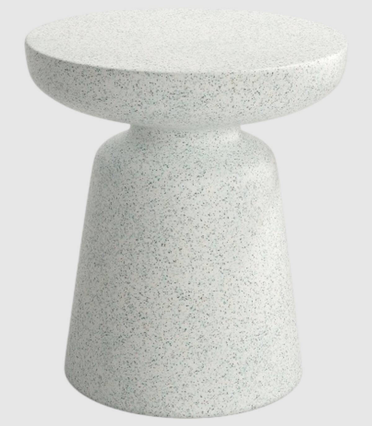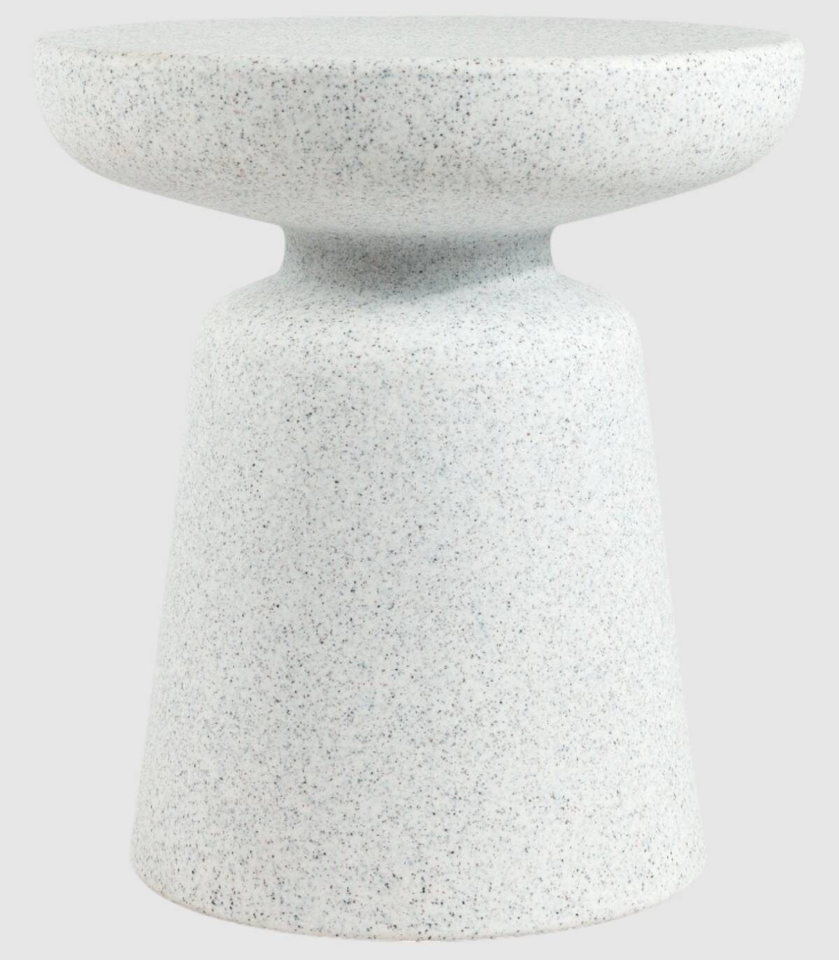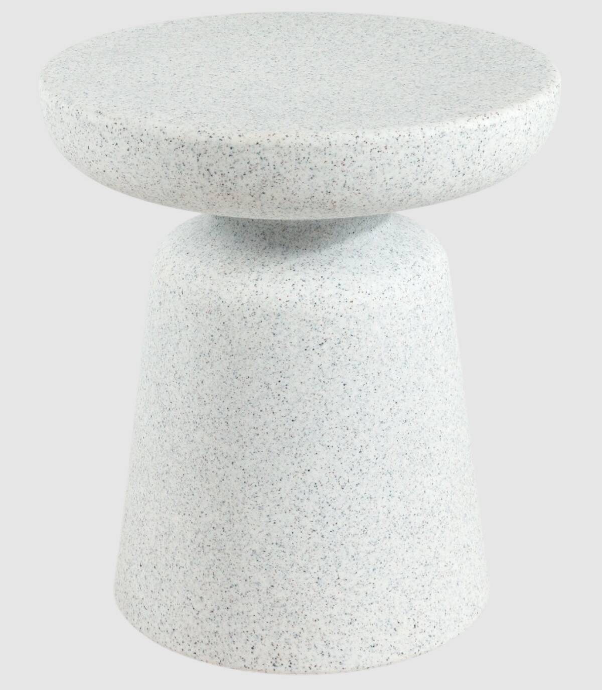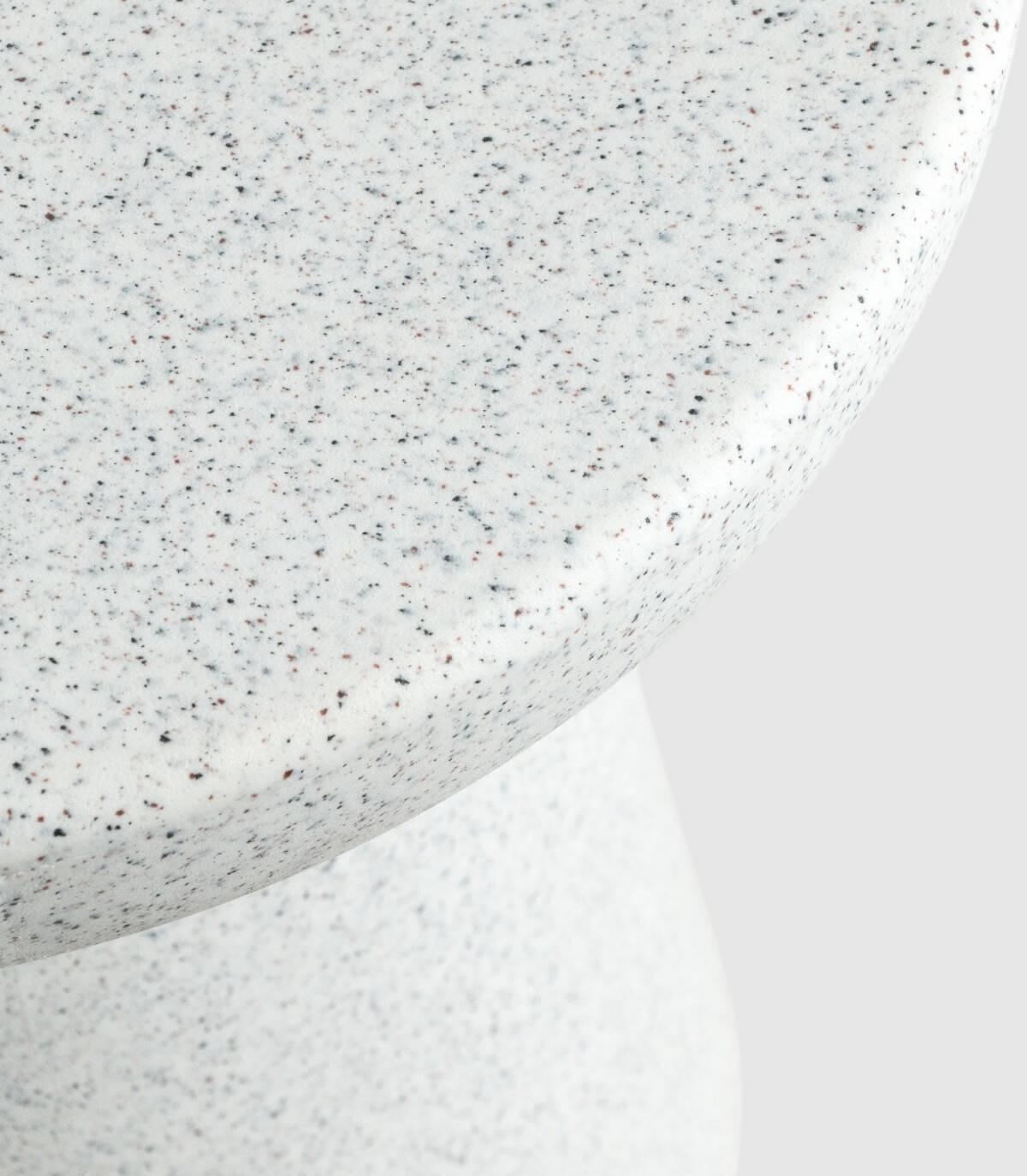 La mesa de centro Borneo redonda de exterior se compone de una pieza de polipropileno con estilo de puntos estilo piedra de color minas.