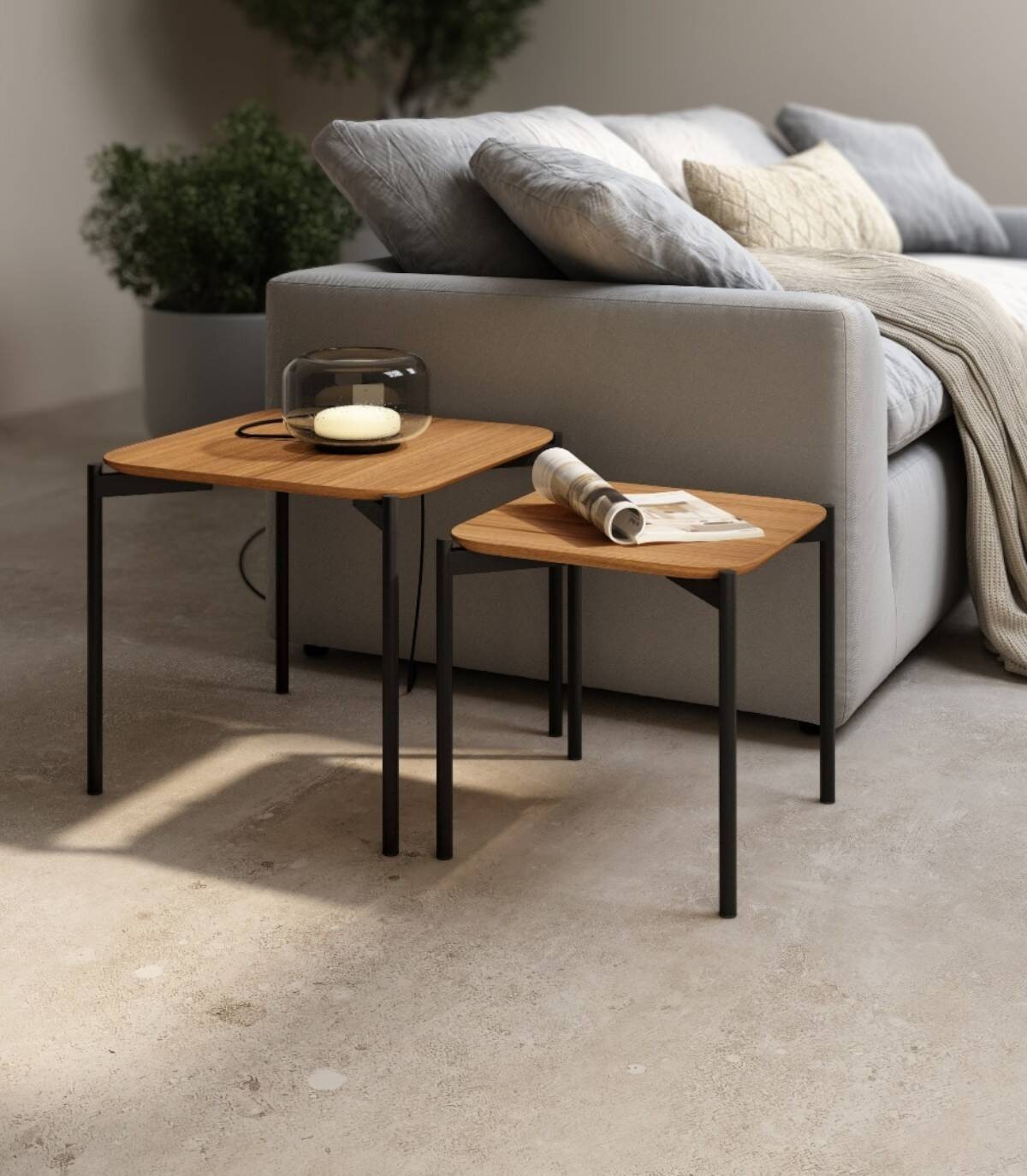 Juego 2 mesas cuadradas roble Java