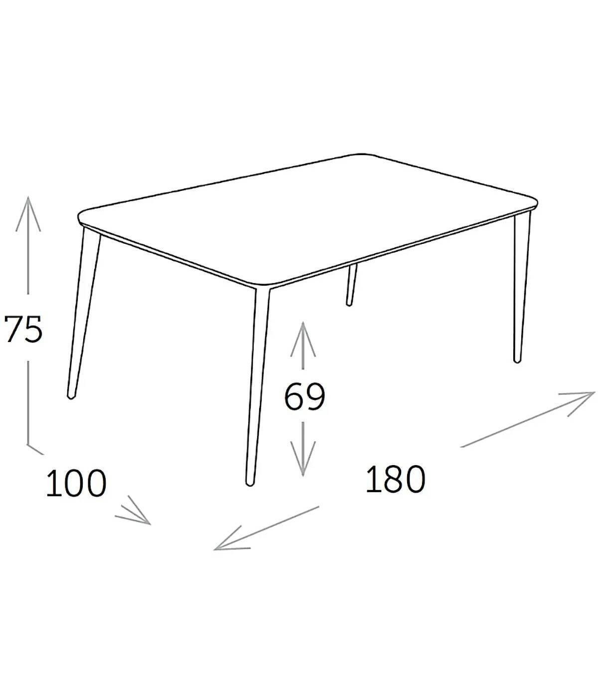 La mesa de aluminio Timo está fabricada en aluminio con revestimiento en polvo (poliéster). Tiene una superficie rectangular lisa de ceramica. Las 4 patas tienen tapones antideslizantes.