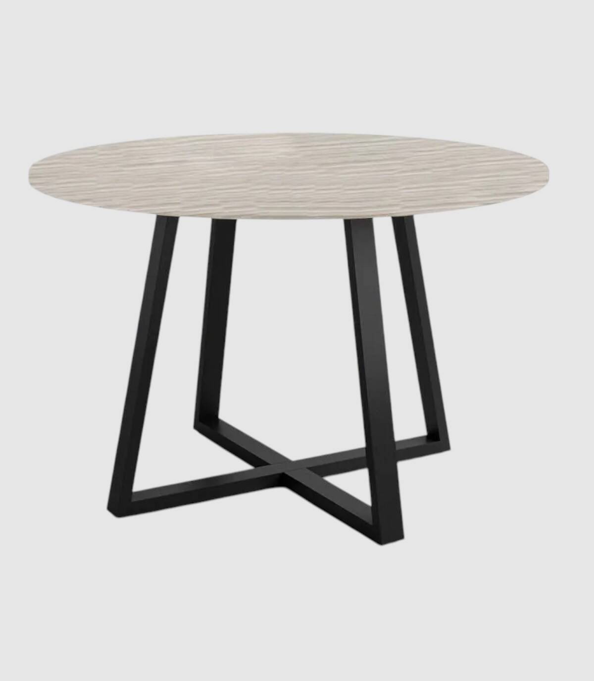 La mesa Lugano redonda se compone de estructura y patas de color negro con tablero de melamina de color artic.