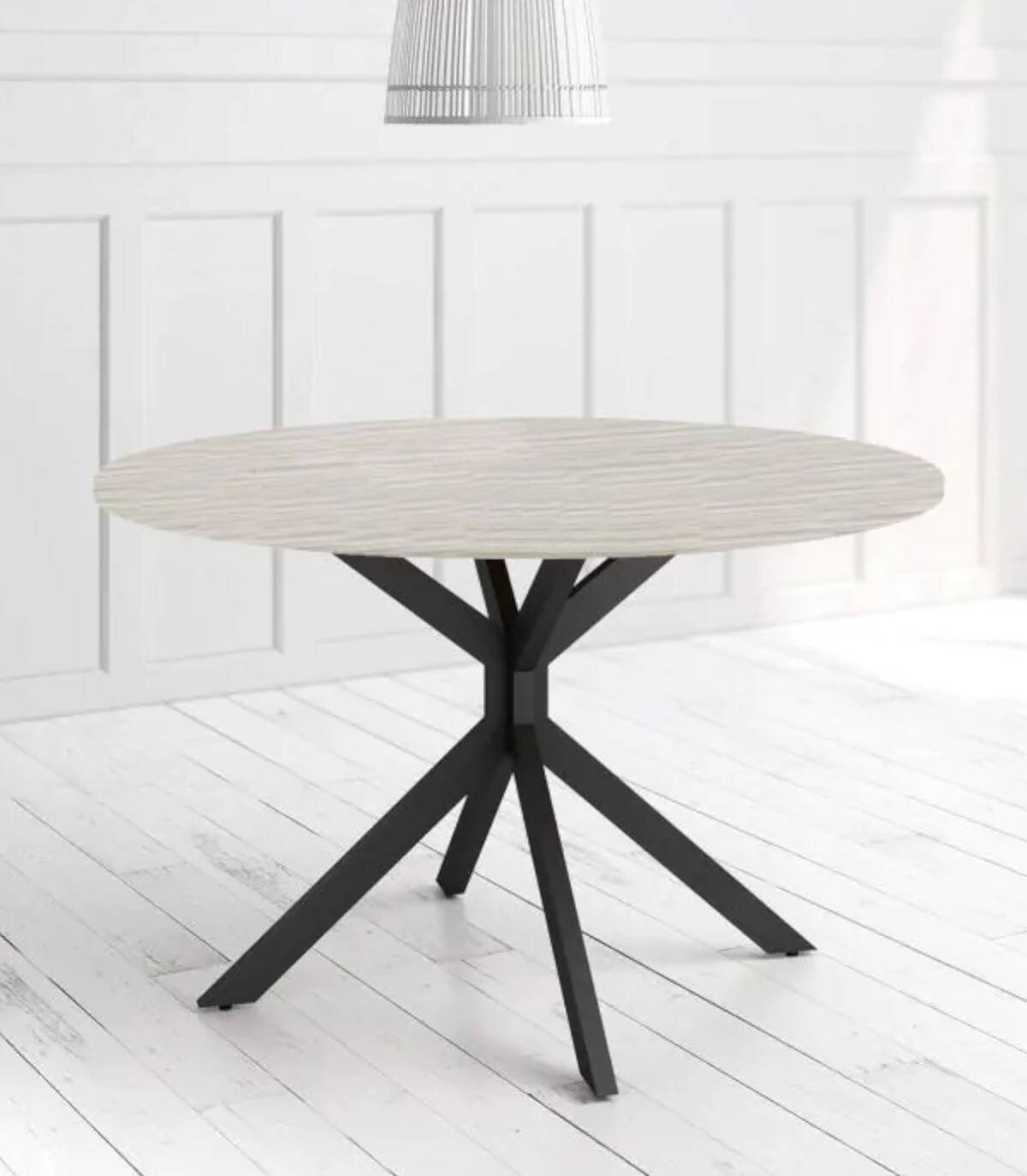 La mesa Wako redonda se compone de estructura y patas de color negro con tablero de melamina de color artic.