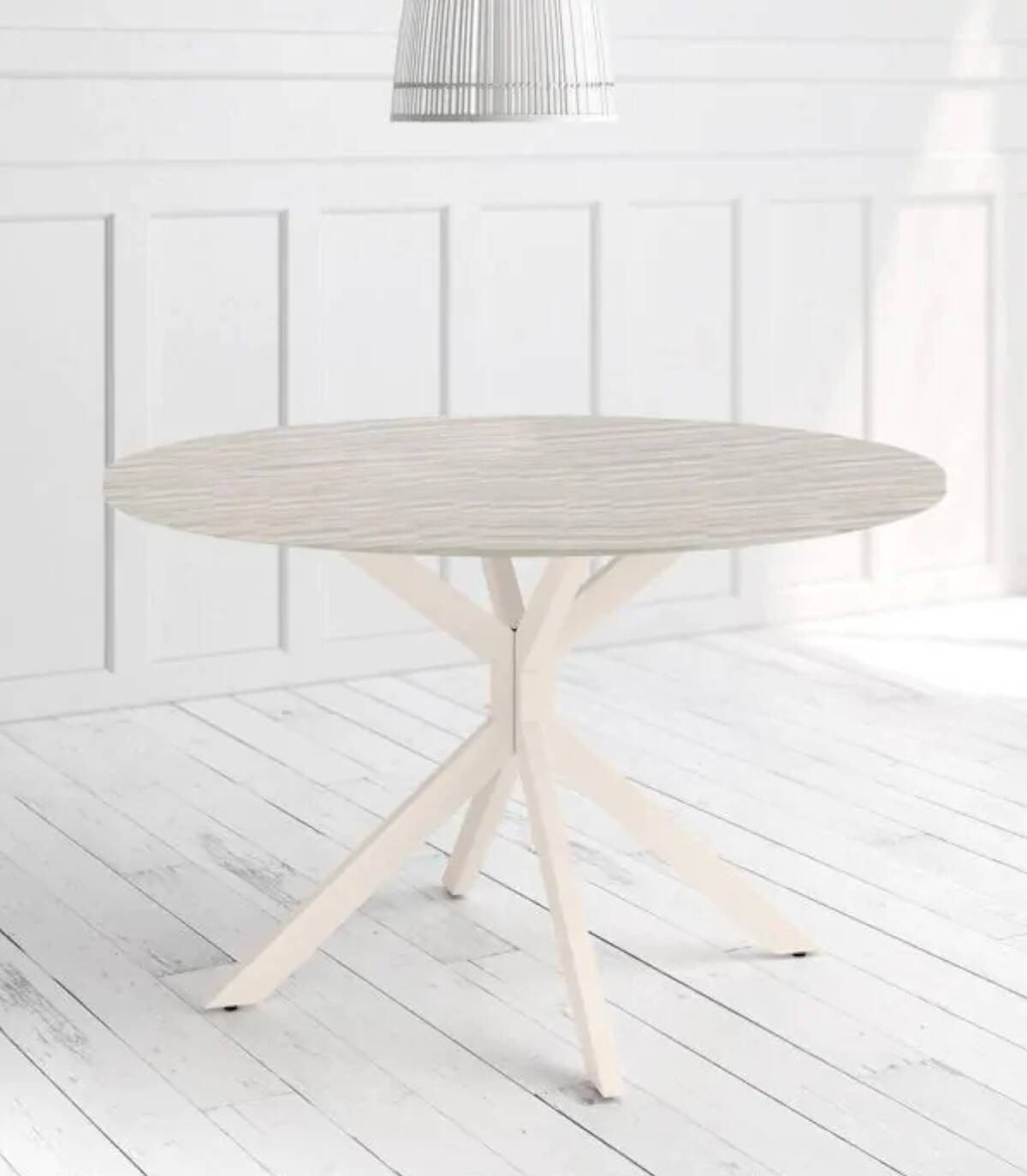La mesa Wako redonda se compone de estructura y patas de color marfil con tablero de melamina de color artic.