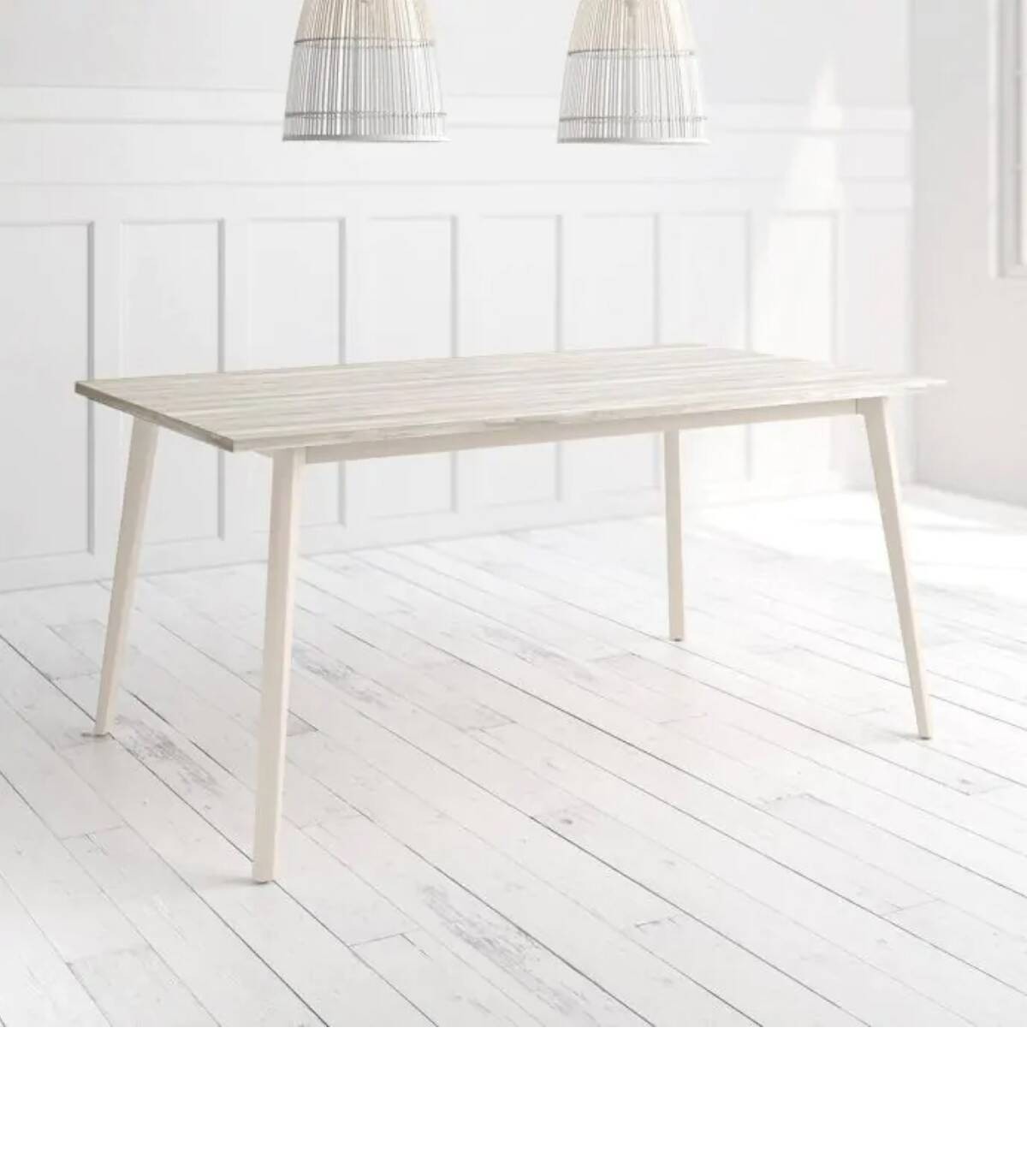 La mesa Kamba rectangular se compone de estructura y patas de color marfil con tablero de melamina de color artic.