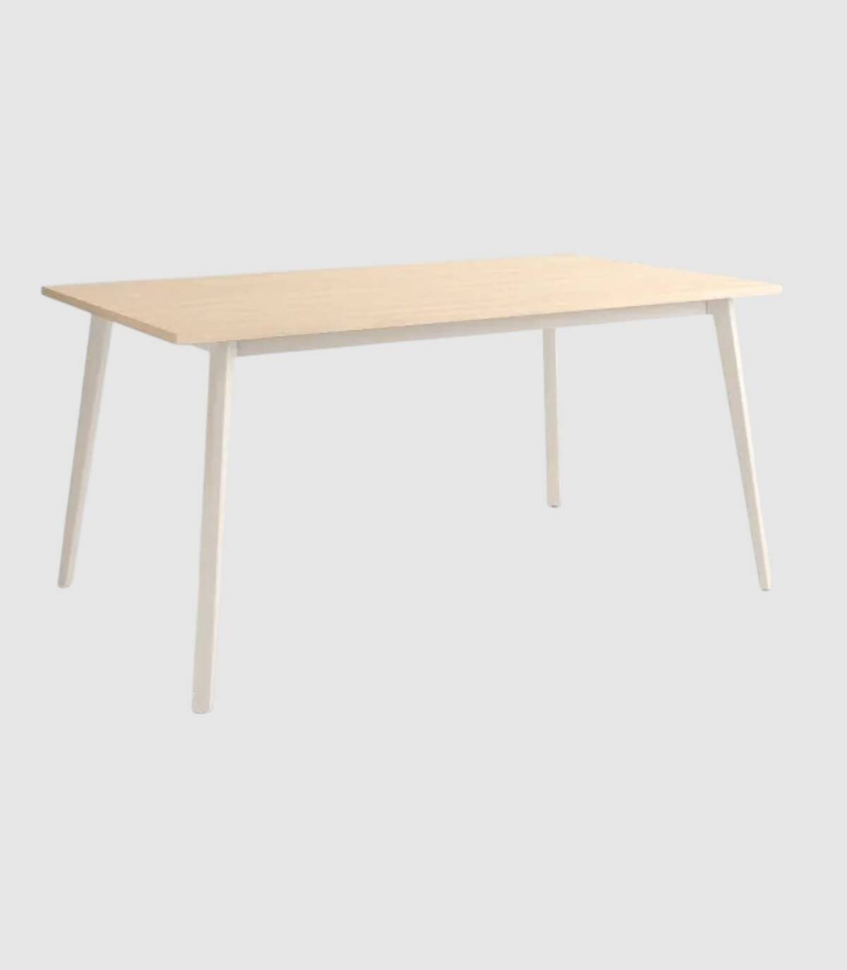 La mesa Kamba rectangular se compone de estructura y patas de color marfil con tablero de melamina de color alpin.