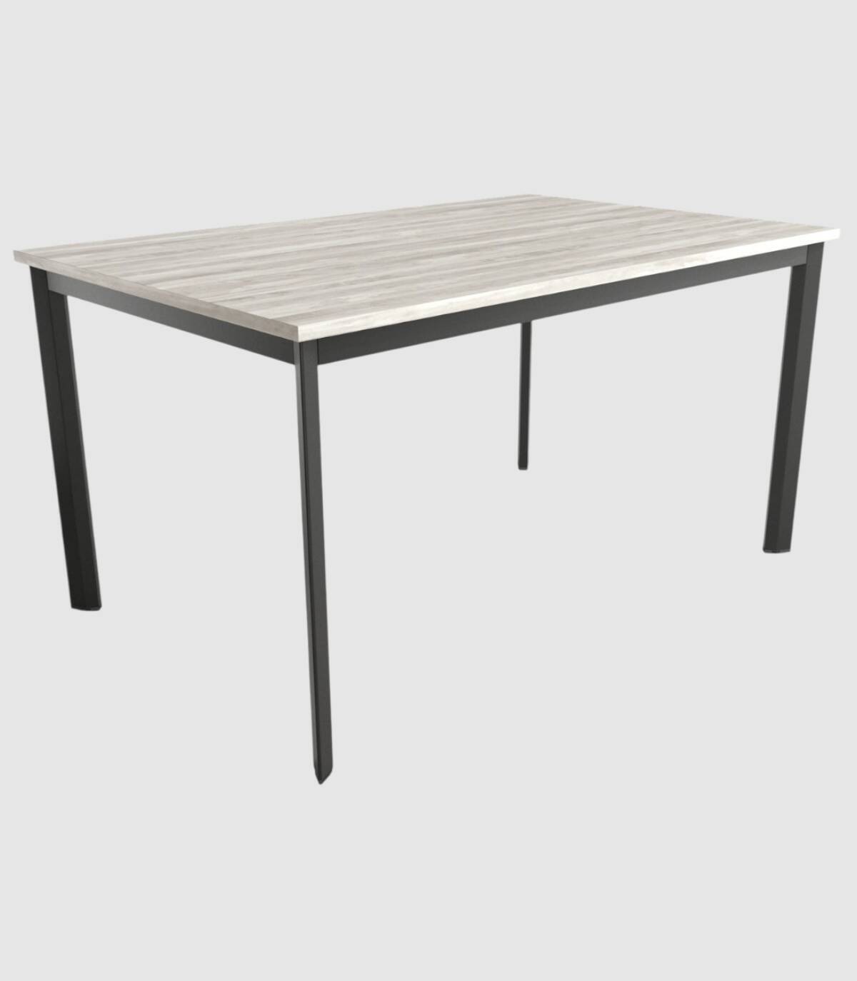 La mesa Garda cuadrada se compone de estructura y patas de color negro con tablero de melamina de color artic.