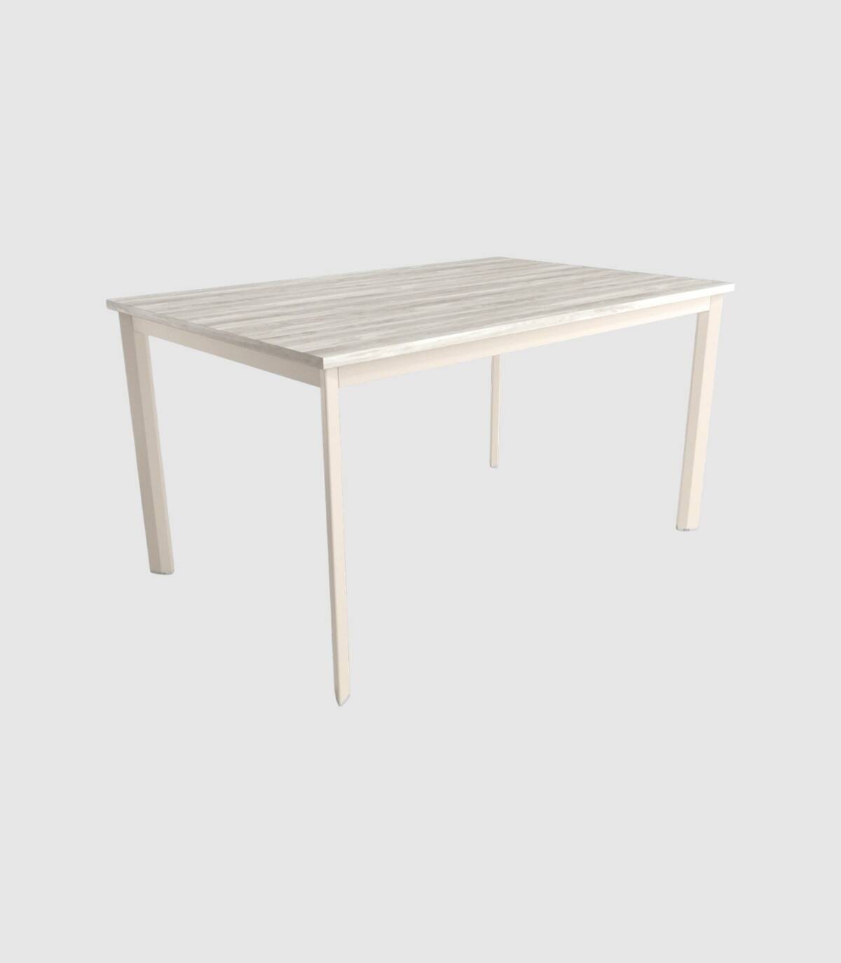 La mesa Garda cuadrada se compone de estructura y patas de color marfil con tablero de melamina de color artic.