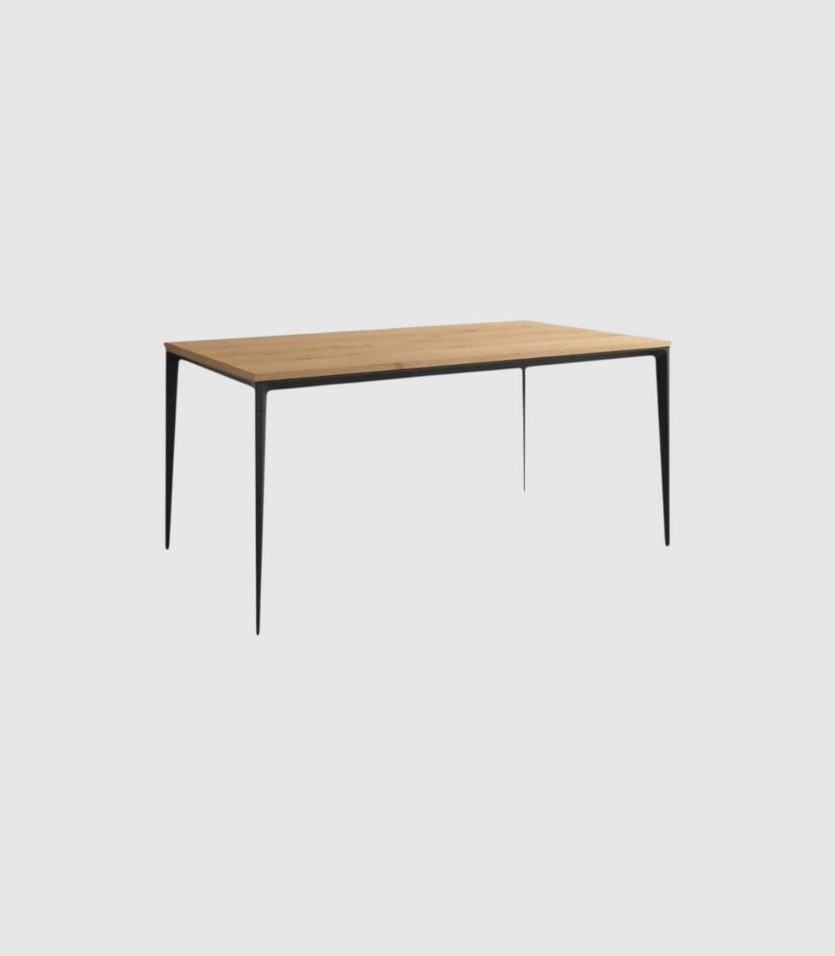 La mesa Ness cuadrada se compone de estructura y patas de color negro con tablero de melamina de color roble.