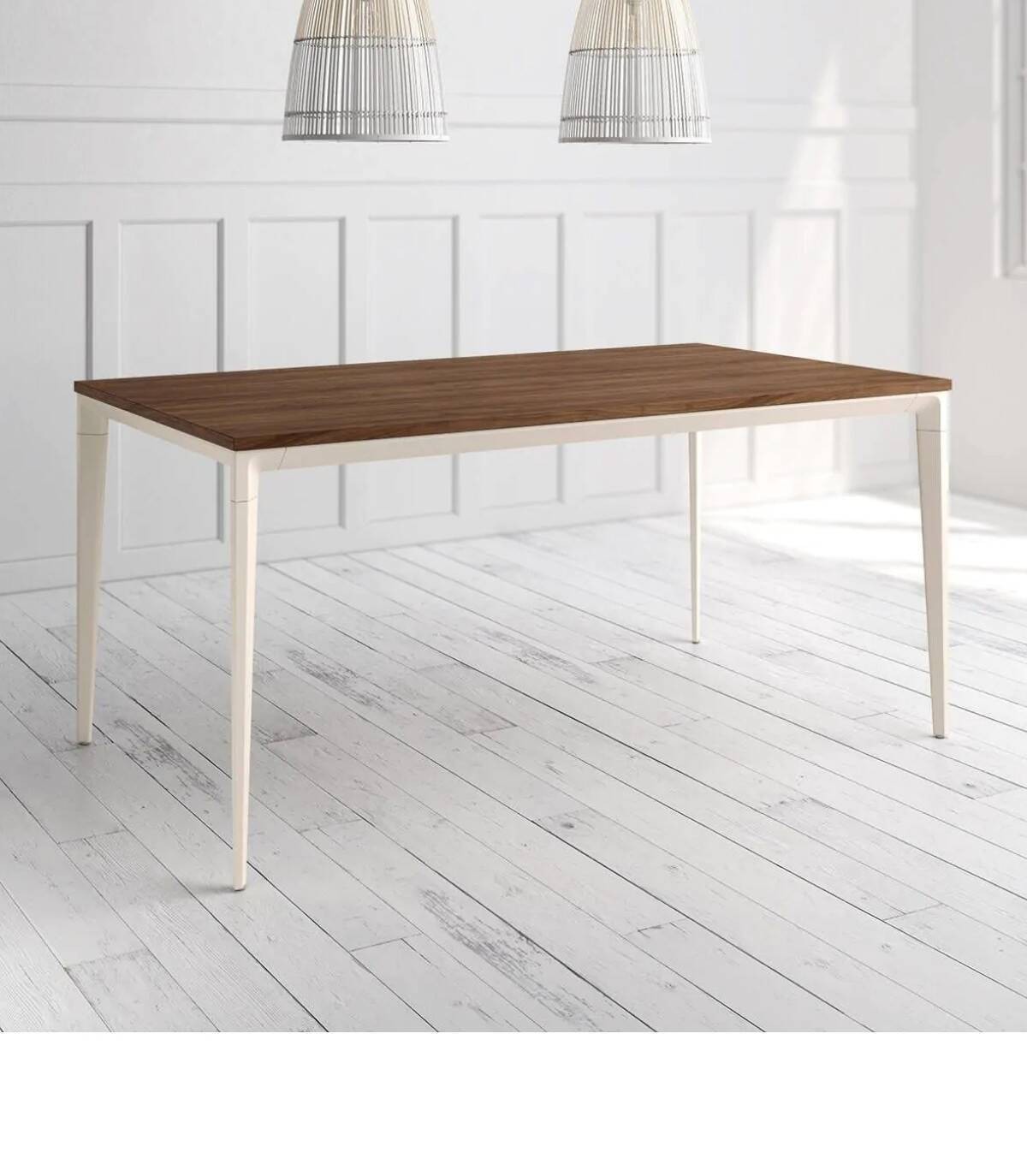 La mesa Ness rectangular se compone de estructura y patas de color marfil con tablero de melamina de color java.