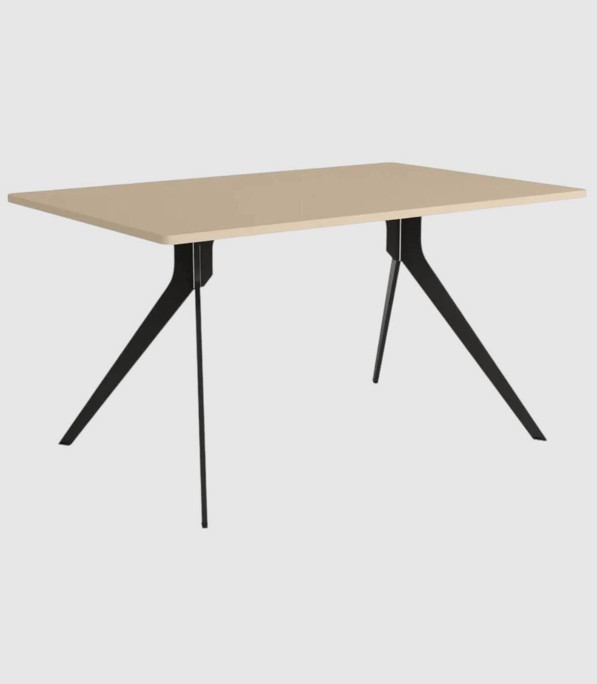 La mesa Iseo de comedor rectangular fija se compone de tablero con esquinas redondeadas con acabado de melaminas sobre estructura metálica pintada de color negro, con diseño de cuatro patas diagonales.