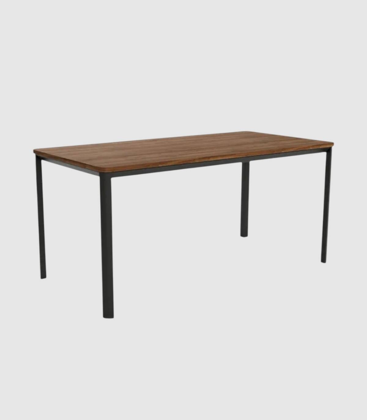 La mesa Onea de comedor rectangular fija se compone de tablero con esquinas redondeadas con acabado de melaminas sobre estructura metálica de cuatro patas pintada de color negro.