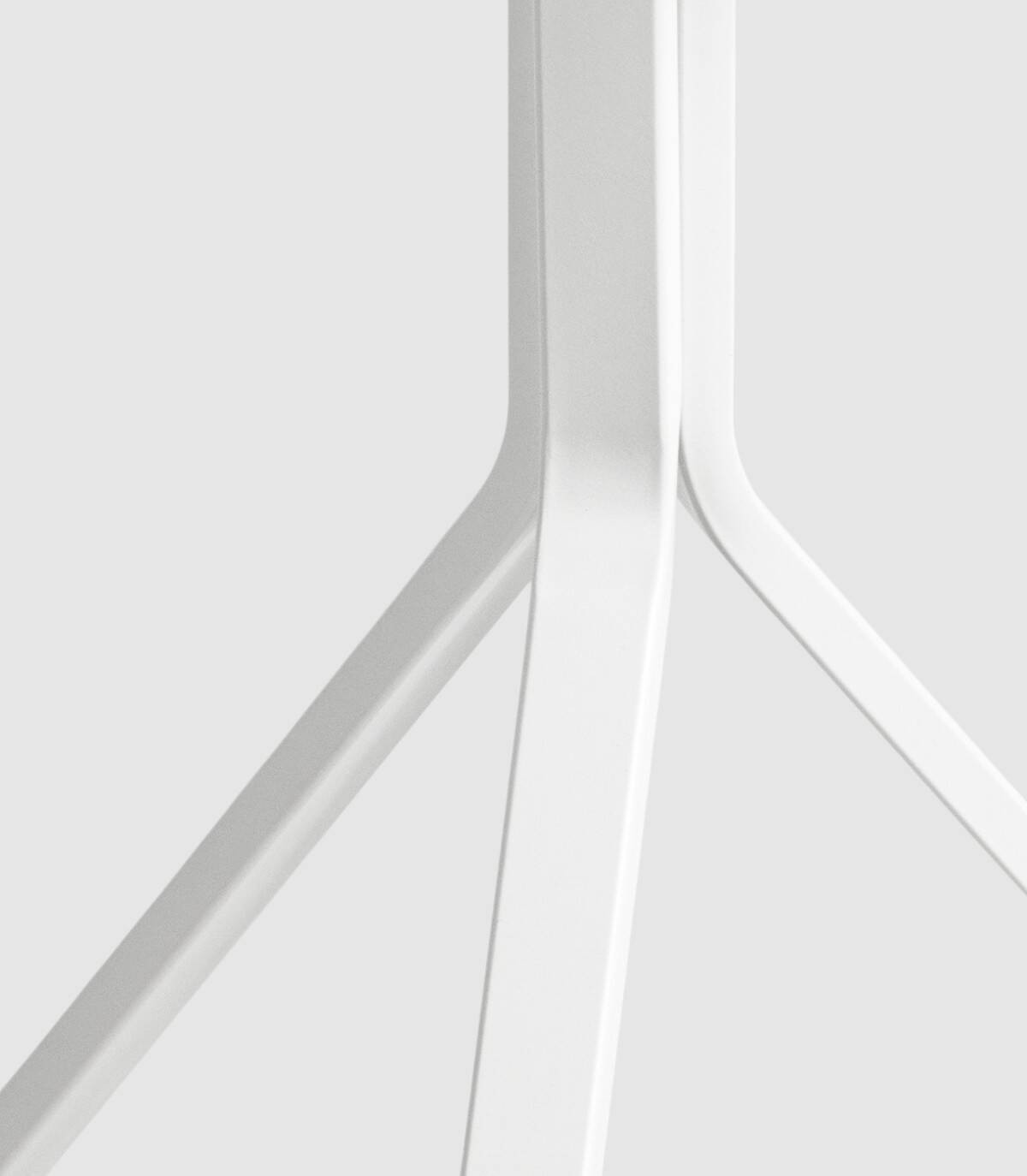 La mesa Jónico redonda, de diseño elegante y moderno, tiene sobre de polipropileno y patas de metal lacadas del mismo color.