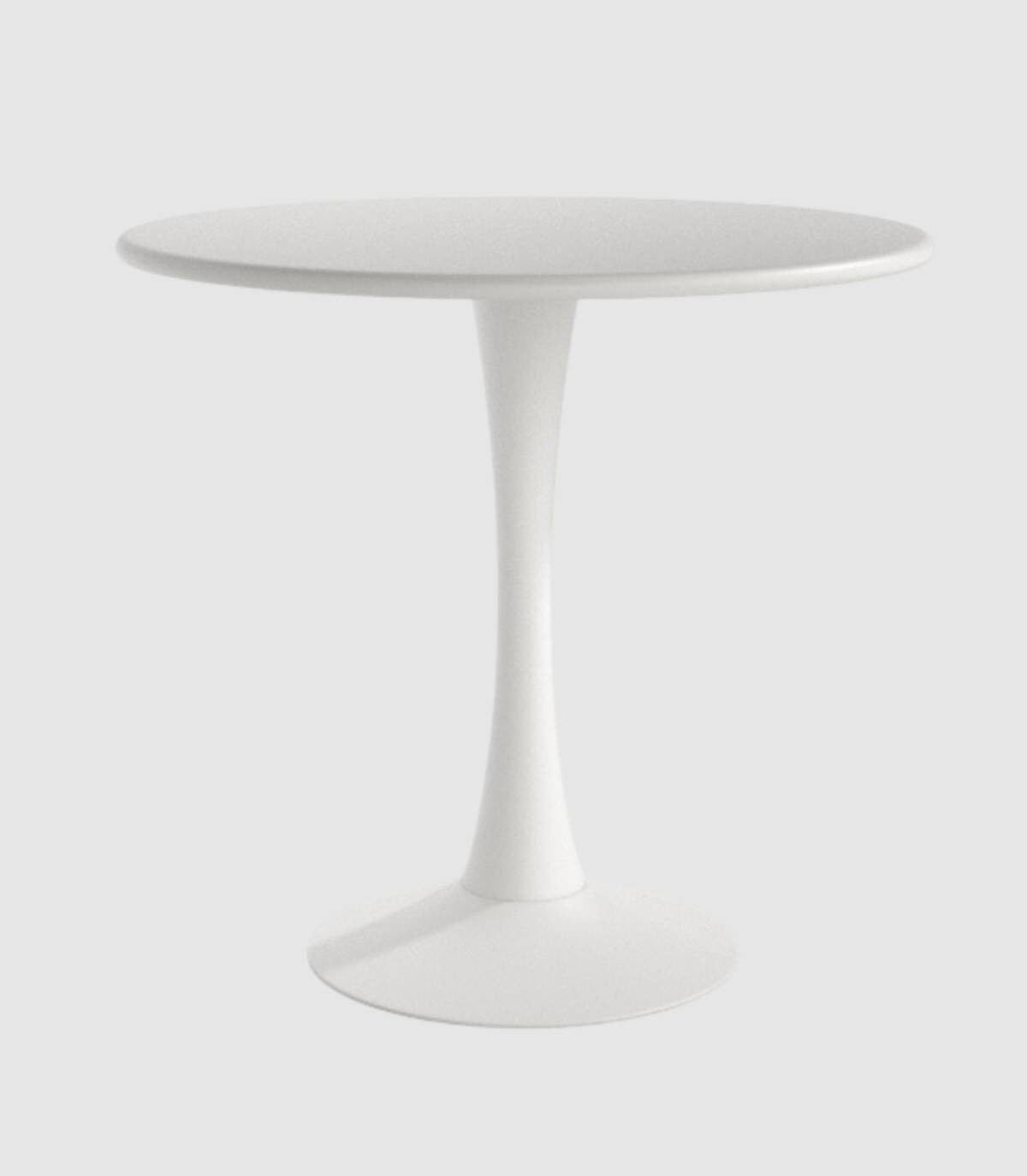 La mesa Capri redonda de exterior se compone de tablero liso metálico sobre estructura metálica de una pata central con base pintadas del mismo color.