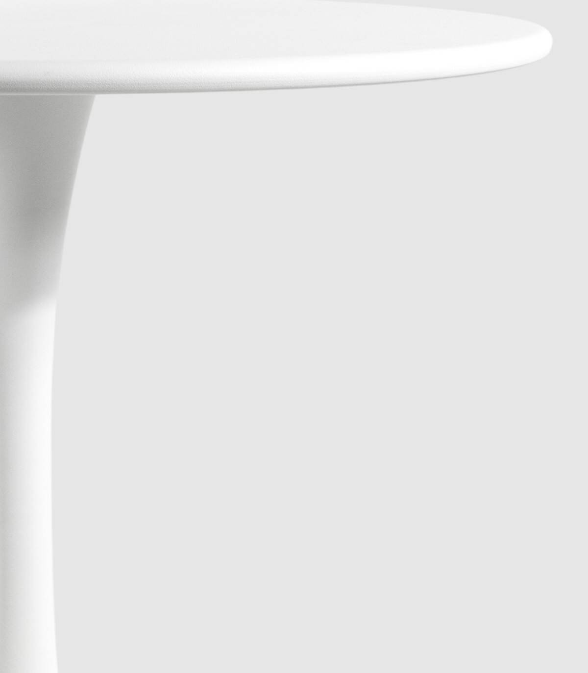 La mesa Capri redonda de exterior se compone de tablero liso metálico sobre estructura metálica de una pata central con base pintadas del mismo color.