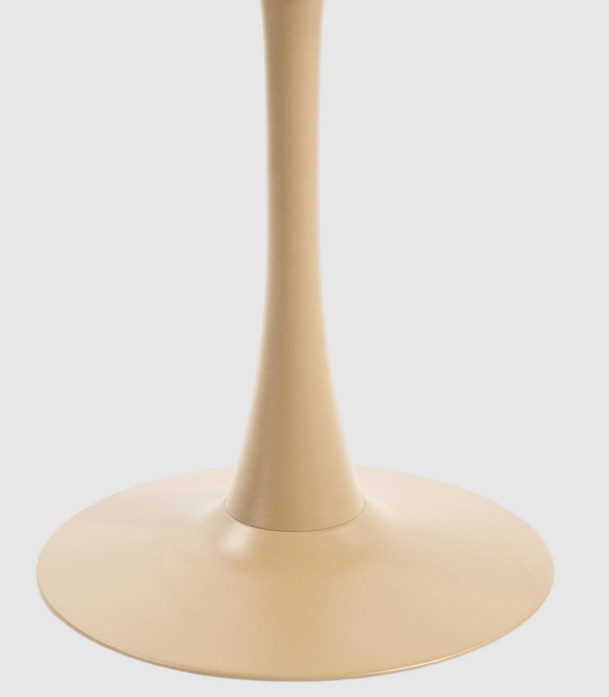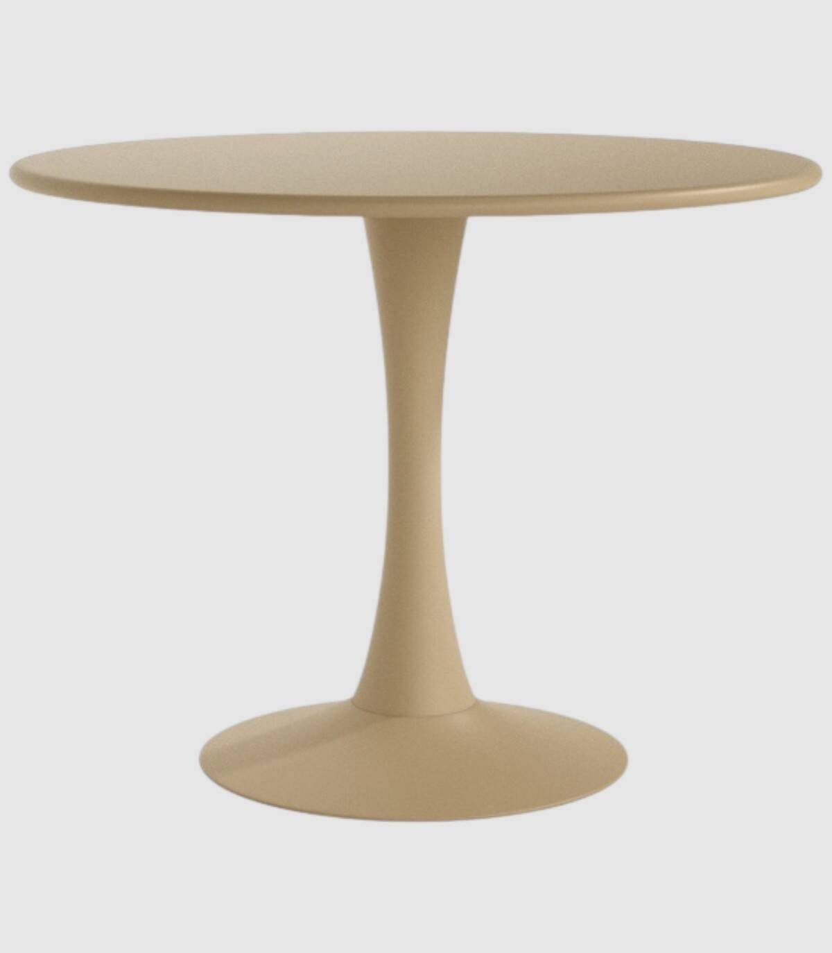 La mesa Capri redonda de exterior se compone de tablero liso metálico sobre estructura metálica de una pata central con base pintadas del mismo color.
