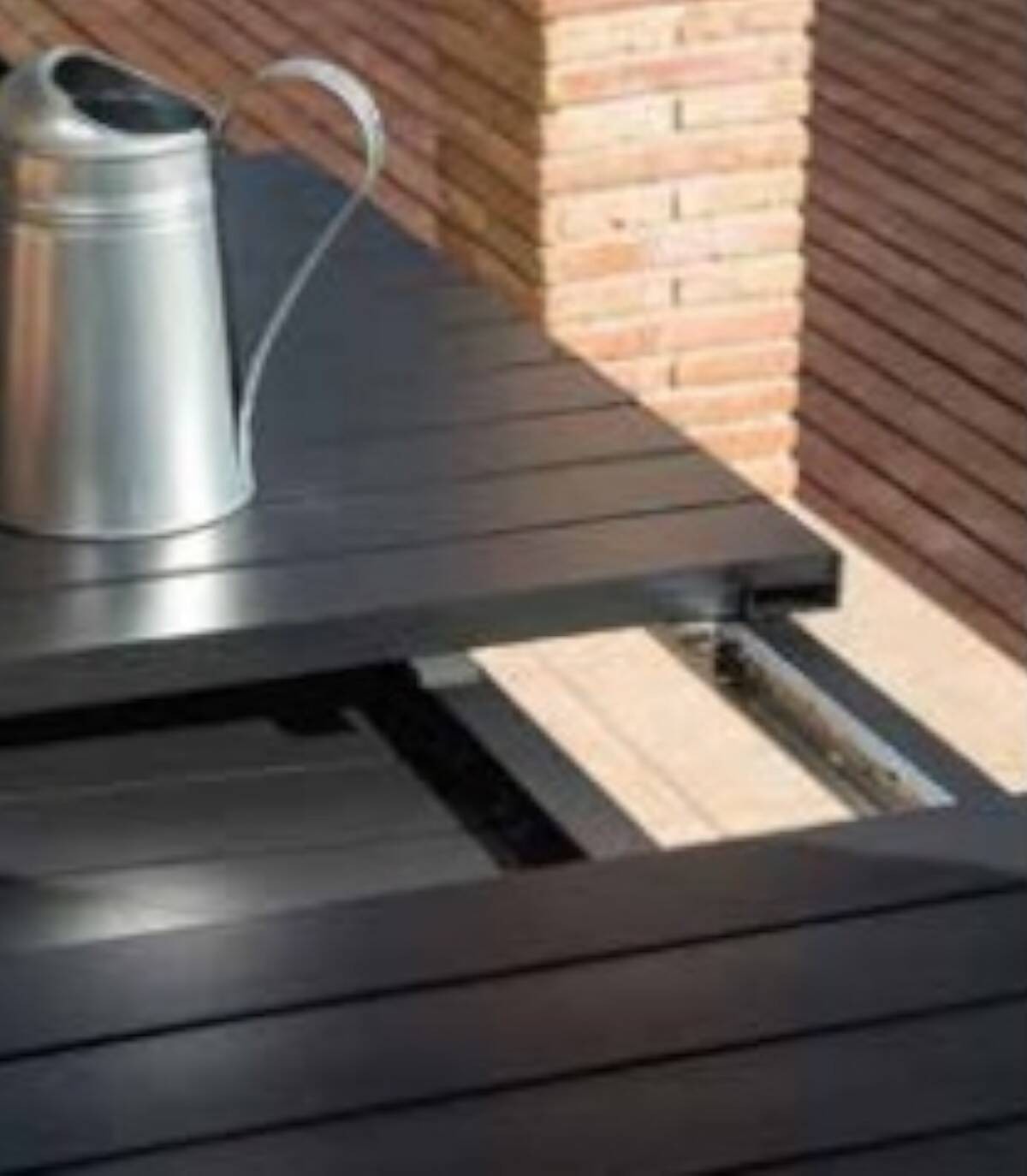 La mesa extensible para comedor de aluminio Auto está fabricada en aluminio con revestimiento en polvo (poliéster). Tiene una superficie rectangular lisa de aluminio. Las 4 patas tienen tapones antideslizantes.