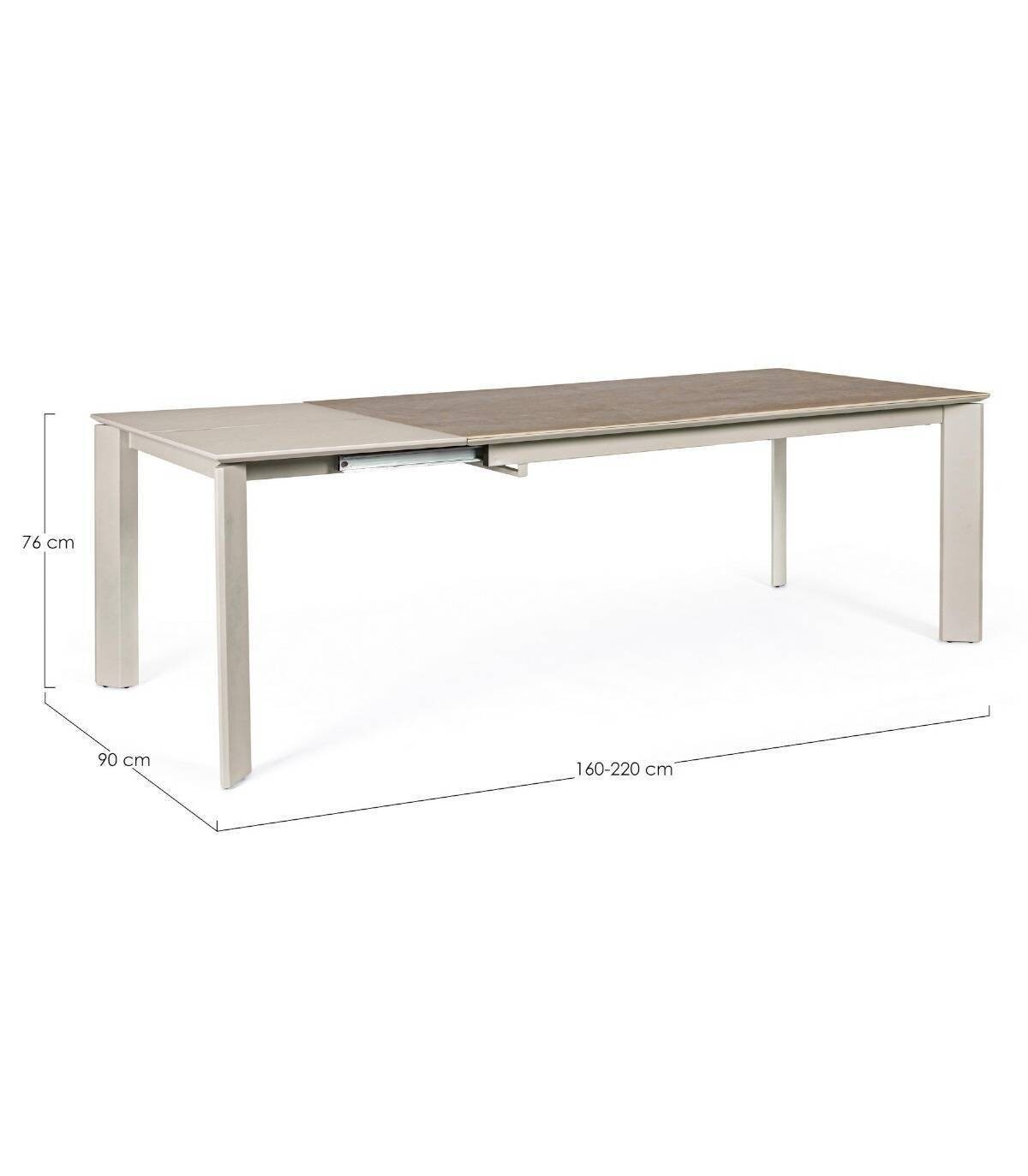 La mesa extensible Briva tiene estructura de acero con revestimiento en polvo epoxi, tapa de cerámica (5 mm) con soporte de dm (18 mm), extensión de dm (21 mm). Requiere ensamblaje.