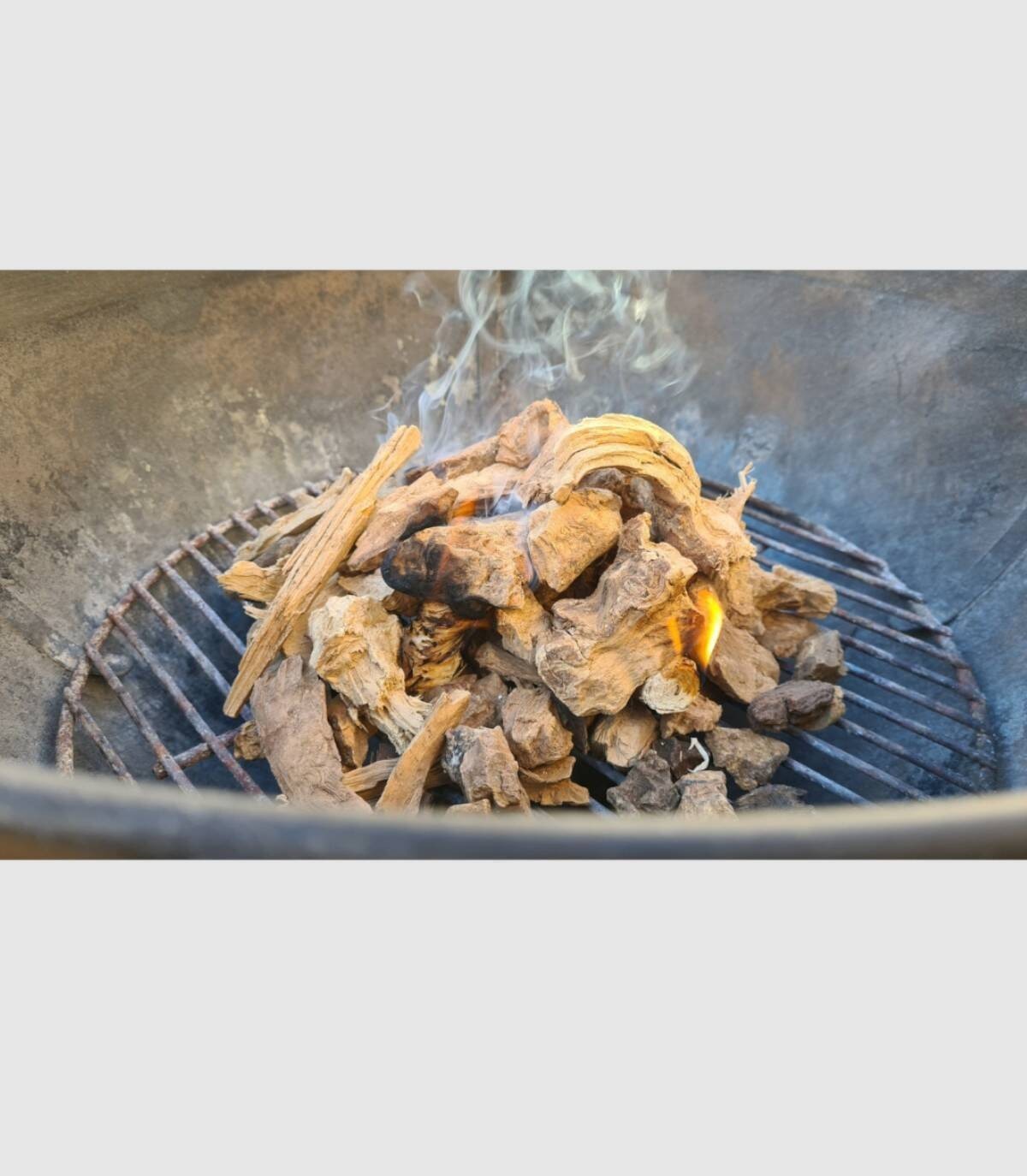 Zak met drie kg. van olijvenchips om te koken op de barbecue. Hiermee kunt u in 20-30 minuten sintels maken voor snel barbecueën.
