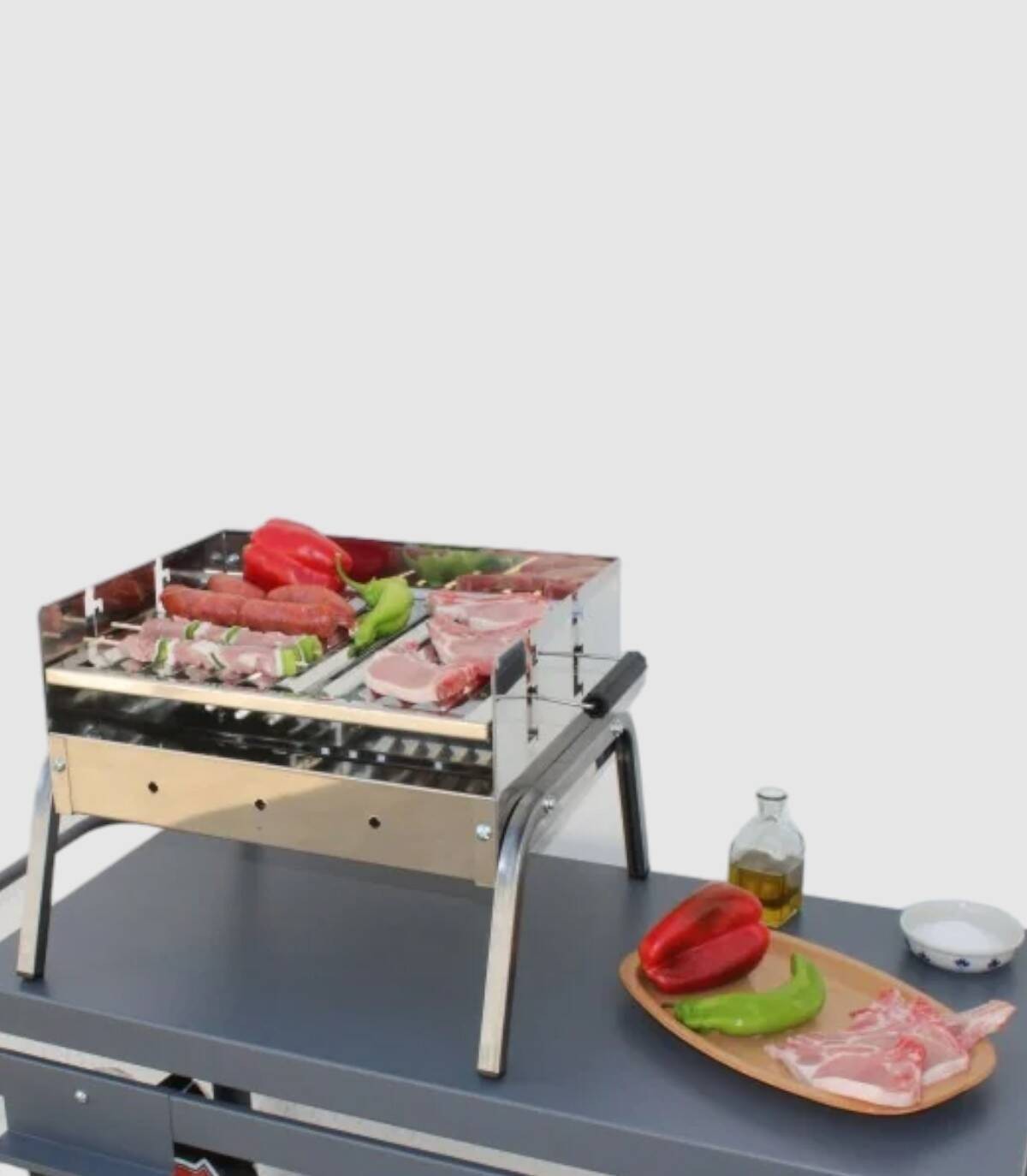 La barbacoa de sobremesa Avila se compone de quemador de carbón, parrilla regulable en tres alturas de acero inoxidable con bandejas recoge grasas y asas.