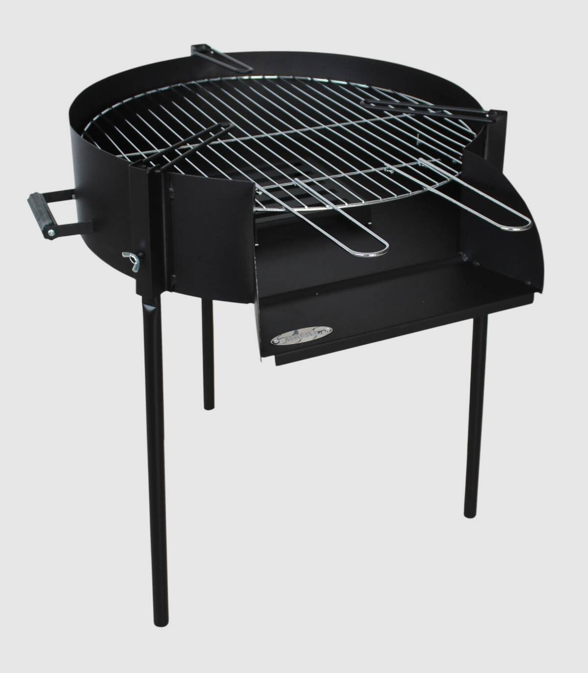 La barbacoa paellero se compone de quemador de carbón o leña con parrilla de acero inoxidable, soporte para paellas y asas.