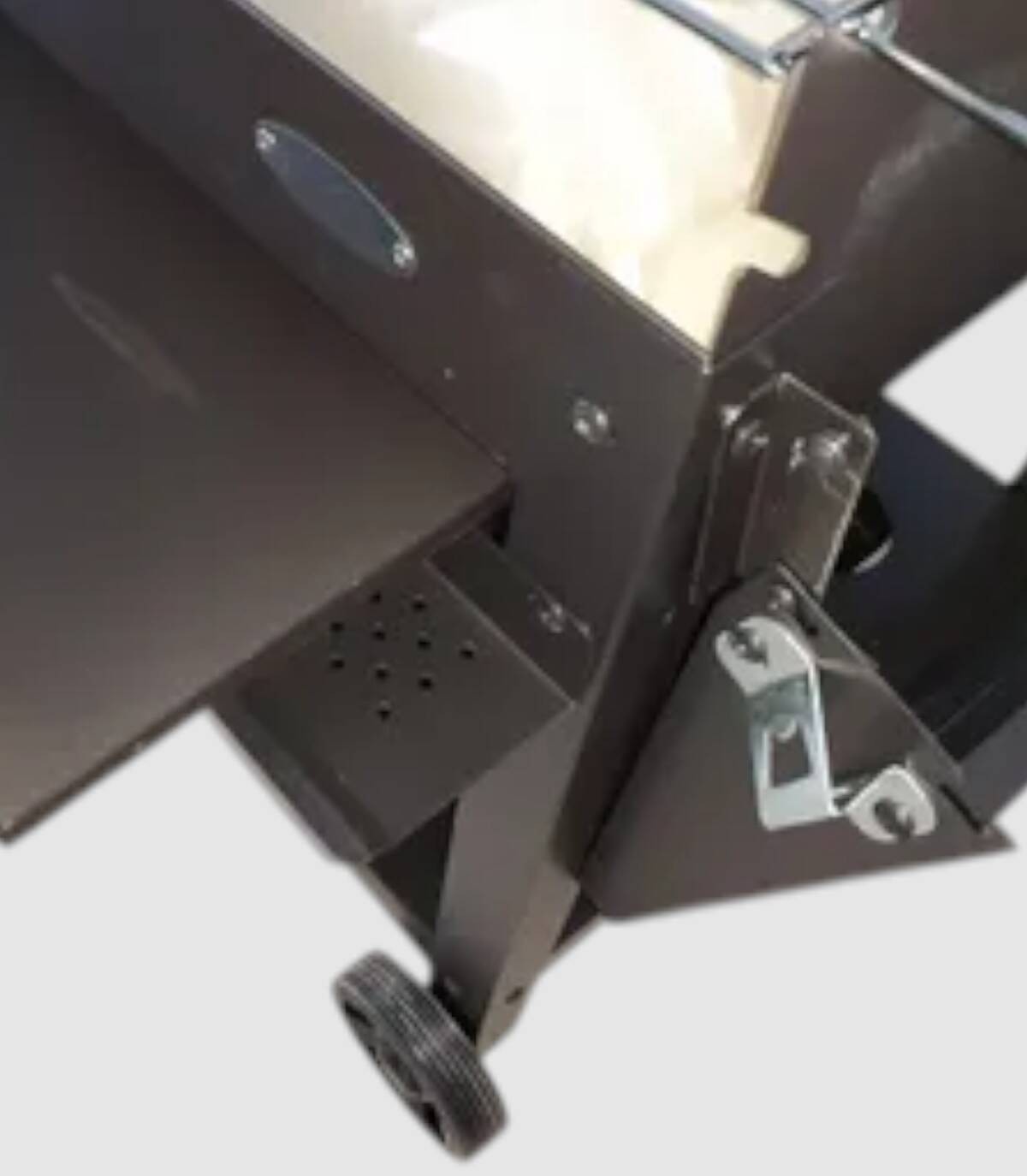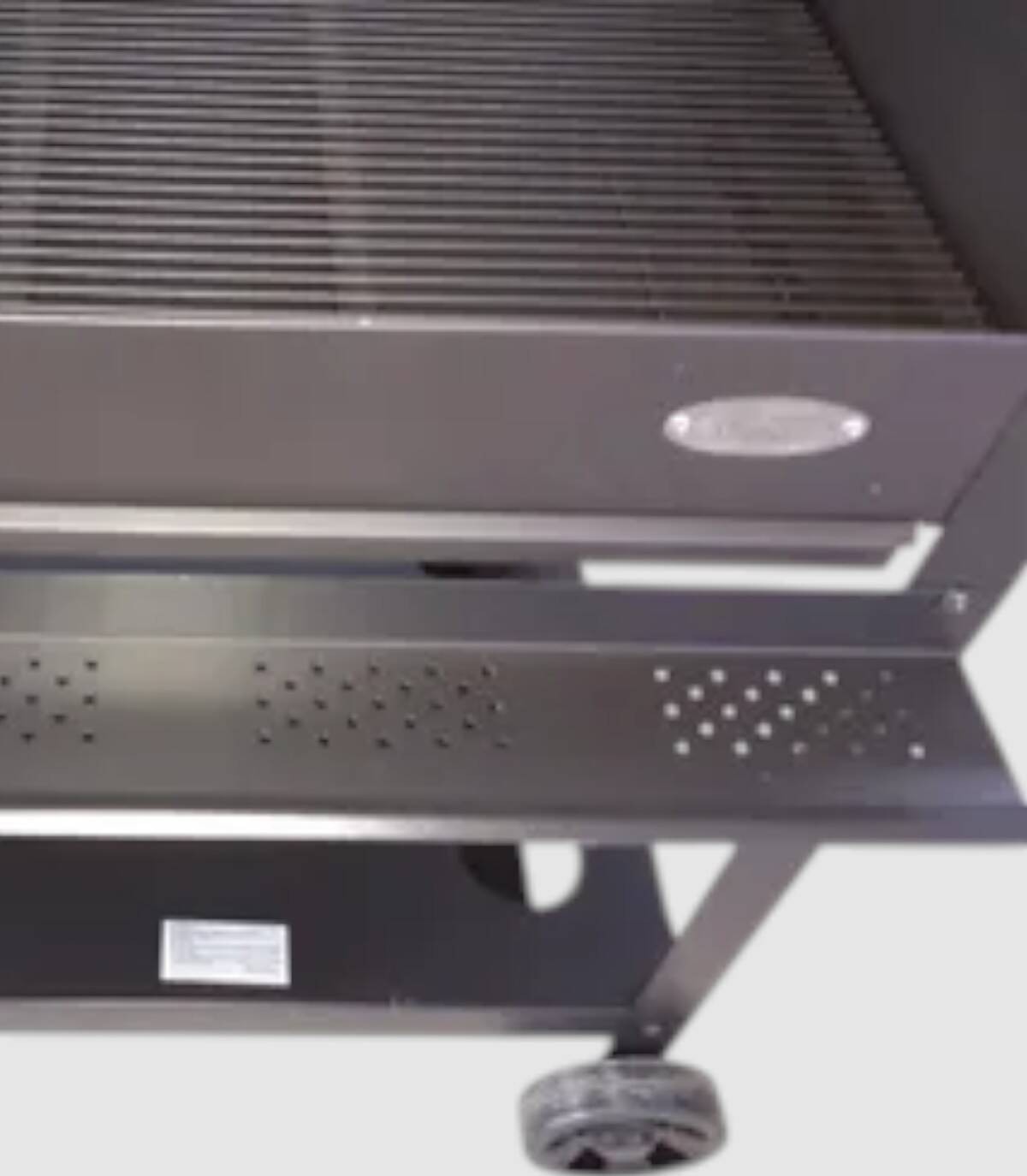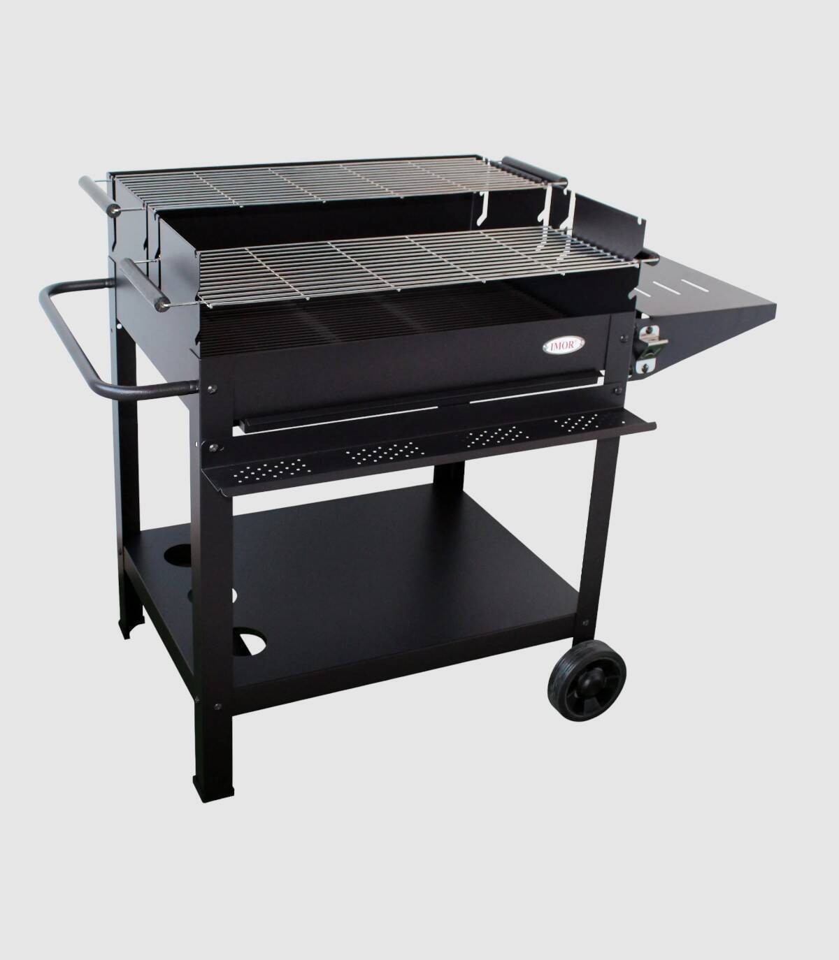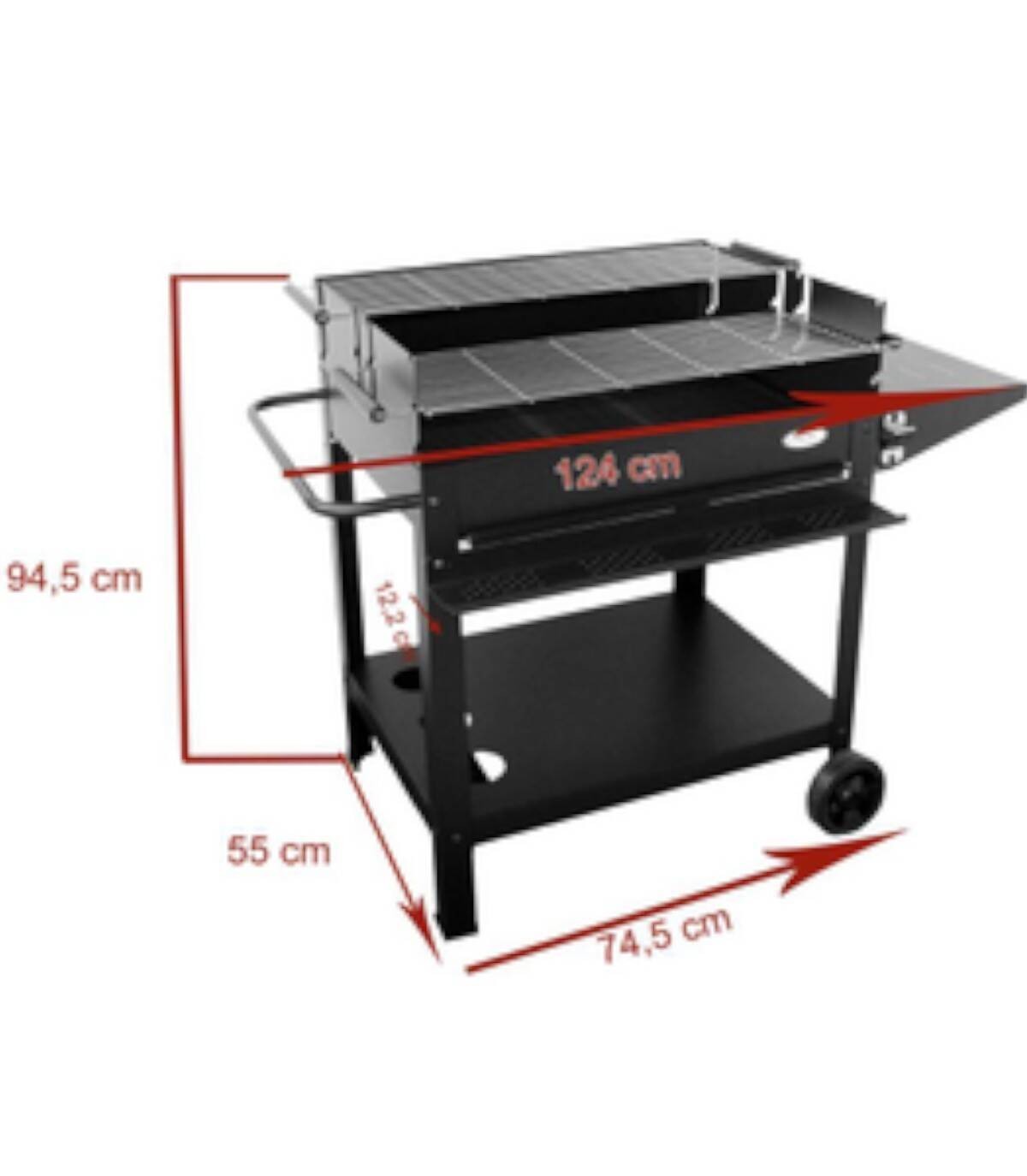 La barbacoa Madrid V20 con ruedas se compone de quemador de carbón o leña con ladrillos refractarios, parrilla regulable en tres alturas de acero inoxidable con dos bandejas y triador.