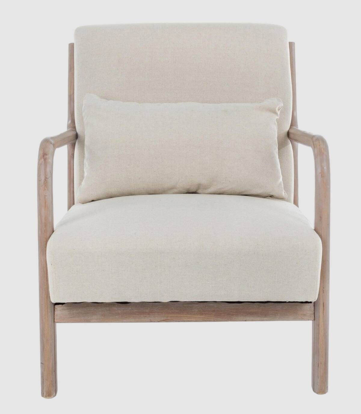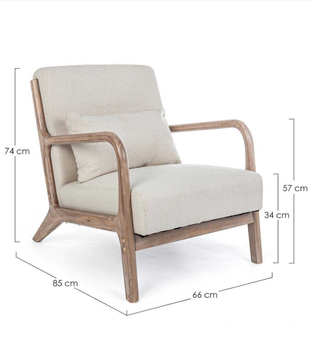 Ancilla fauteuil met kussen: Elegante fauteuil met rubberhouten frame. Niet-afneembare stoffen stoelbekleding (40% katoen, 30% polyester en 30% linnen).