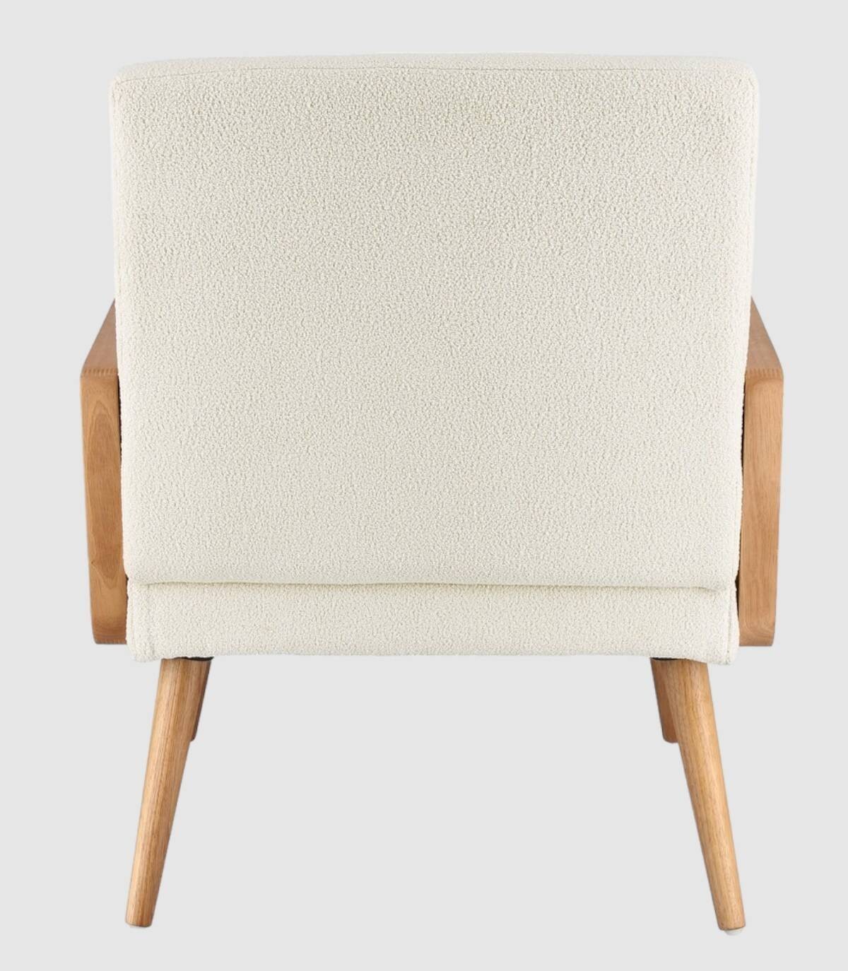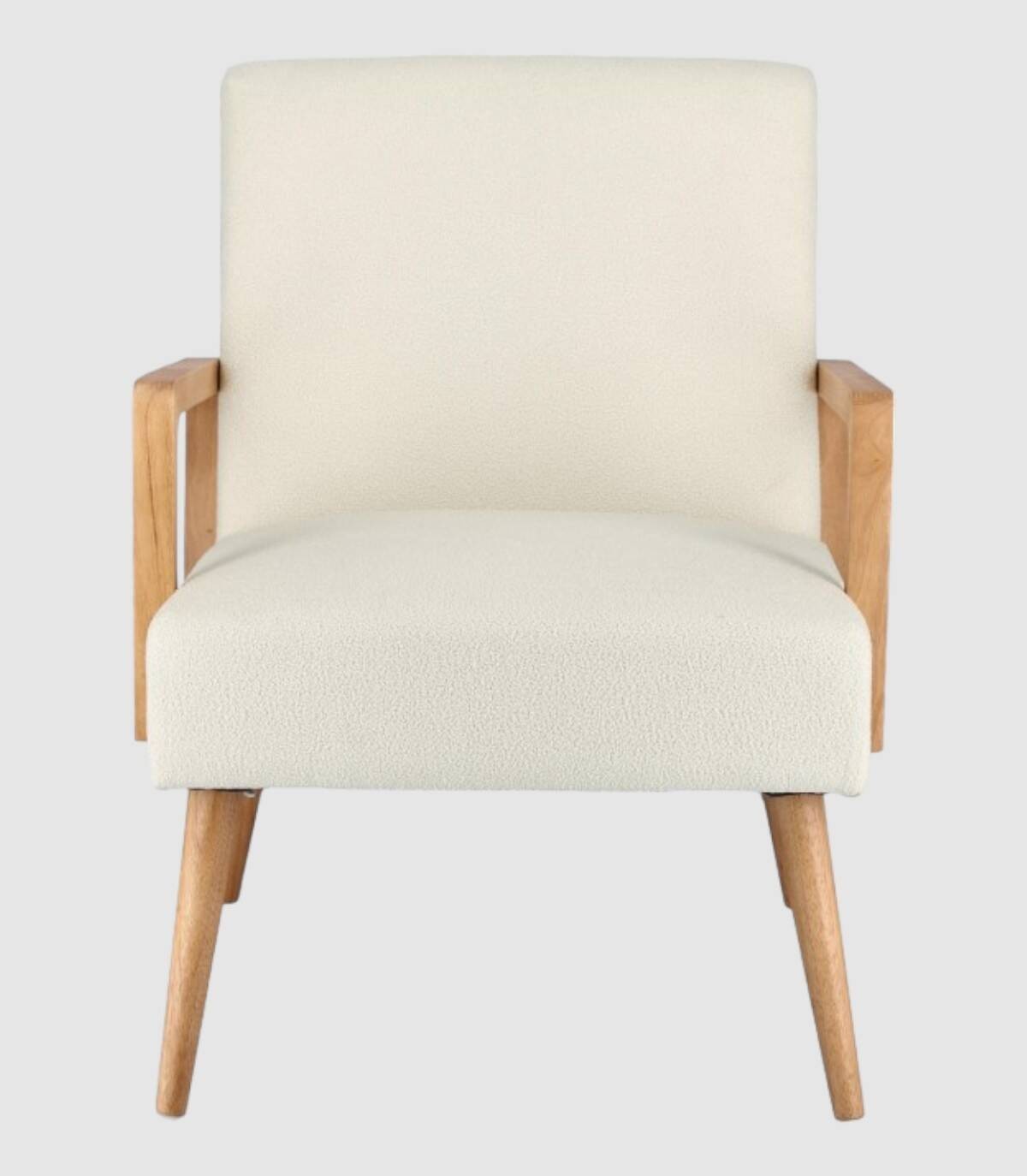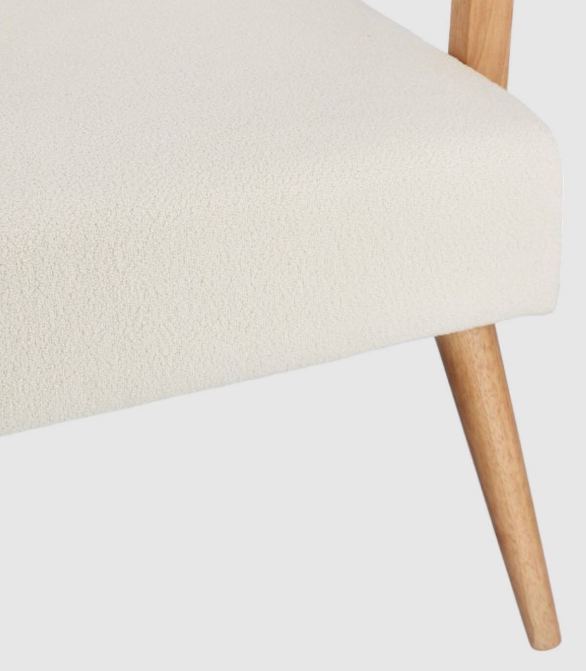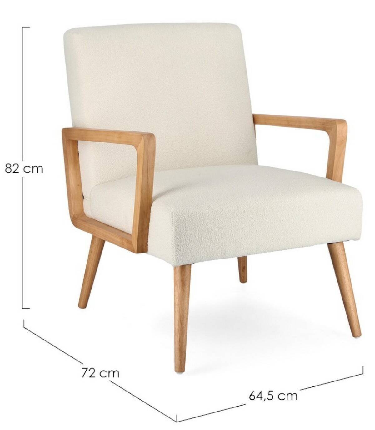 De beige Veriana fauteuil met houten structuur gemaakt van grenen en multiplex, rubberhouten poten en armleuningen, polyester coating, vuldichtheid van polyurethaanschuim 24 kg/m3. Niet afneembare hoes. De poten vereisen montage.