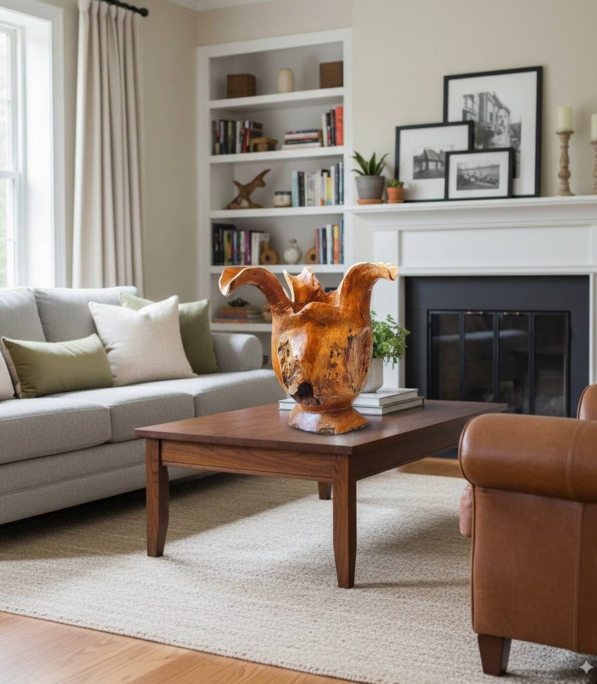 Uniek stuk handgesneden hout, geeft een rustiek tintje aan uw huis. Omdat het een handgemaakt product is, zijn de vormen en afmetingen van het hout indicatief, elk product is anders en uniek.