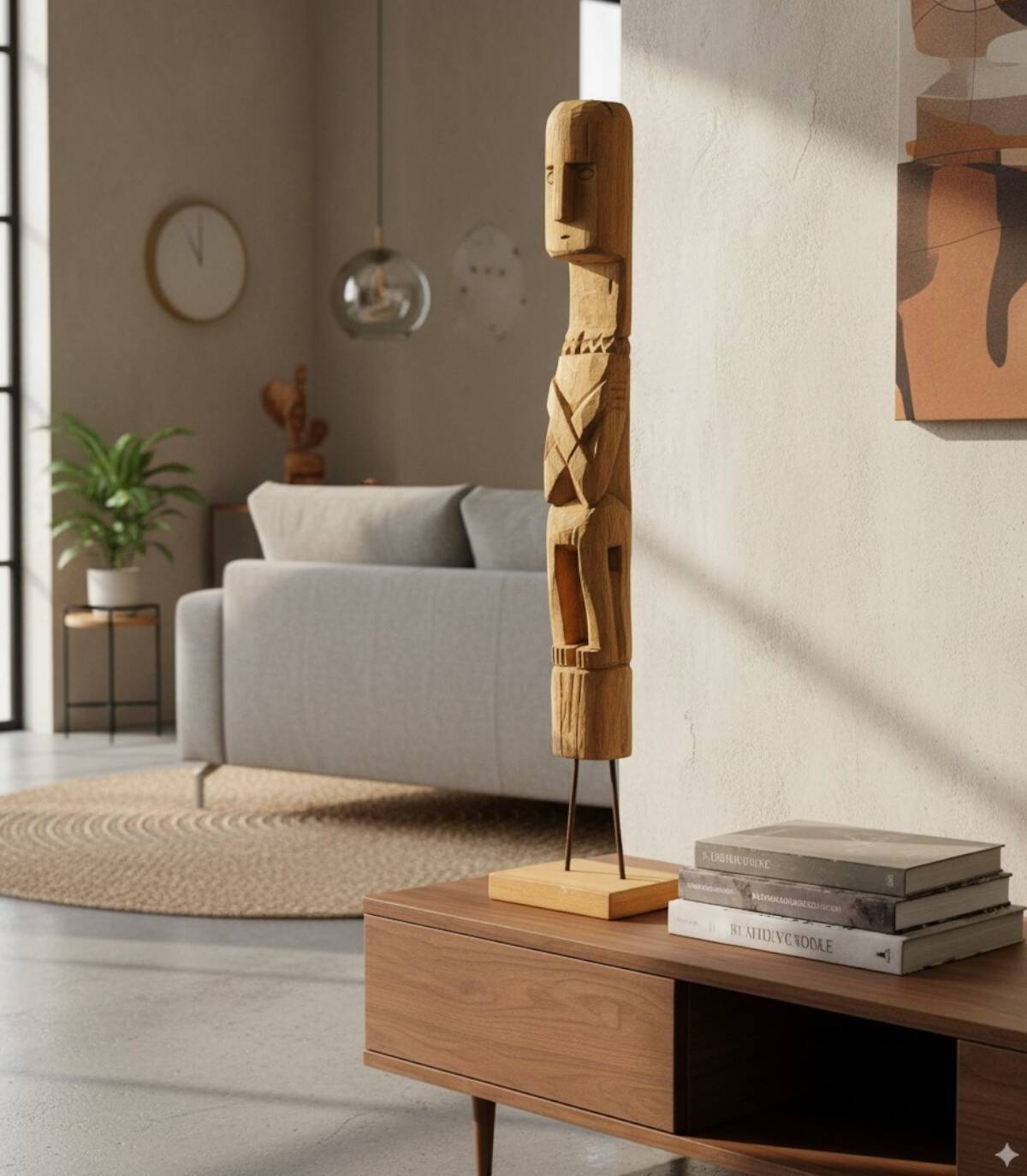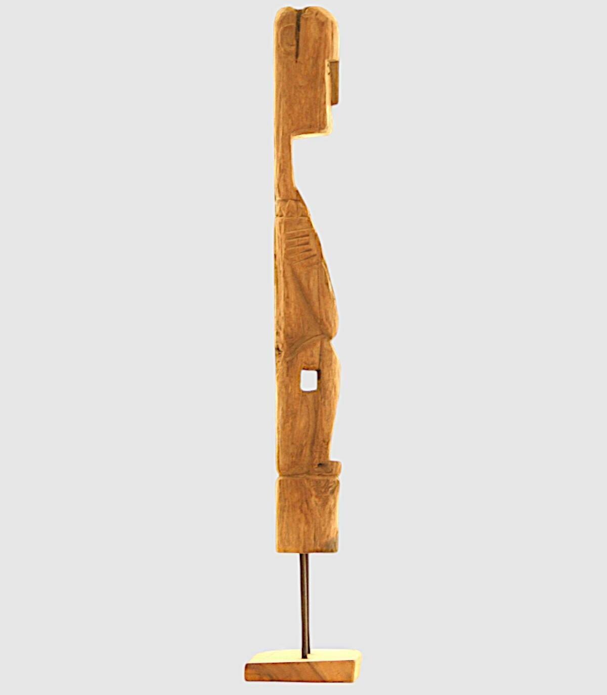 Dit handgemaakte houten beeld is een uniek en aantrekkelijk stuk dat een vleugje elegantie aan elke ruimte zal toevoegen. Dit beeldhouwwerk is met de hand gesneden en heeft ingewikkelde details en geeft de essentie van traditioneel vakmanschap weer. Het abstracte maar boeiende ontwerp nodigt uit tot contemplatie en reflectie. Met zijn imposante hoogte wordt dit stuk een brandpunt dat de aandacht trekt. Of het nu in een gezellig hoekje of in een grotere ruimte is, dit houten beeld geeft karakter en een mystieke sfeer aan uw decoratie. Geniet van de tijdloze schoonheid van dit handgemaakte kunstwerk. Omdat we handgemaakt zijn, begrijpen we variaties in toon, grootte en vorm of bepaalde onvolkomenheden (scheuren, knopen, markeringen) als een toegevoegde waarde die het tot een uniek stuk maakt.